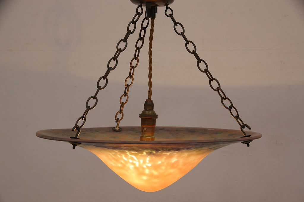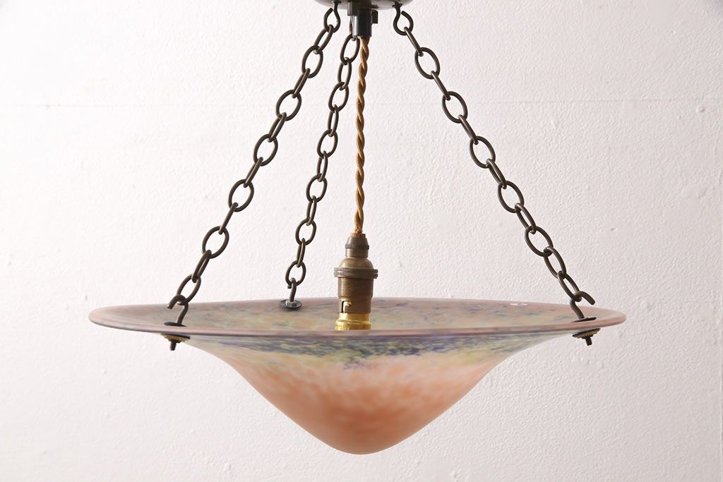フランスビンテージ ル・ヴェール・フランセ(Le verre francais) 他ではなかなか見られない独特な存在感を放つ天井照明(吊り下げ照明、ペンダントライト、ヴィンテージ)(R-053425)