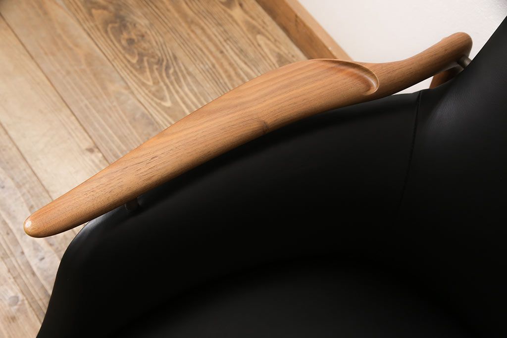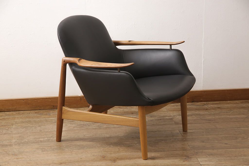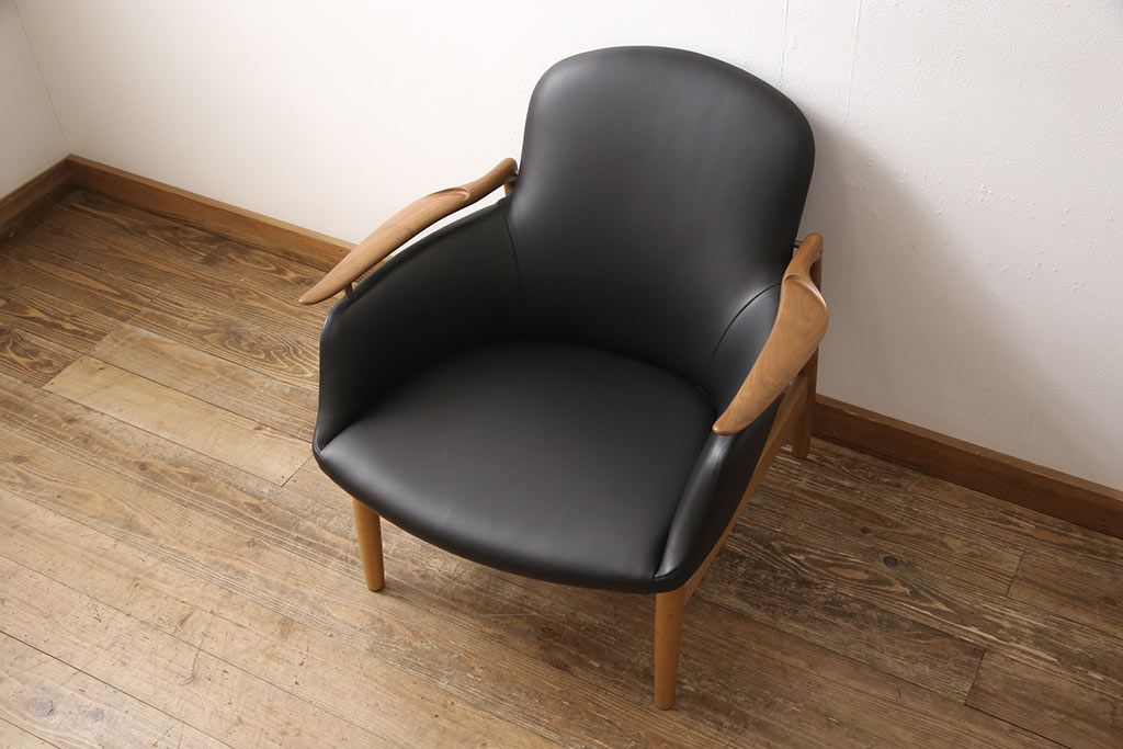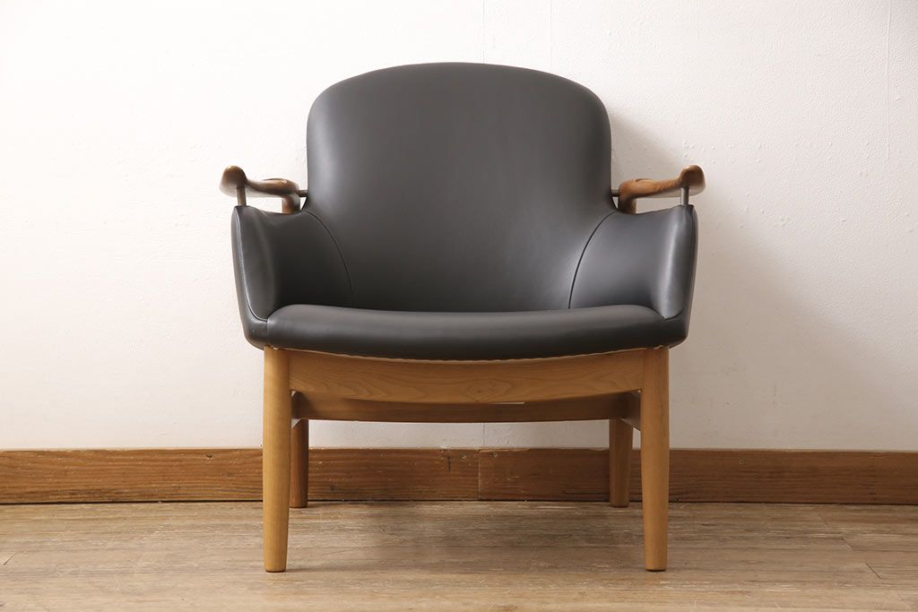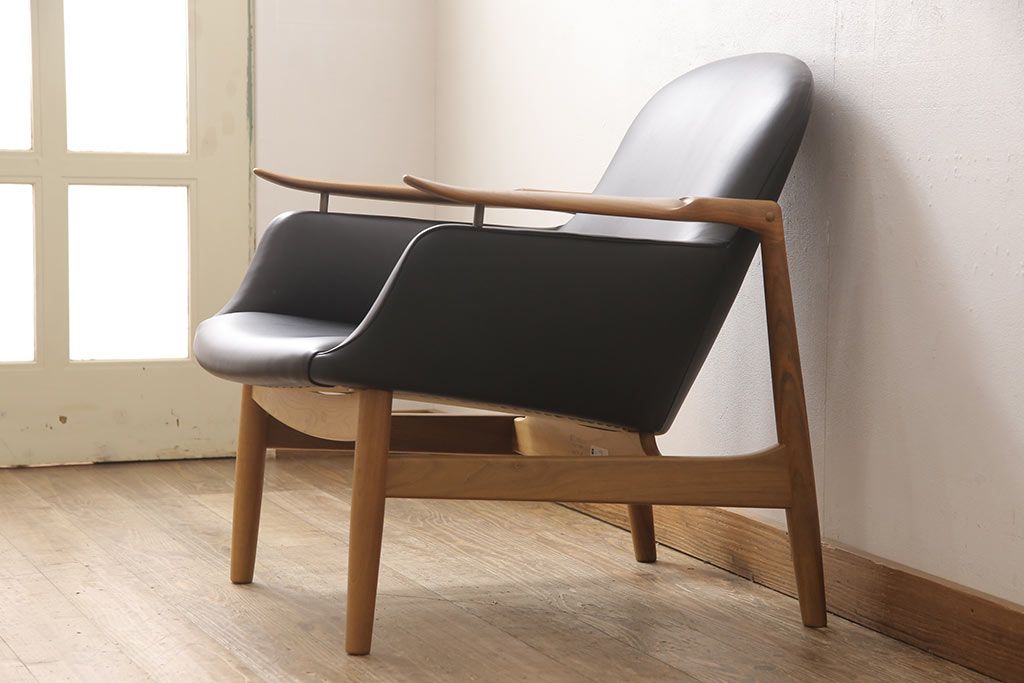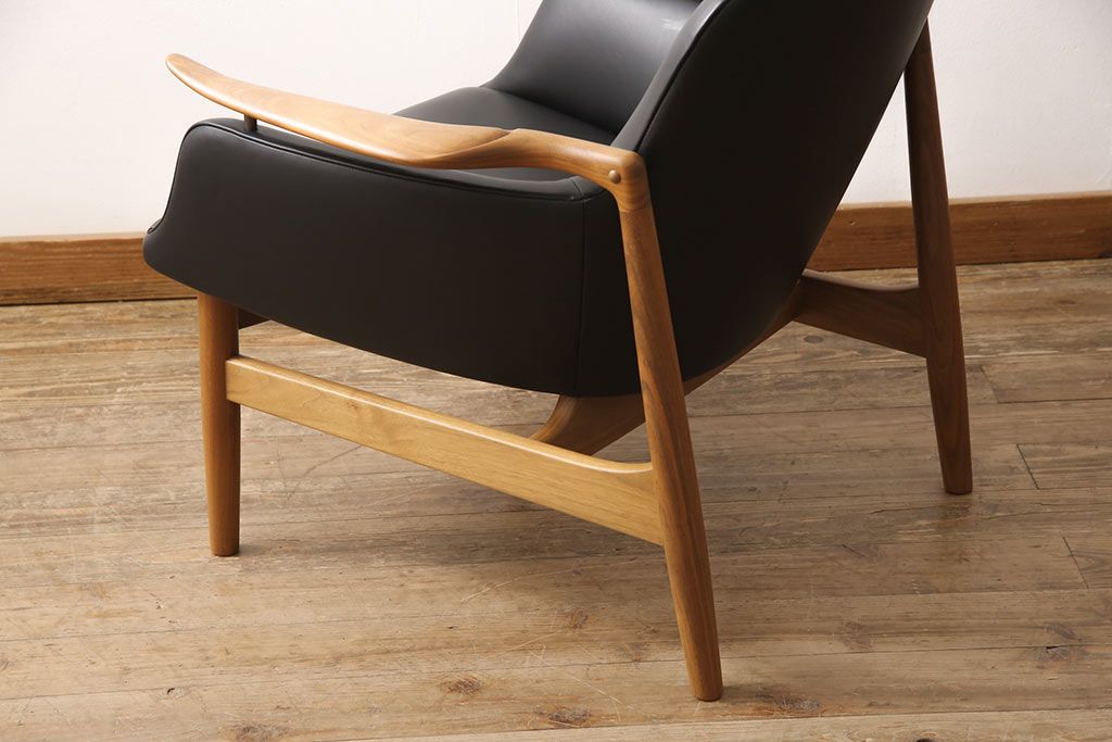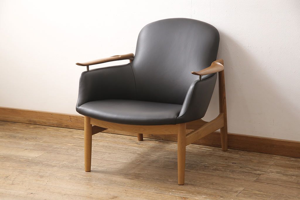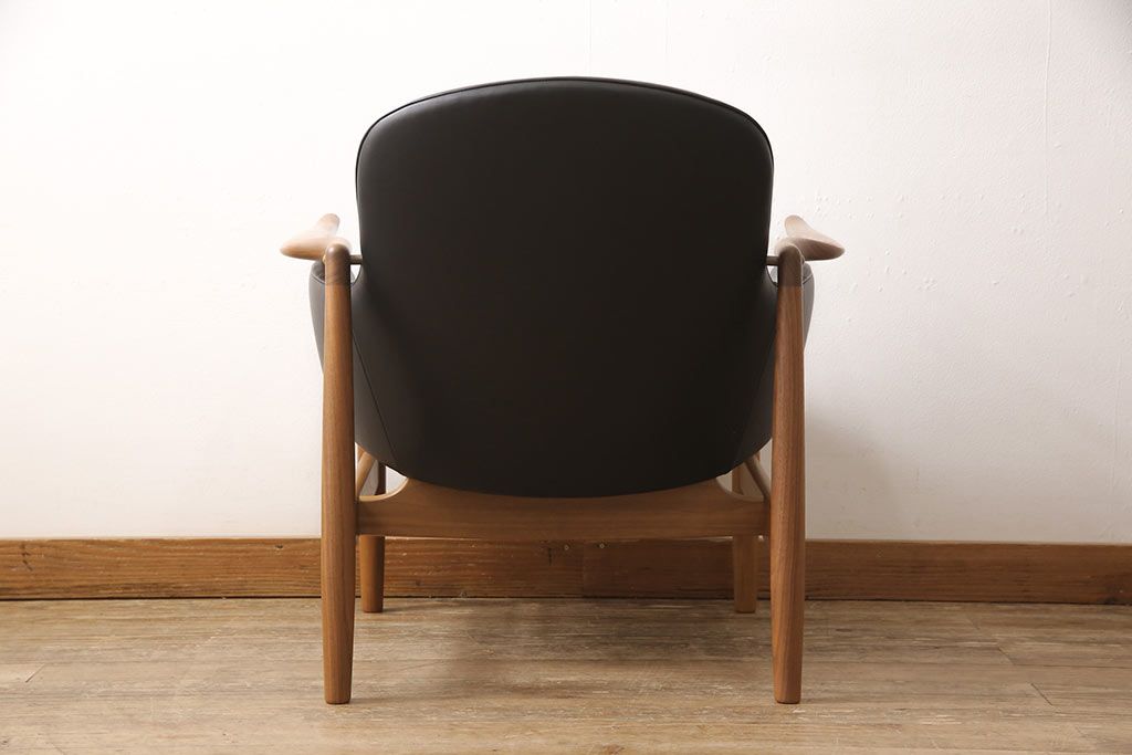 中古 超美品 キタニ(KITANI) ウォールナット フィン・ユールデザイン FJ-01 美しさを感じさせる本革イージーチェア(レザー、アームチェア、椅子)(R-053448)