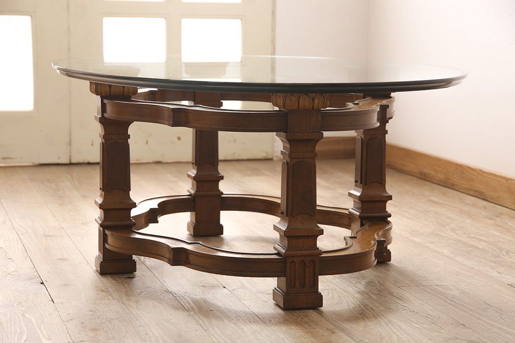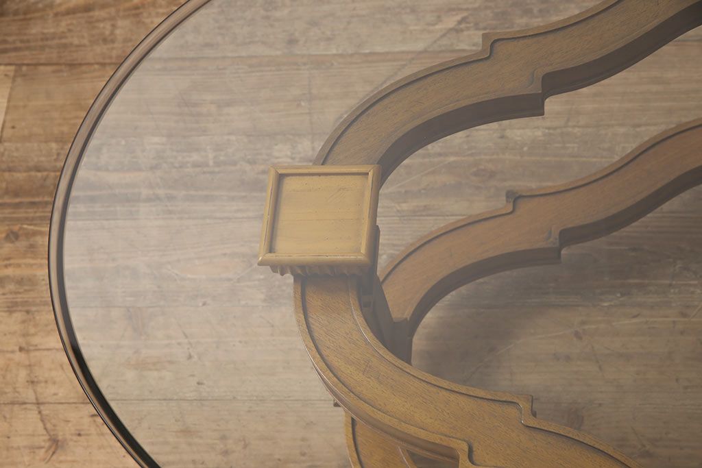 テーブル> 丸テーブル > 中古 美品 DREXEL HERITAGE(ドレクセルヘリテイジ) FRANCESCA(フランチェスカ)シリーズ エレガントな雰囲気を醸し出すシルエットが美しいカクテルテーブル(センターテーブル、ローテーブル、リビングテーブル、ガラステーブル)(定価約48万円)(R-053421)