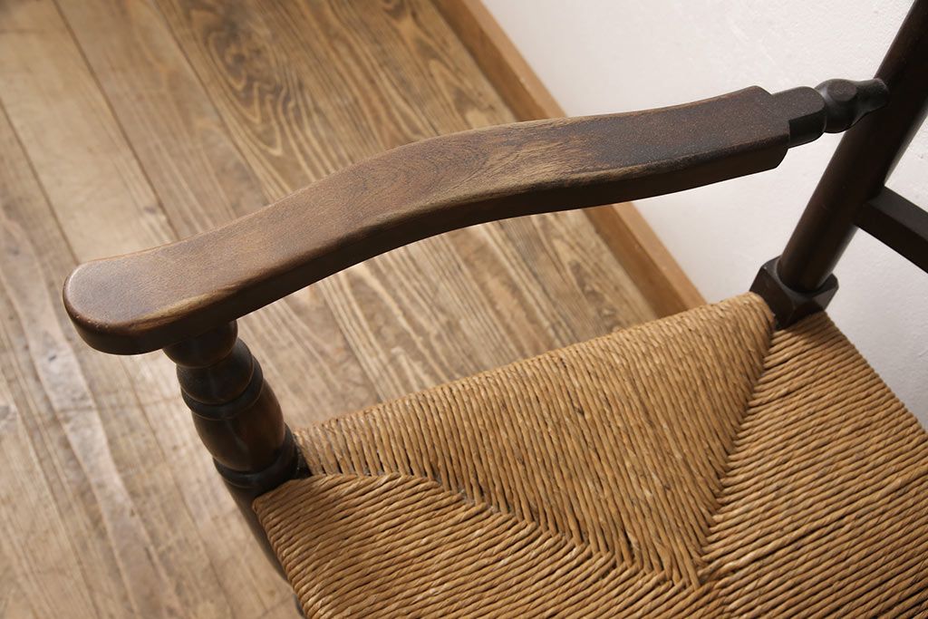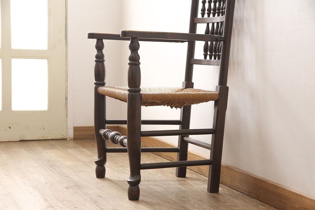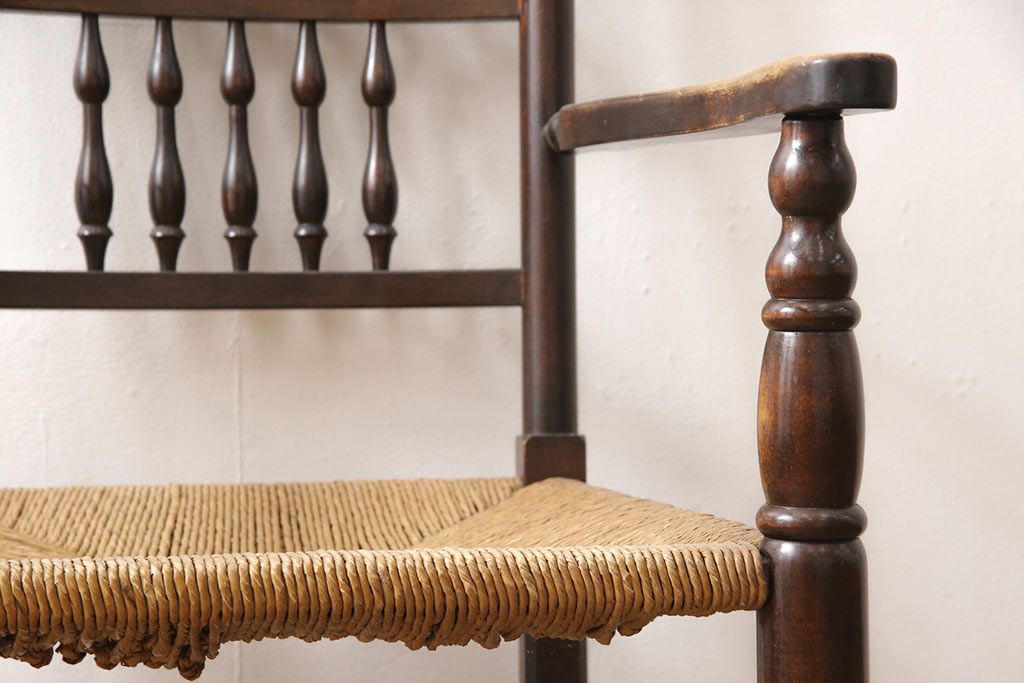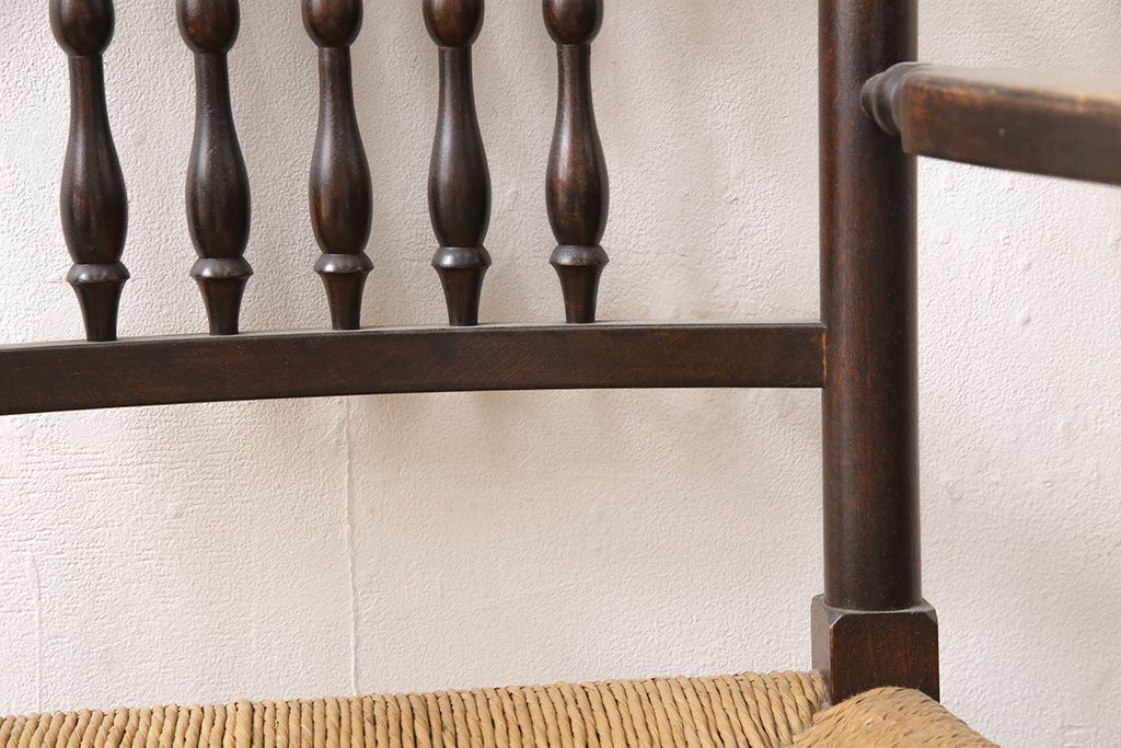 椅子・ベンチ> ダイニングチェア > 中古 松本民芸家具 ♯21型 ラッシ座面がお洒落なスピンドルアームチェア(椅子、イス、ダイニングチェア)(定価約22万円)(R-053444)