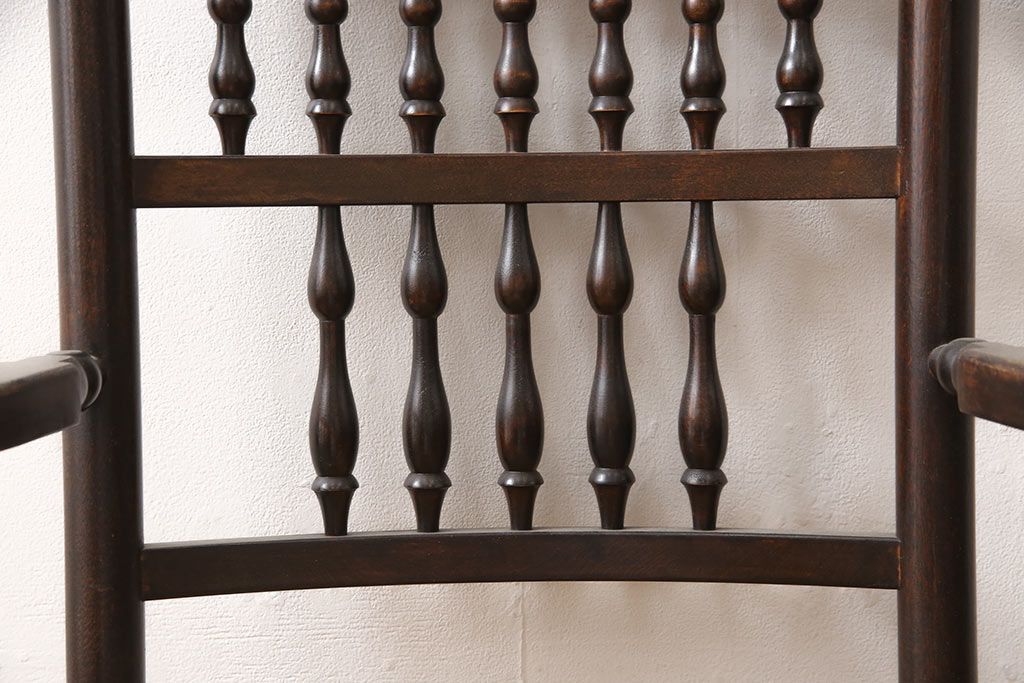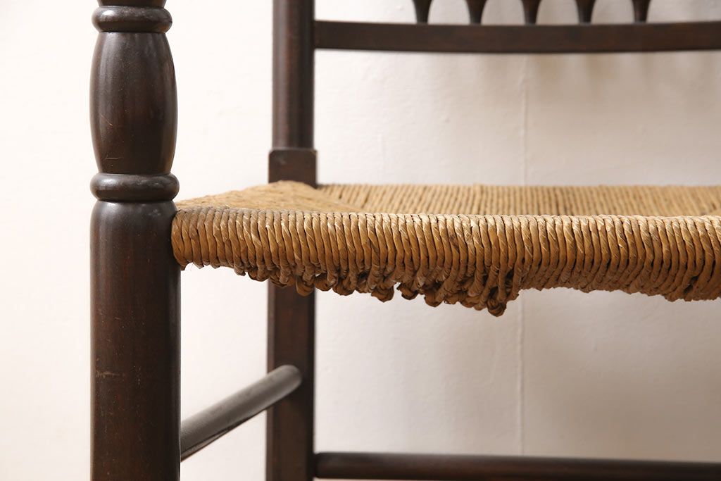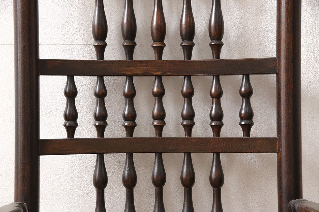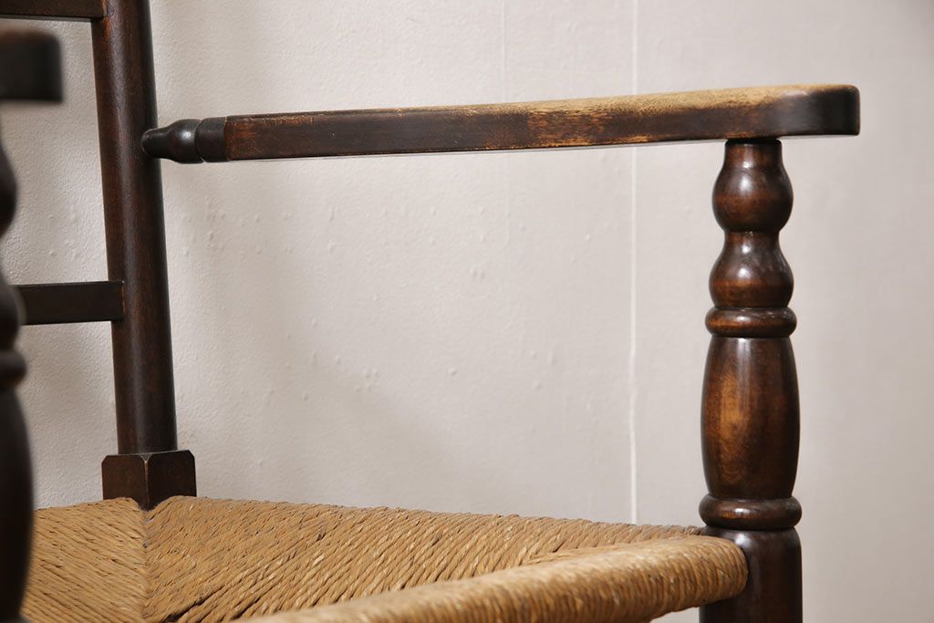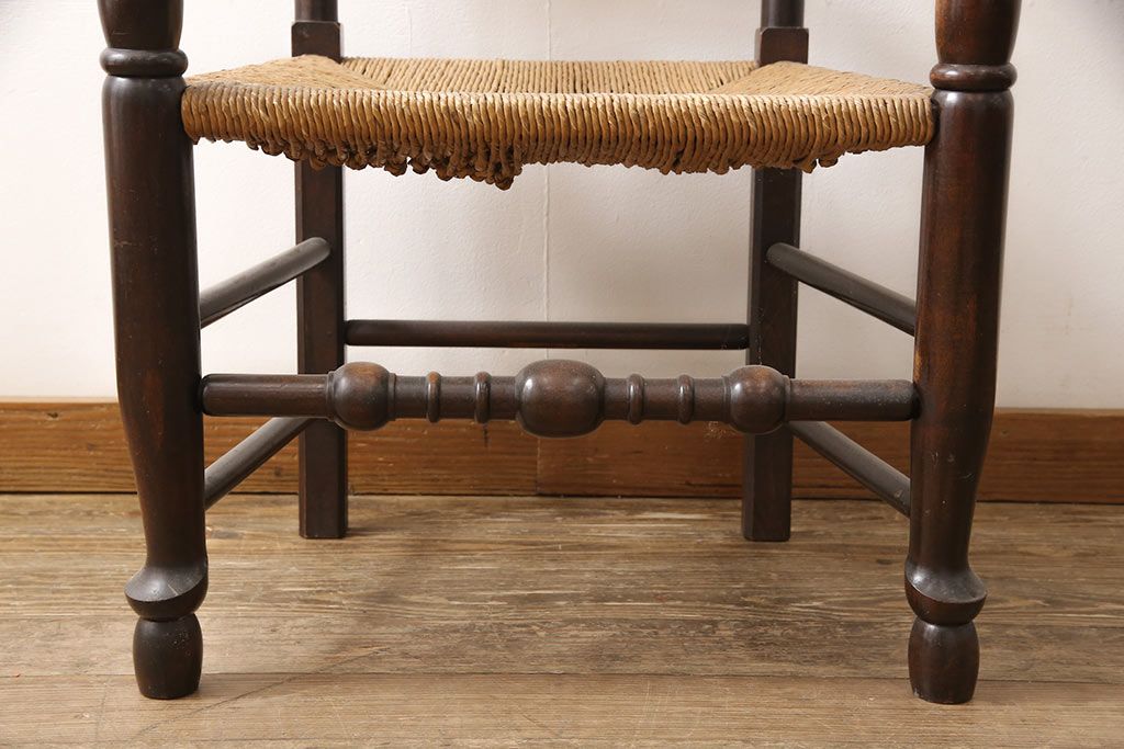 椅子・ベンチ> ダイニングチェア > 中古 松本民芸家具 ♯21型 ラッシ座面がお洒落なスピンドルアームチェア(椅子、イス、ダイニングチェア)(定価約22万円)(R-053444)