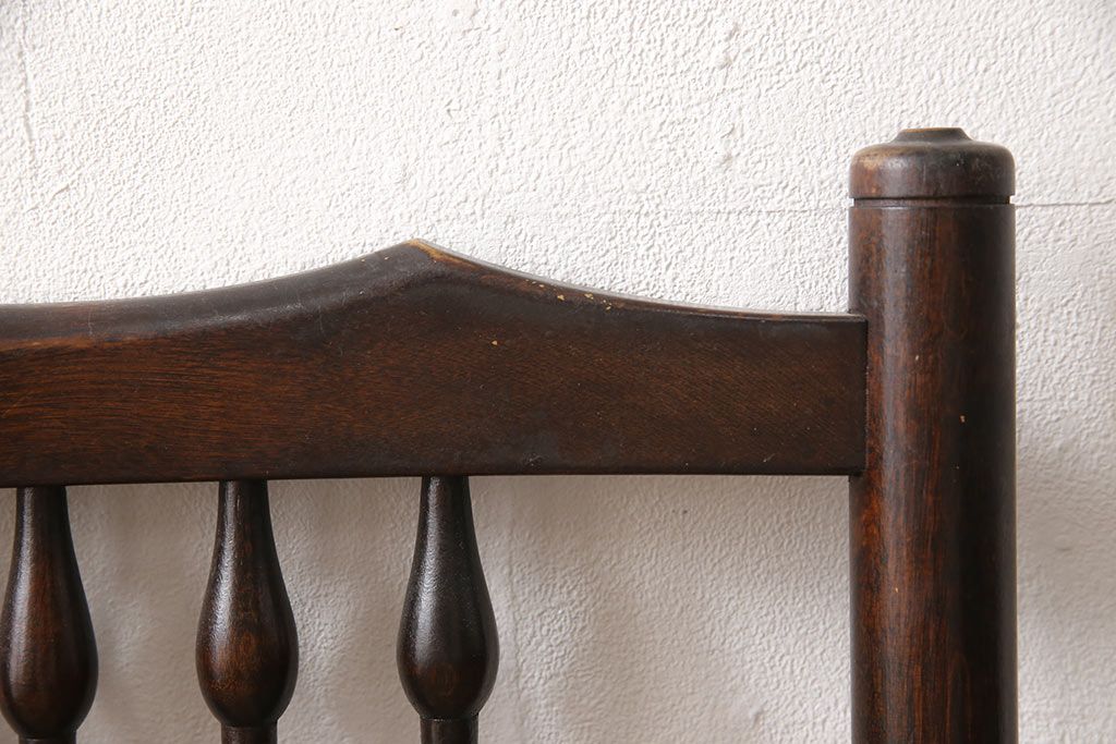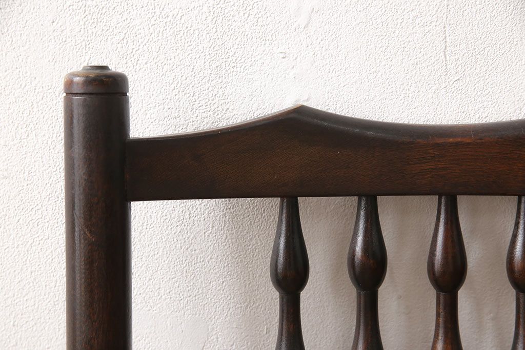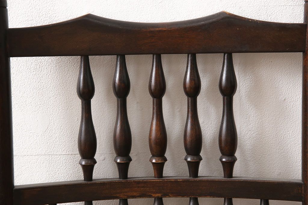 背もたれを飾るしずくのような挽き物加工が