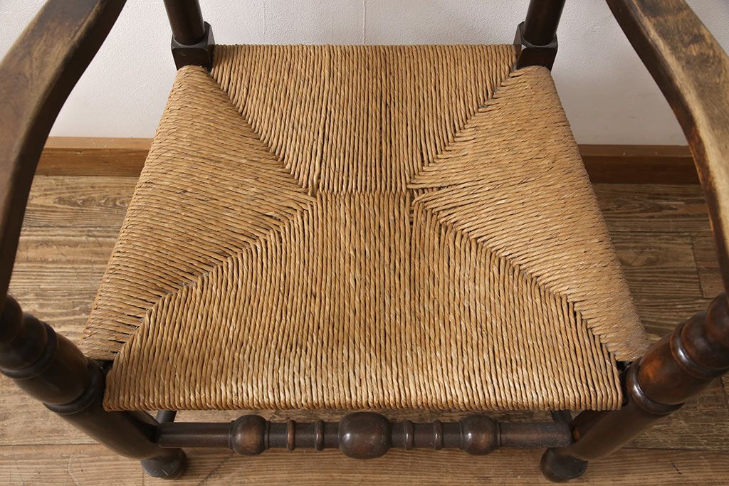 椅子・ベンチ> アームチェア > 中古 松本民芸家具 ♯21型 ラッシ座面がお洒落なスピンドルアームチェア(椅子、イス、ダイニングチェア)(定価約22万円)(R-053444)