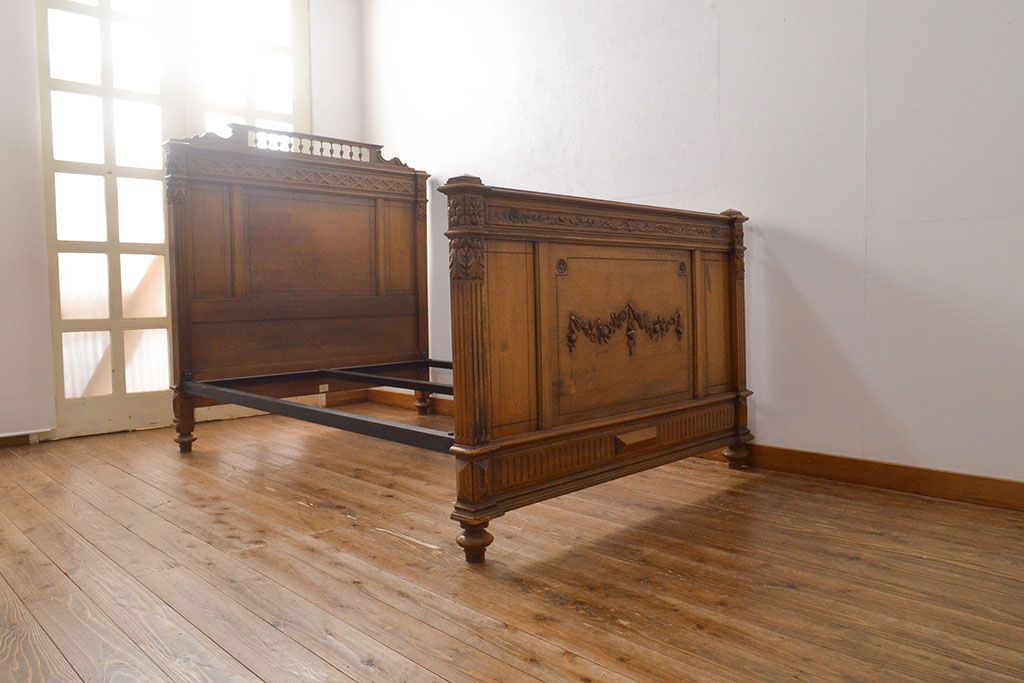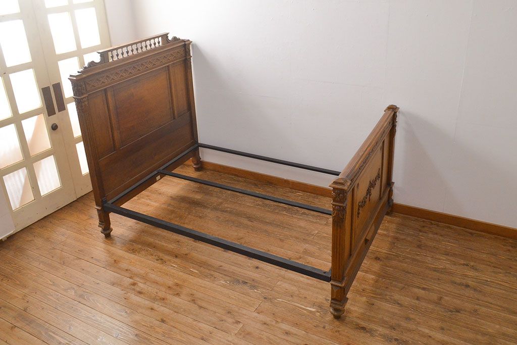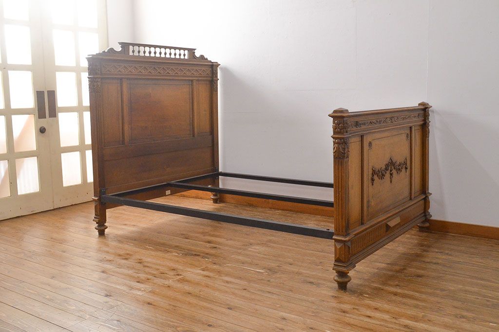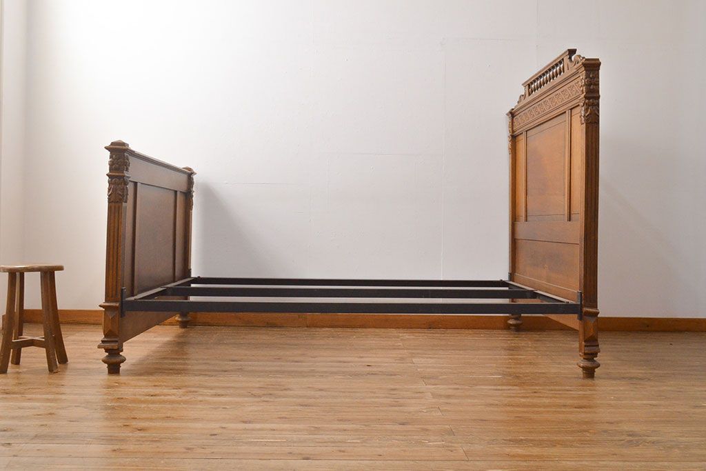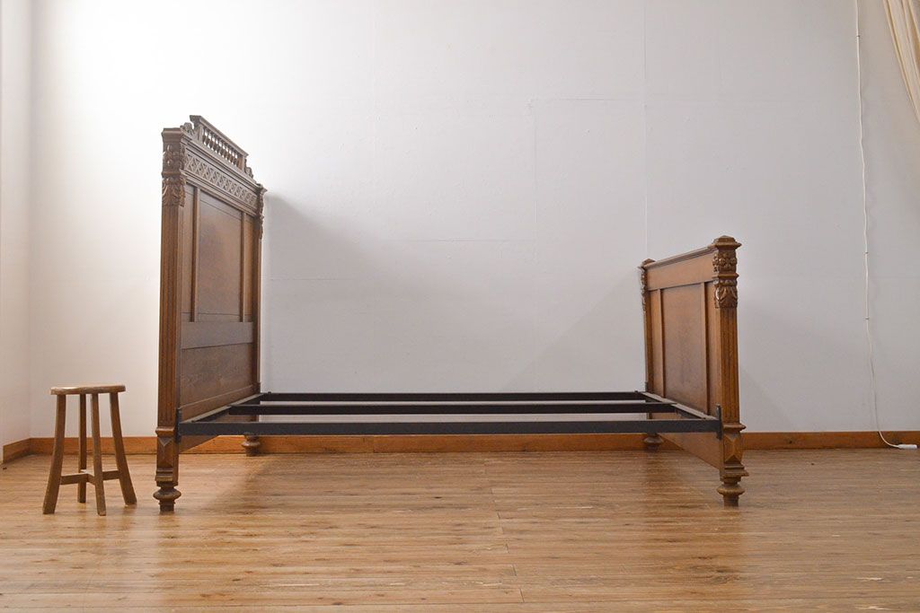 高級品 イギリスアンティーク マホガニー材 繊細な彫刻が美しい凝ったつくりの高級ベッドフレーム(ダブル)(R-052587)