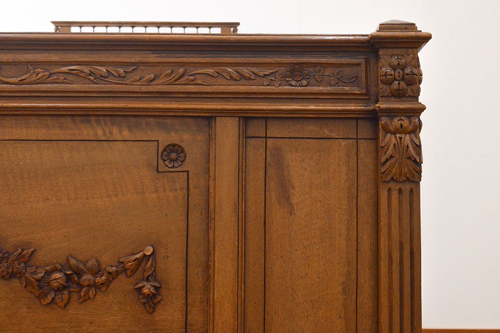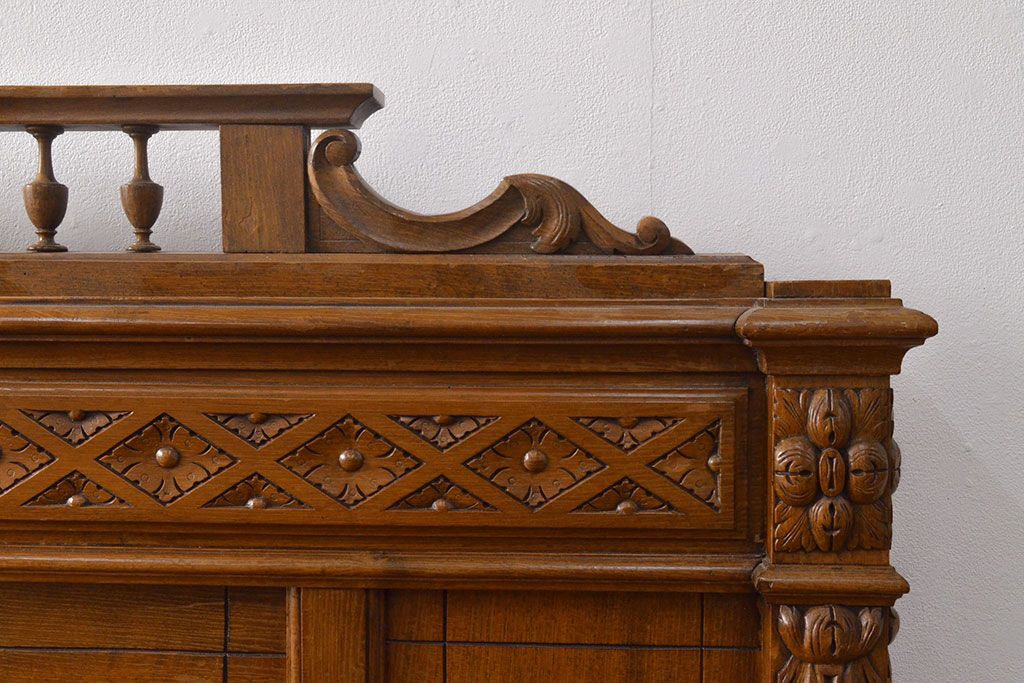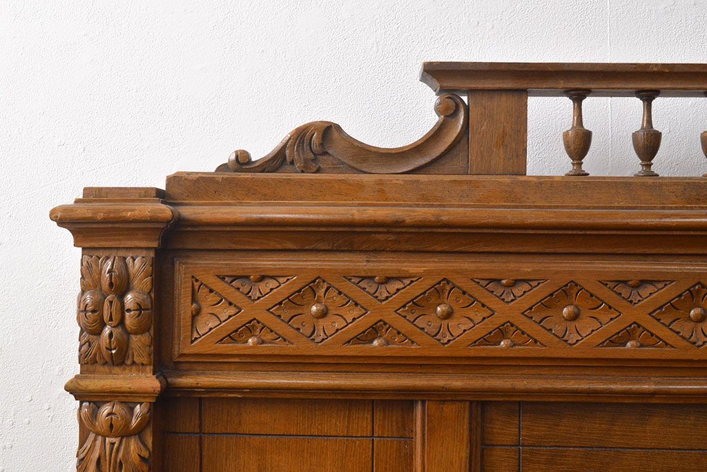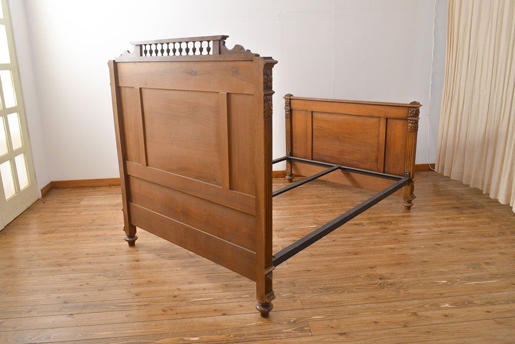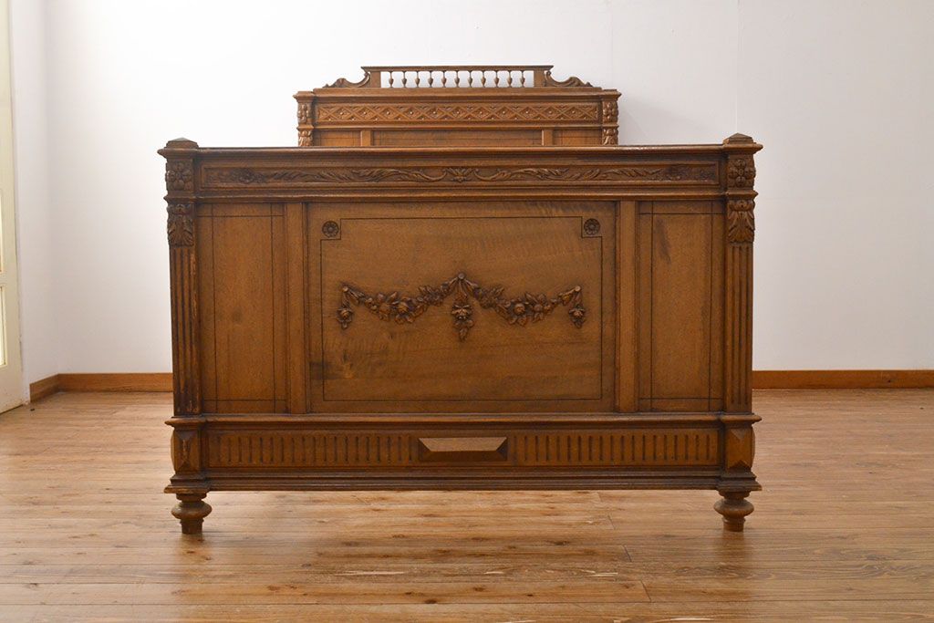 ベッド > 高級品 イギリスアンティーク マホガニー材 繊細な彫刻が美しい凝ったつくりの高級ベッドフレーム(ダブル)(R-052587)