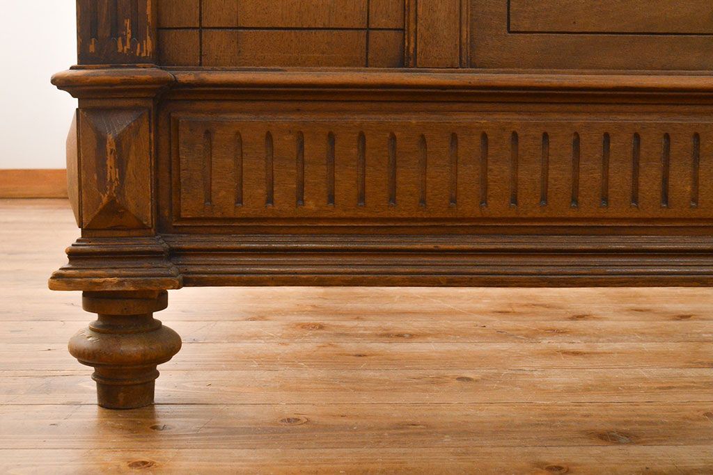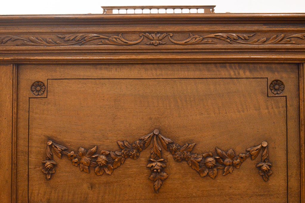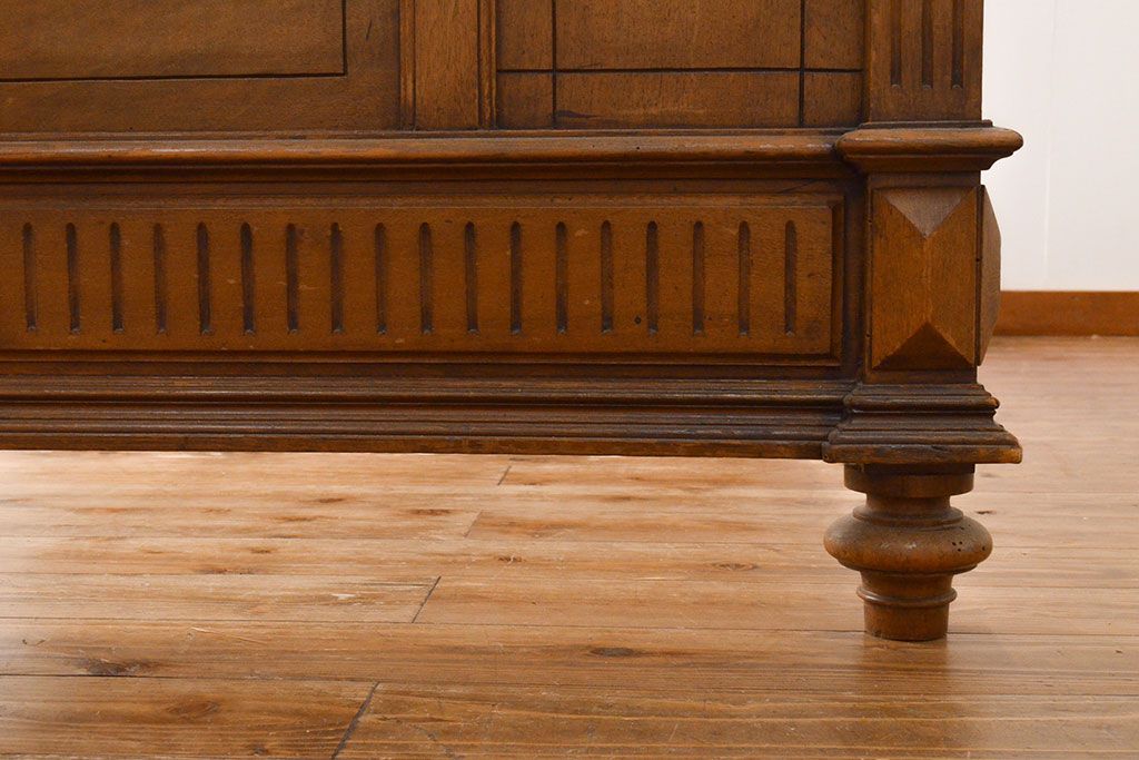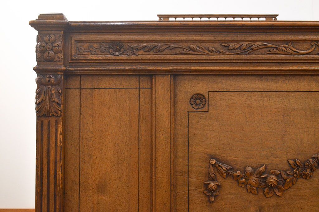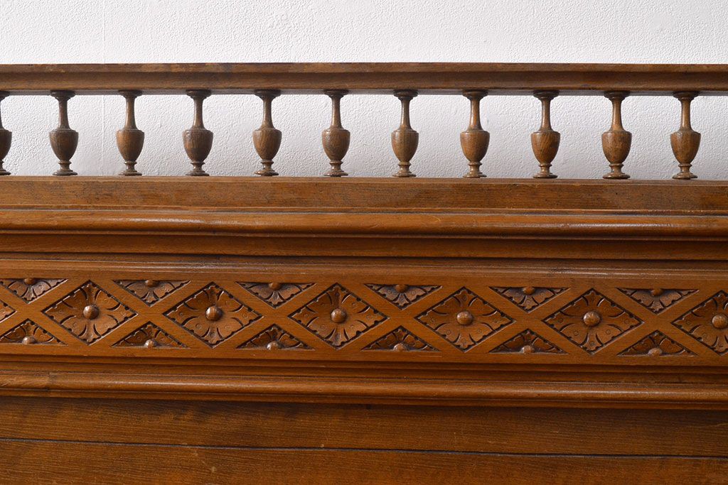 ベッド > 高級品 イギリスアンティーク マホガニー材 繊細な彫刻が美しい凝ったつくりの高級ベッドフレーム(ダブル)(R-052587)