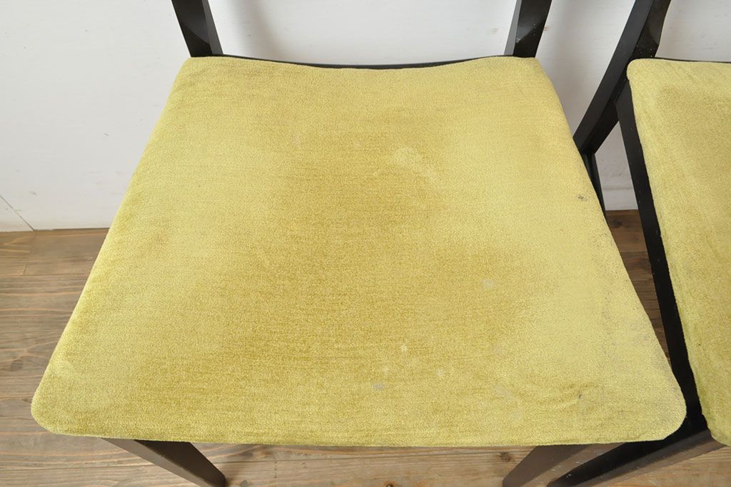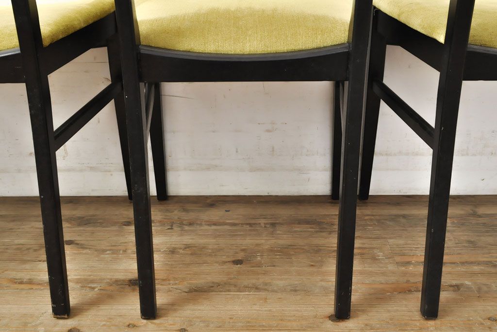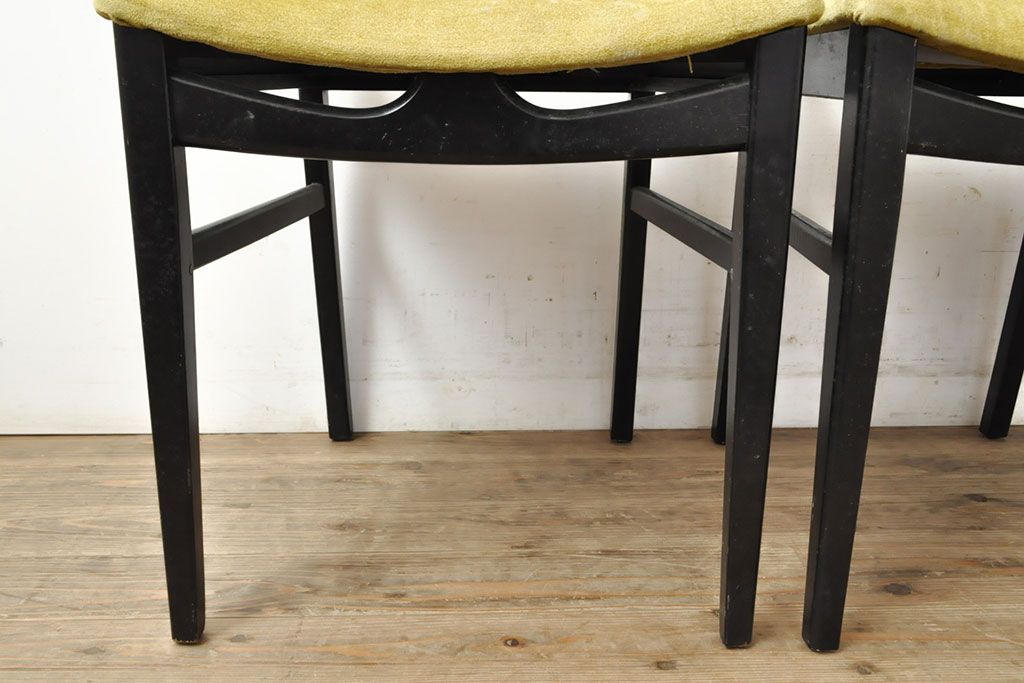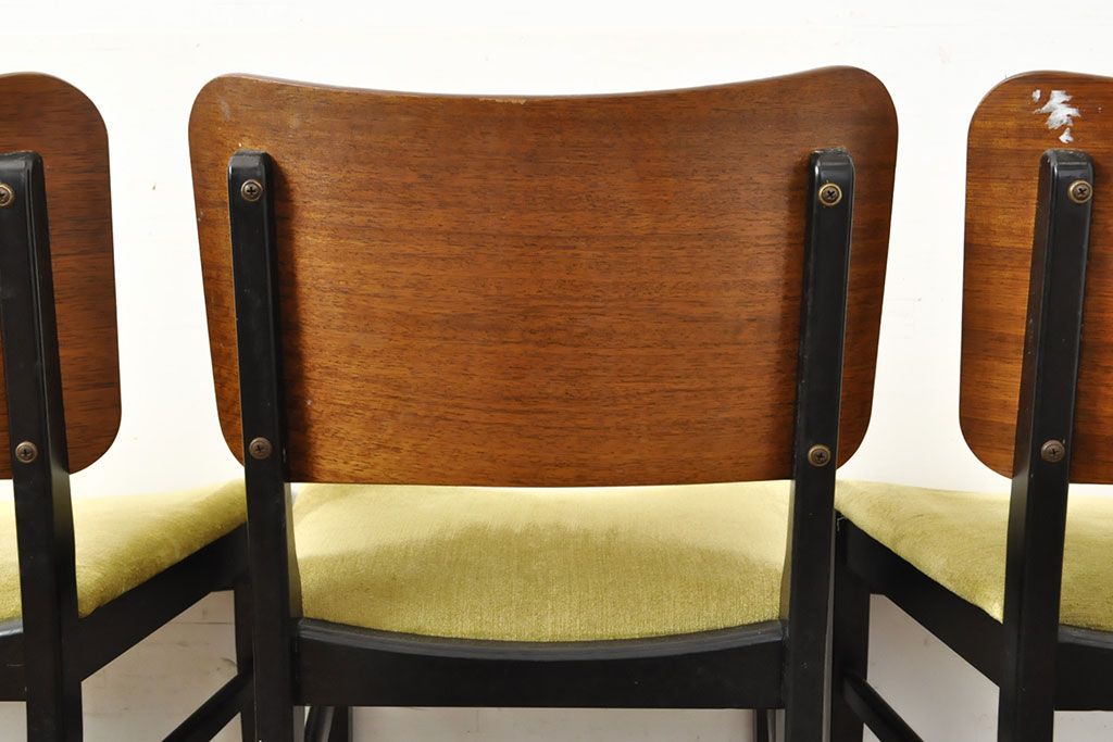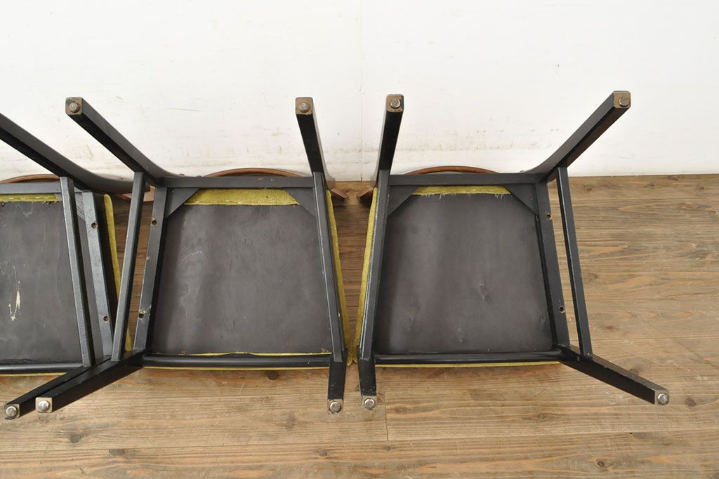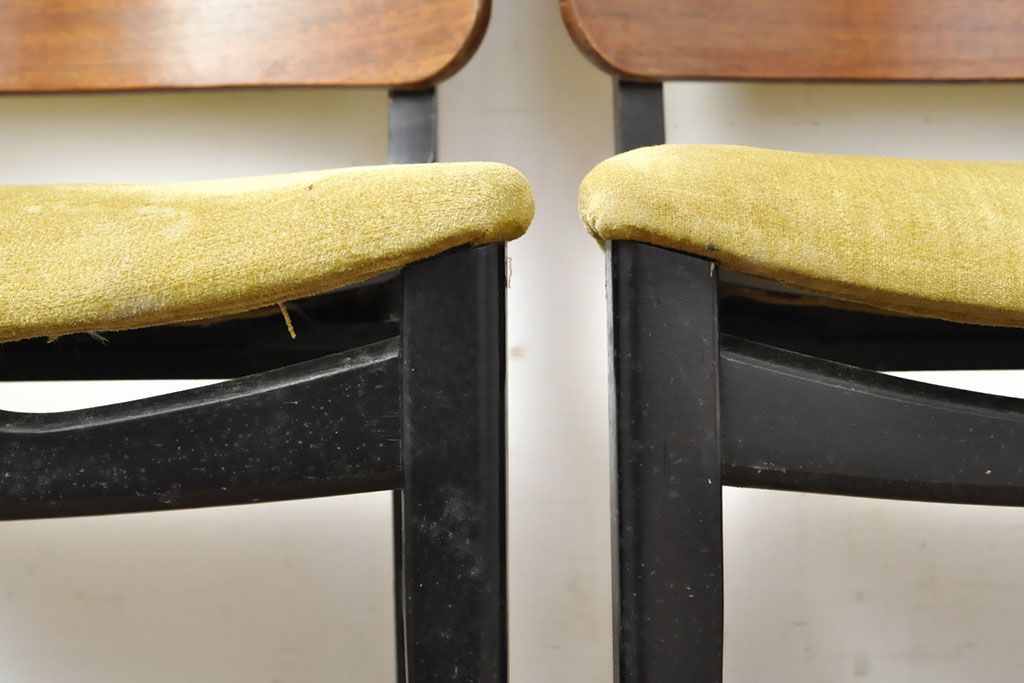 状態が気になる方には現状販売はおすすめできませんので、慎重なご検討をお願いいたします。北欧ビンテージ スタイリッシュなデザインが魅力的なダイニングチェア4脚セット(イス、椅子、ヴィンテージ)(R-052639)です。