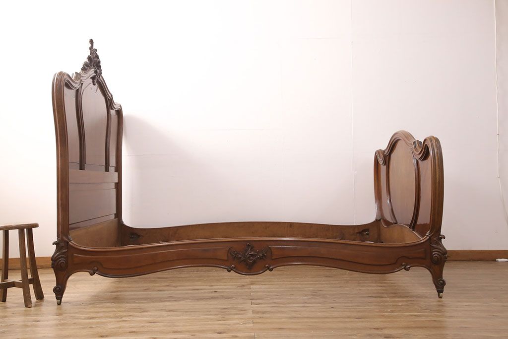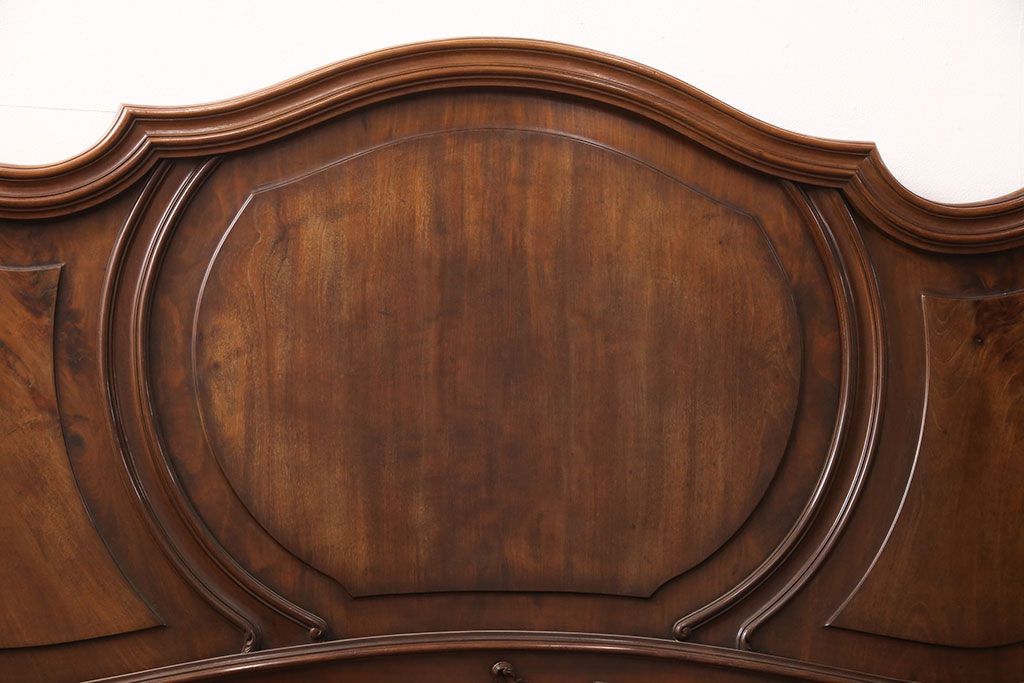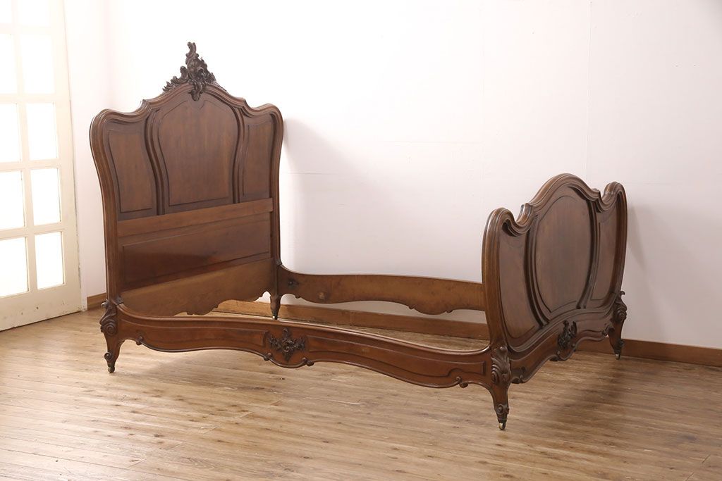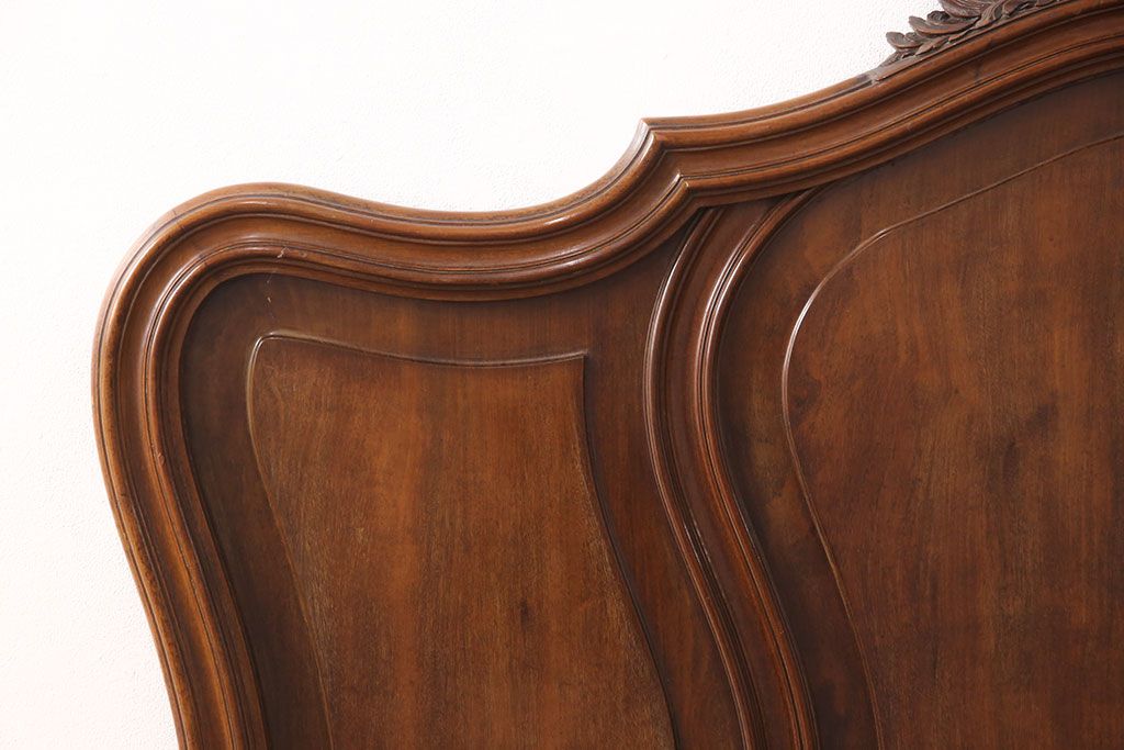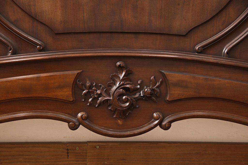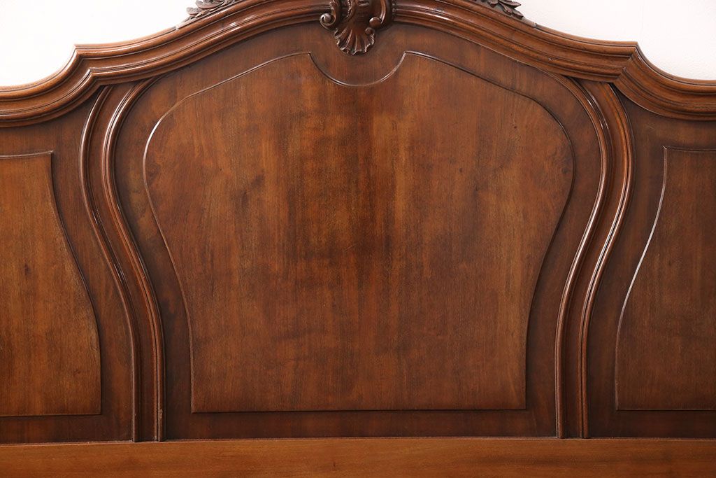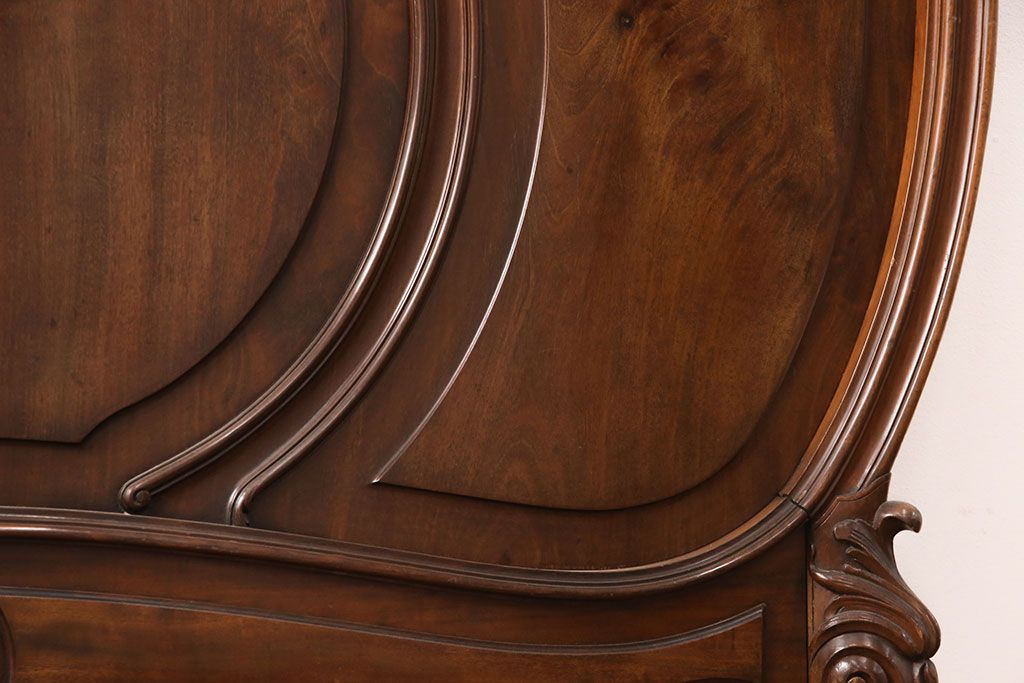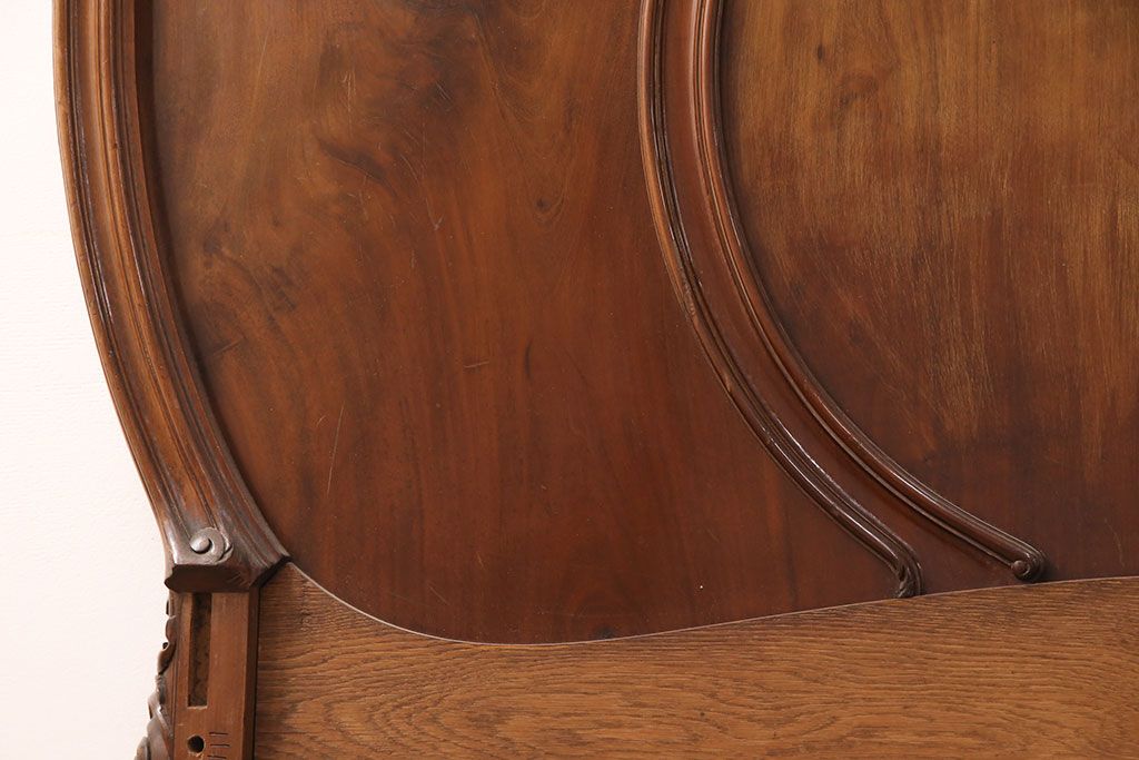 ラフジュ工房> ベッド > アンティーク家具 最高級 フランス マホガニー材 落ち着きのある色合いと素晴らしい彫刻がクラシカルな雰囲気を高めるベッドフレーム(セミダブル)(R-052735)