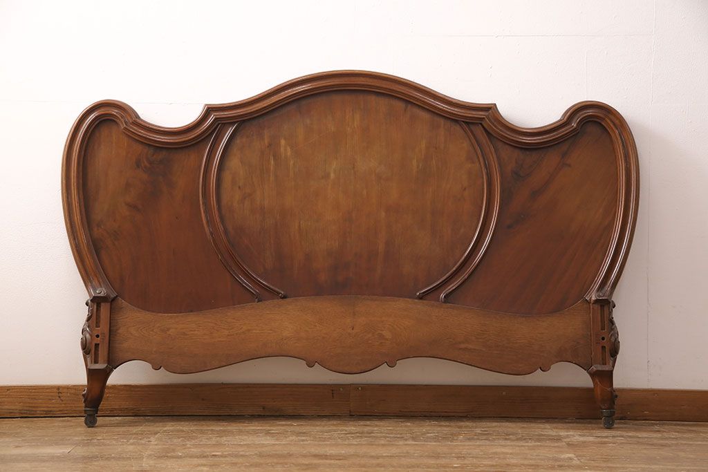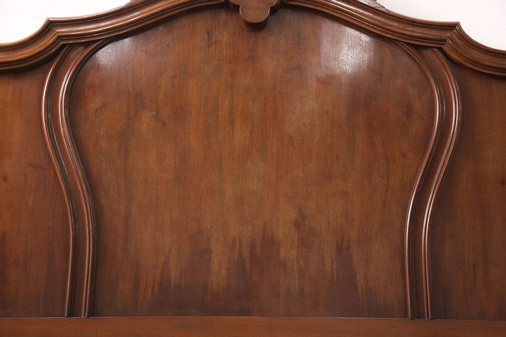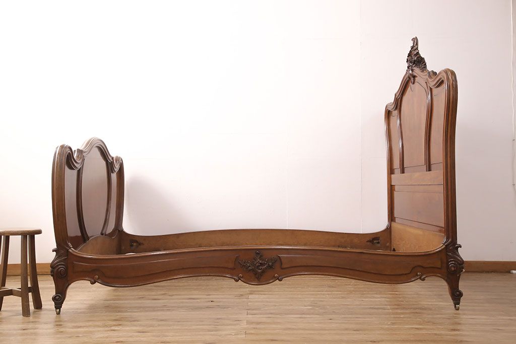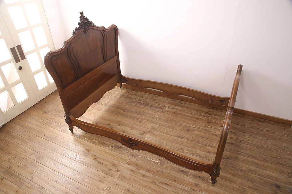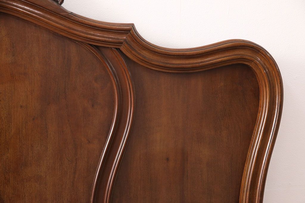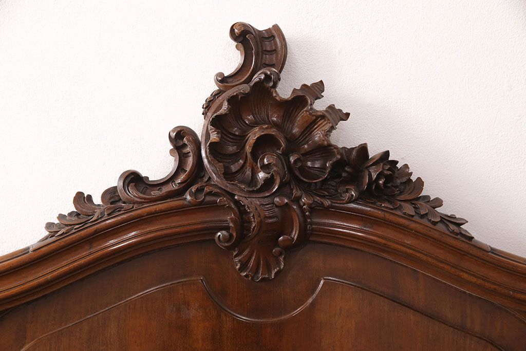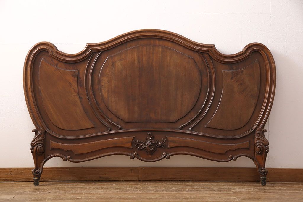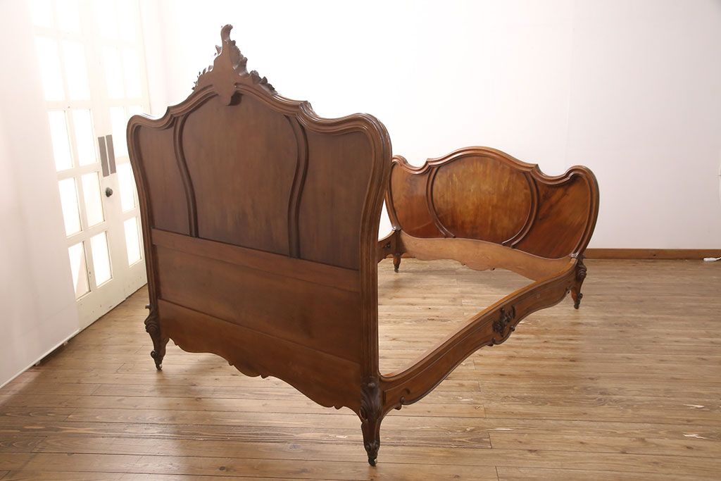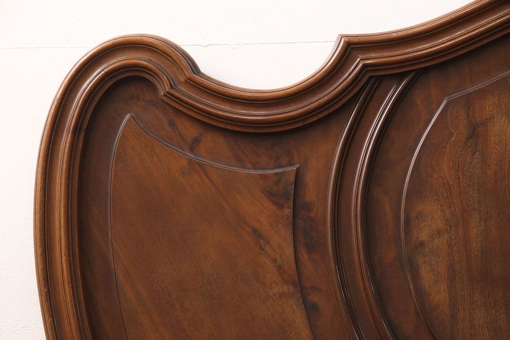 ラフジュ工房> ベッド > アンティーク家具 最高級 フランス マホガニー材 落ち着きのある色合いと素晴らしい彫刻がクラシカルな雰囲気を高めるベッドフレーム(セミダブル)(R-052735)