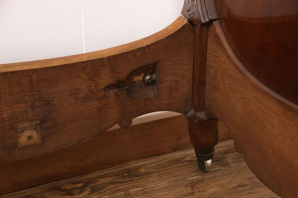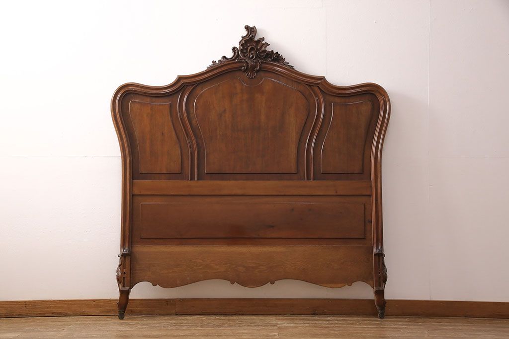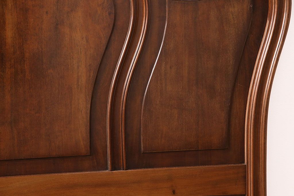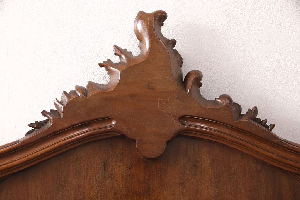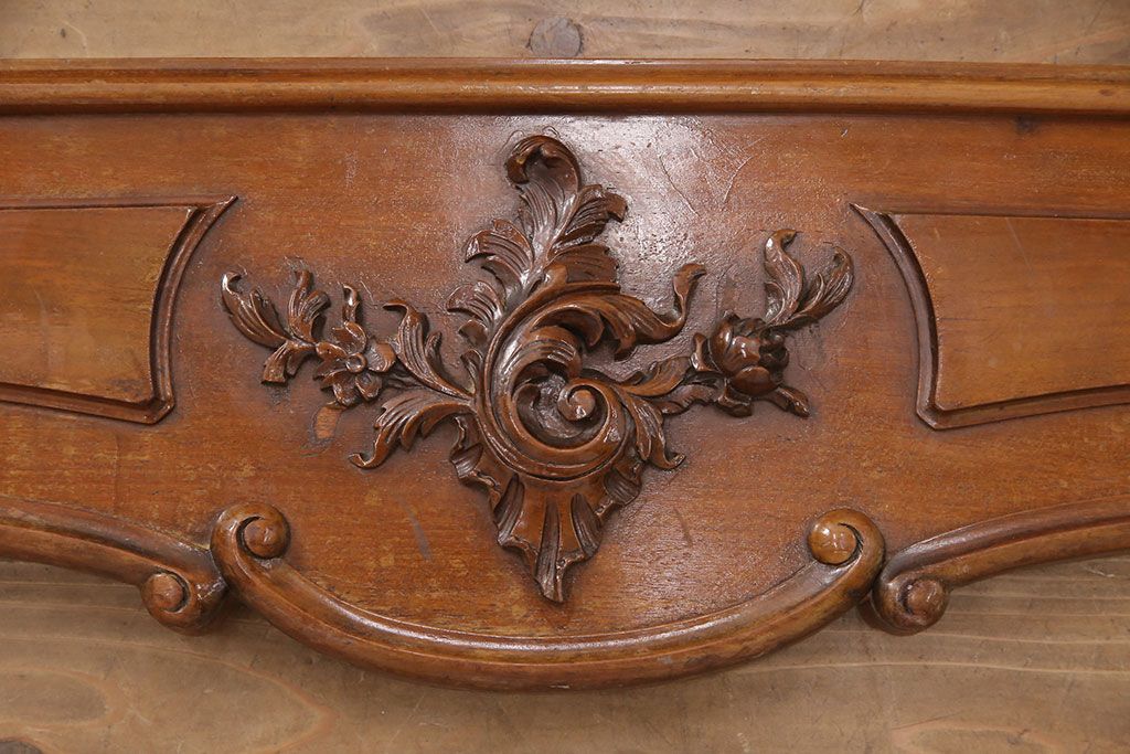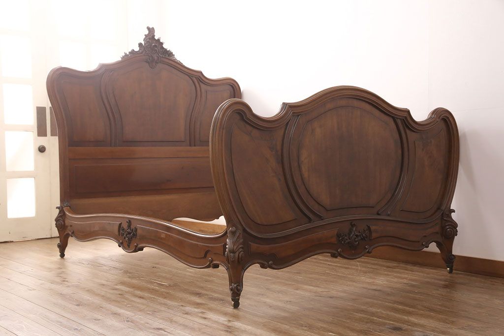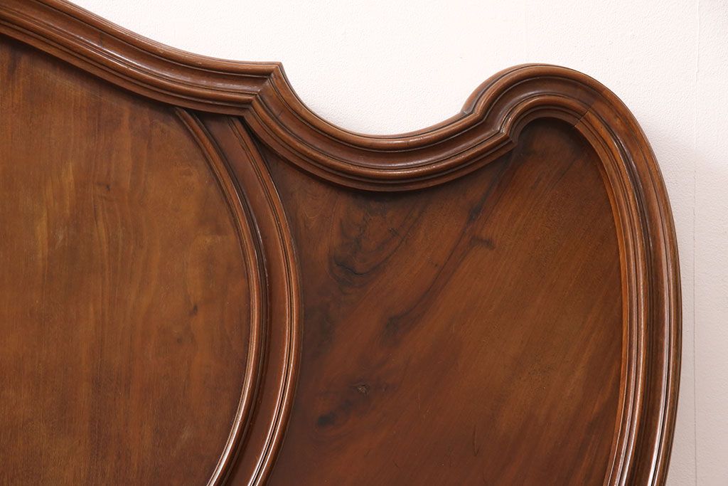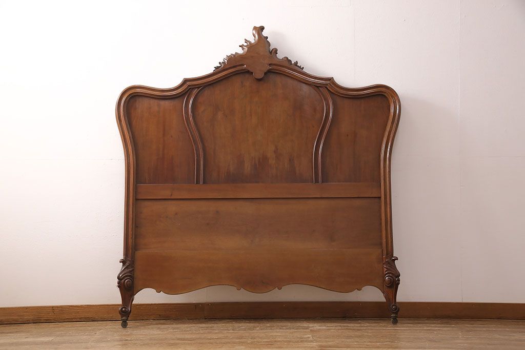ラフジュ工房> ベッド > アンティーク家具 最高級 フランス マホガニー材 落ち着きのある色合いと素晴らしい彫刻がクラシカルな雰囲気を高めるベッドフレーム(セミダブル)(R-052735)