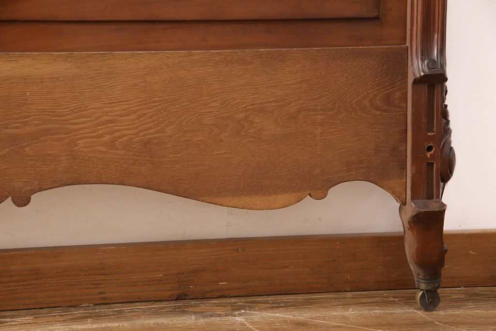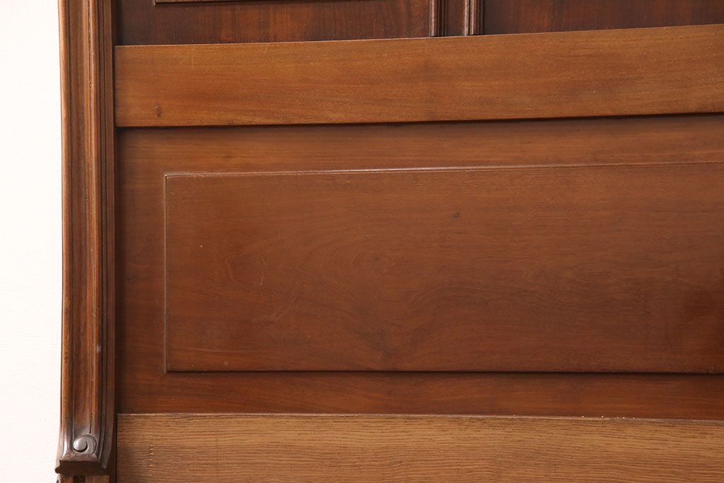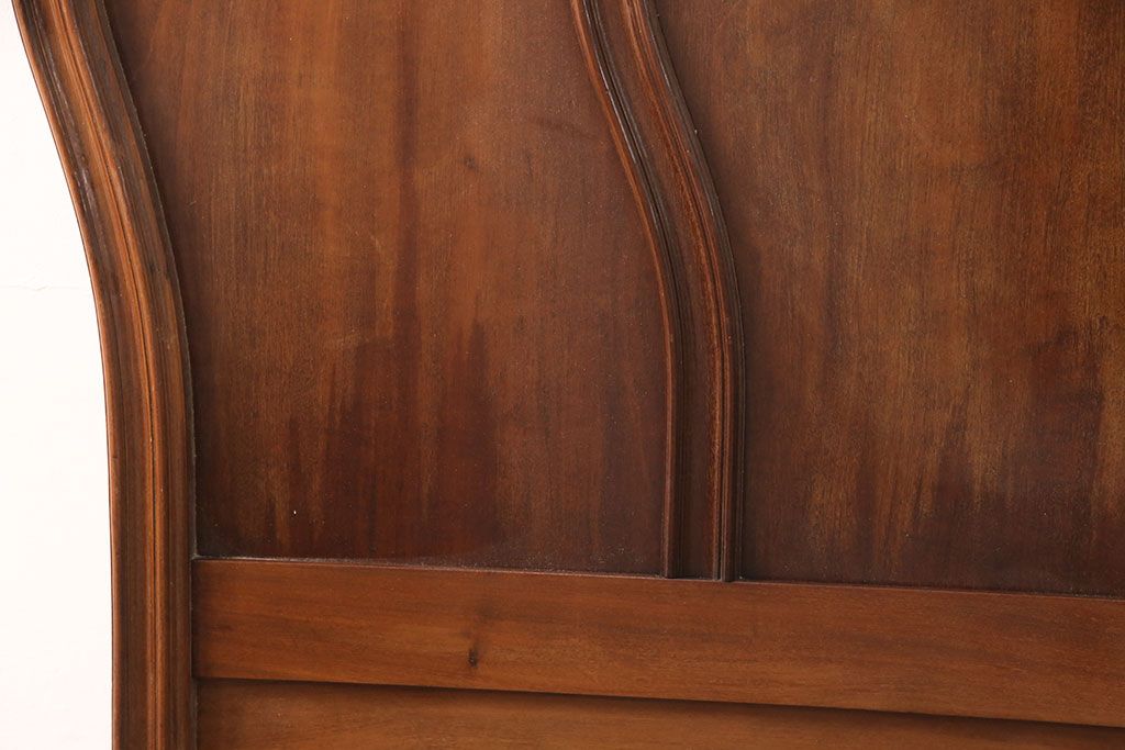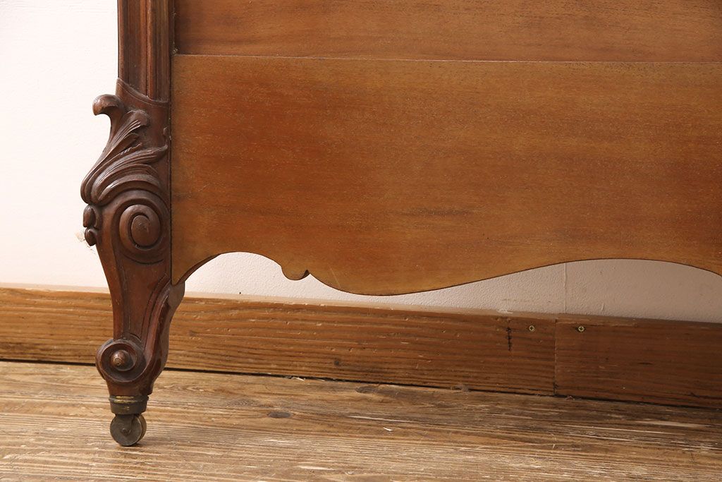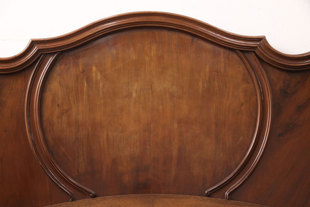 アンティーク家具 最高級 フランス マホガニー材 落ち着きのある色合いと素晴らしい彫刻がクラシカルな雰囲気を高めるベッドフレーム(セミダブル)(R-052735)