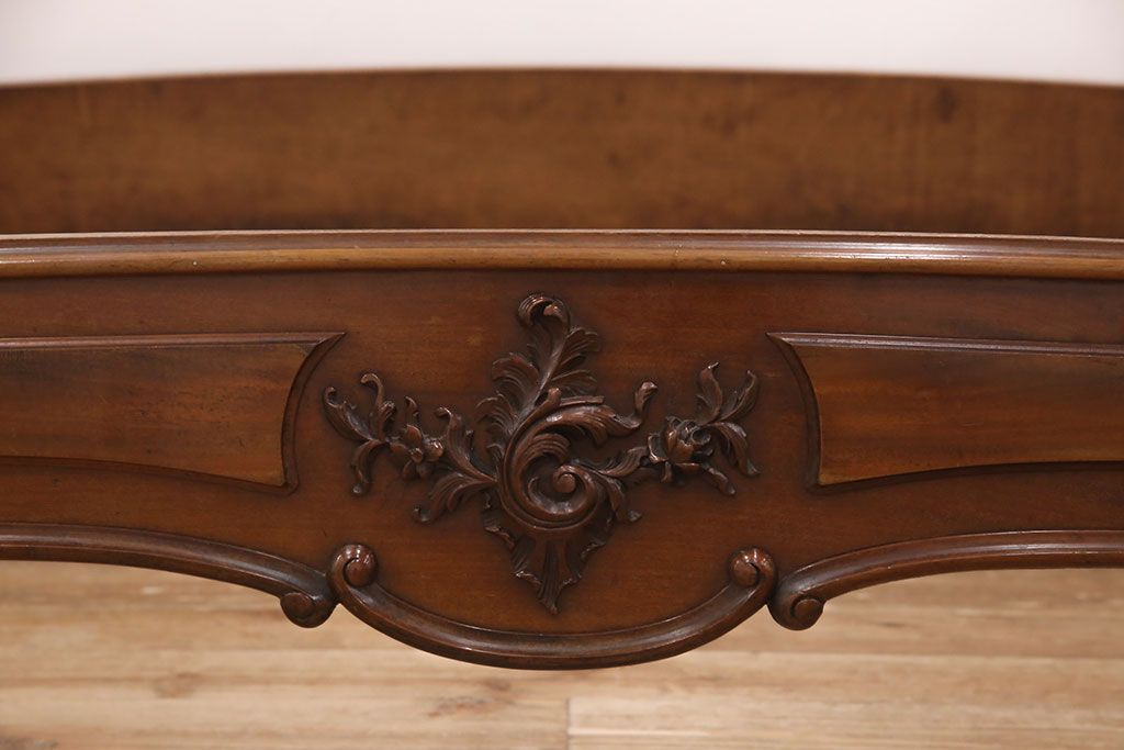 ラフジュ工房> ベッド> セミダブル > アンティーク家具 最高級 フランス マホガニー材 落ち着きのある色合いと素晴らしい彫刻がクラシカルな雰囲気を高めるベッドフレーム(セミダブル)(R-052735)