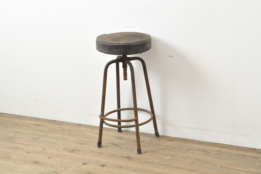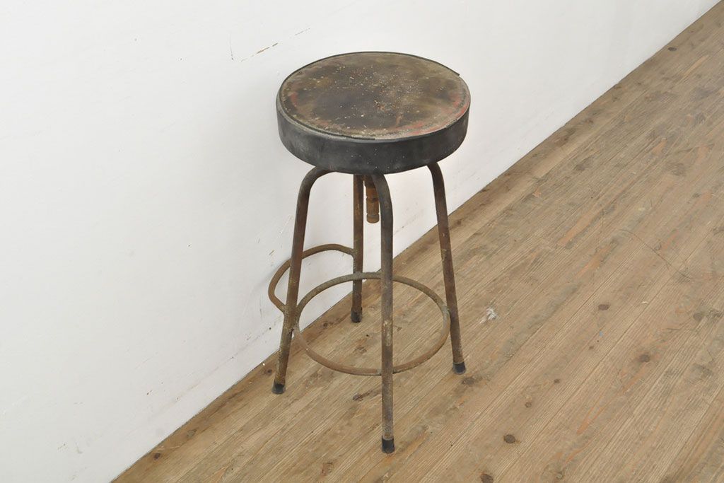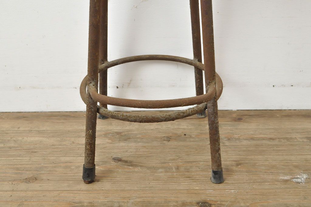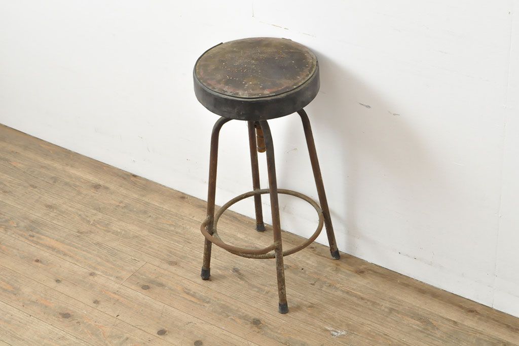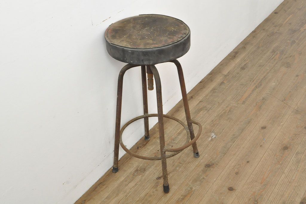 状態が気になる方には現状販売はおすすめできませんので、慎重なご検討をお願いいたします。和製アンティーク インダストリアルな空間づくりにおすすめのスツール(丸椅子)(R-053040)です。