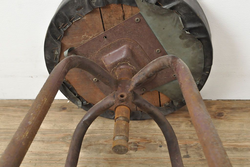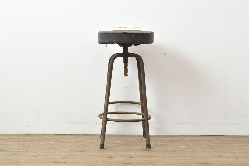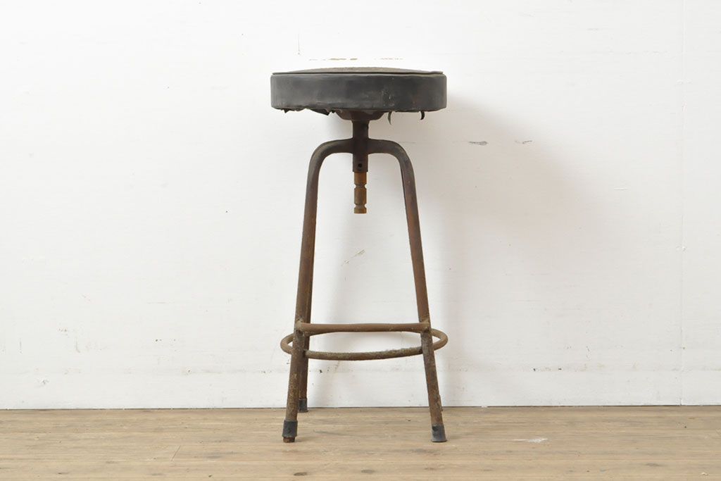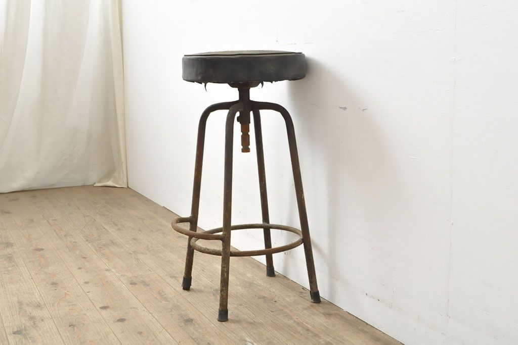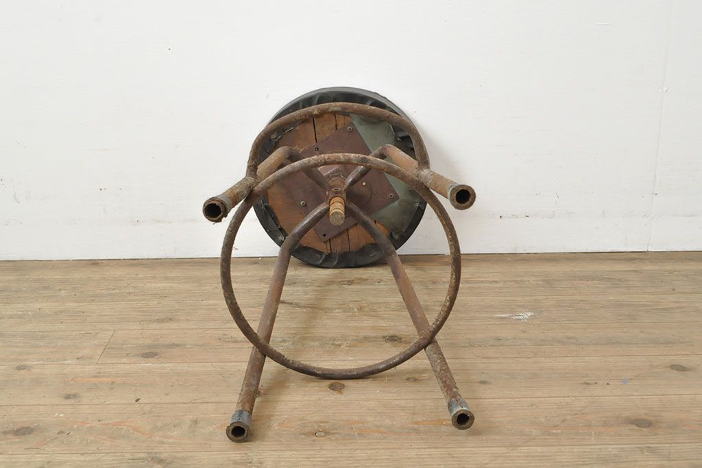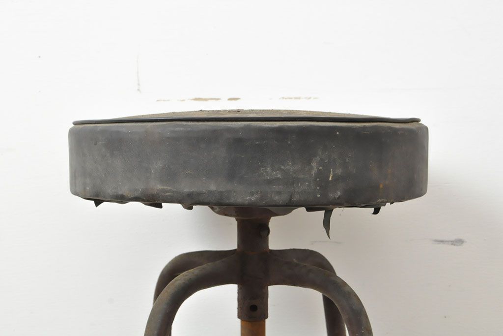 状態が気になる方には現状販売はおすすめできませんので、慎重なご検討をお願いいたします。和製アンティーク インダストリアルな空間づくりにおすすめのスツール(丸椅子)(R-053040)です。