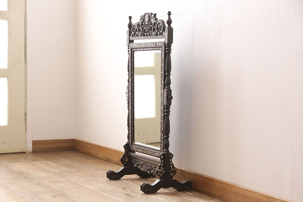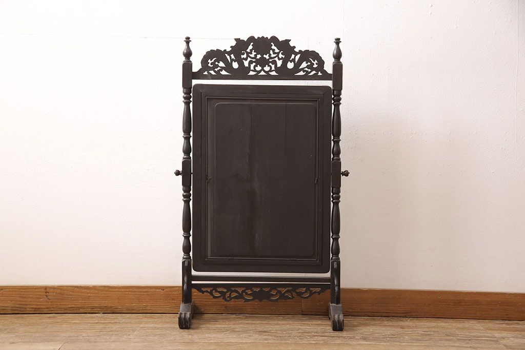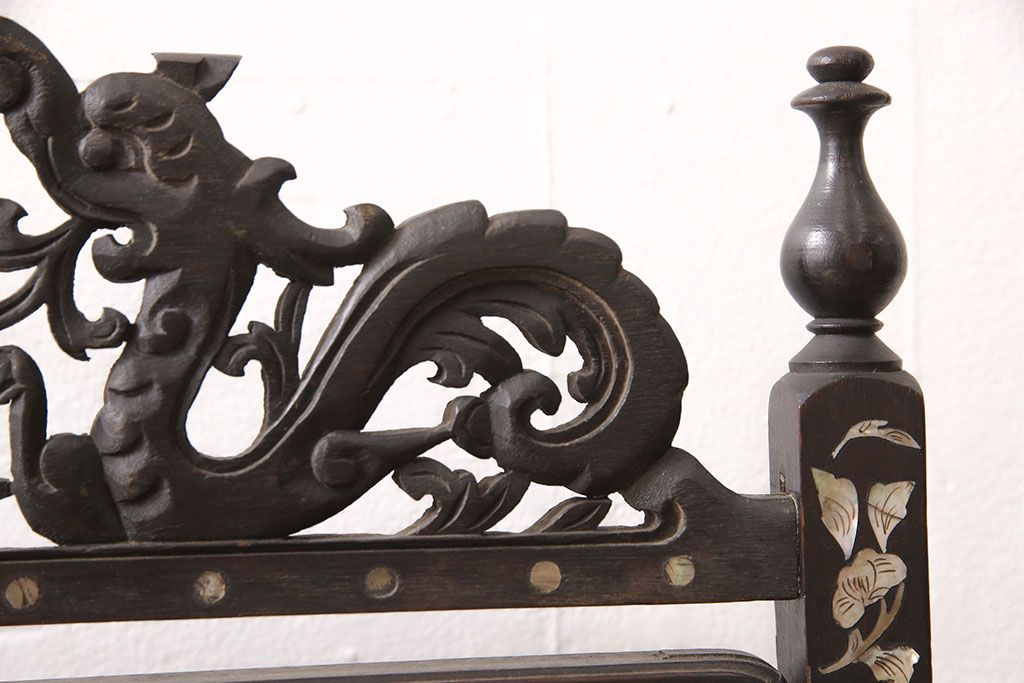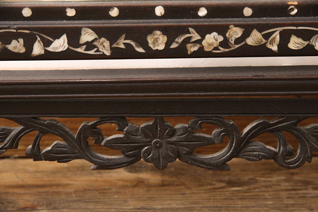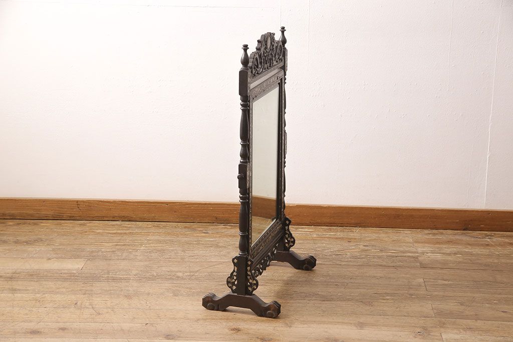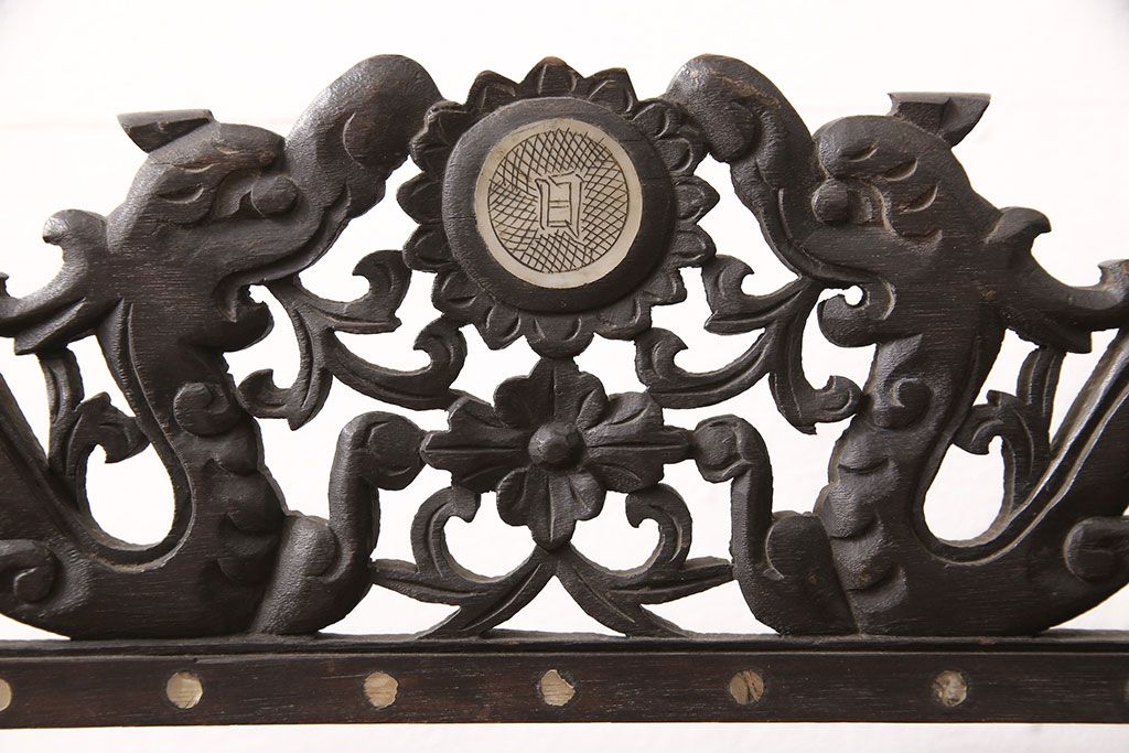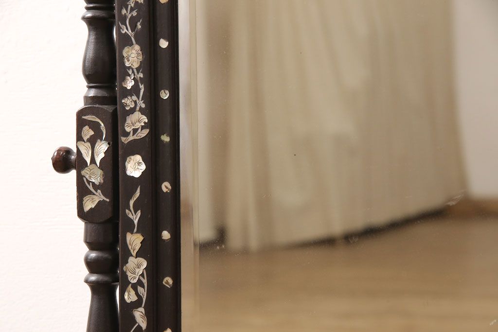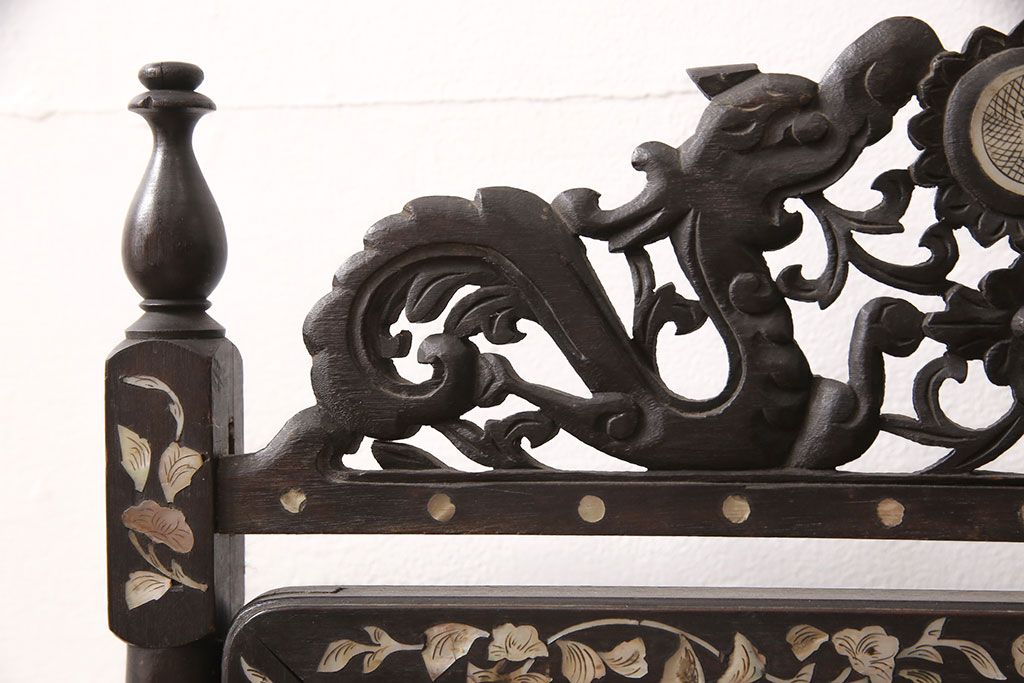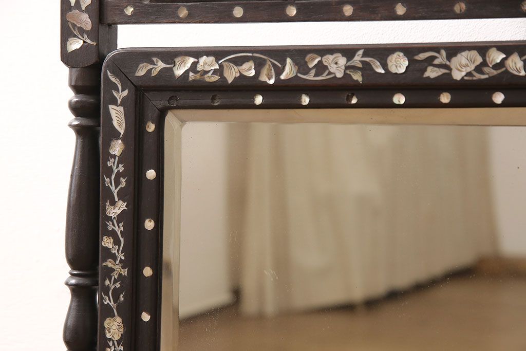 時代物 古い 李朝螺鈿細工 龍彫刻 座鏡(朝鮮、中国、ミラー)(R-053179)です。