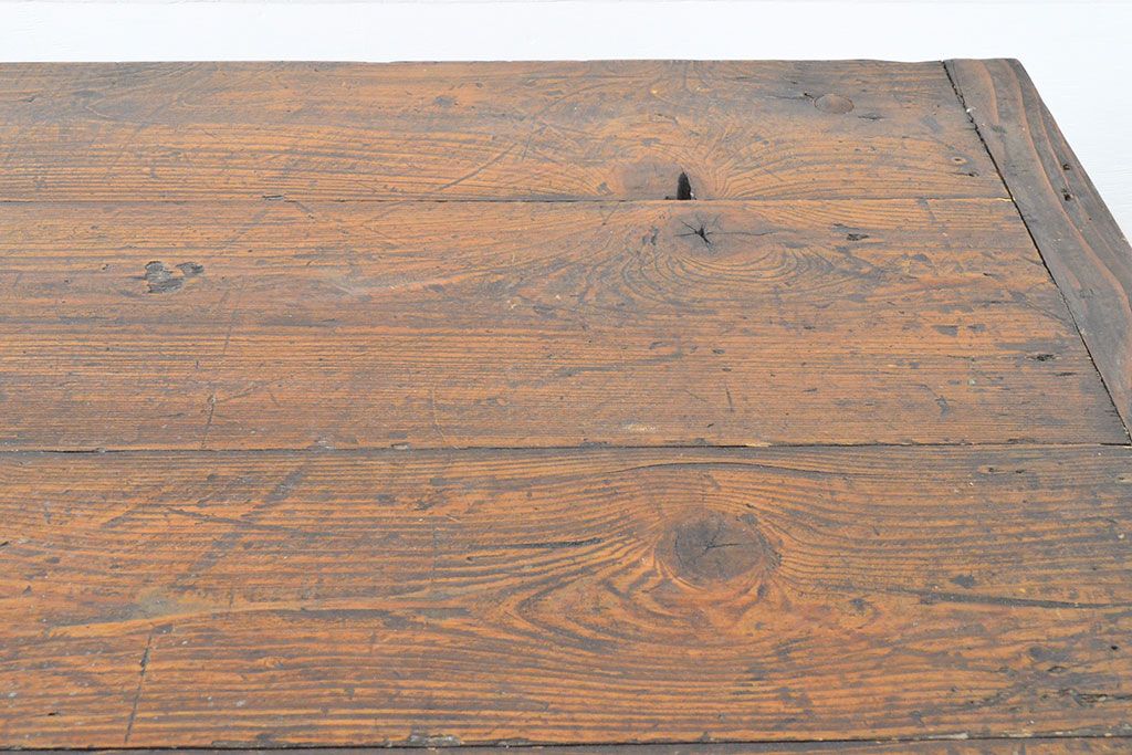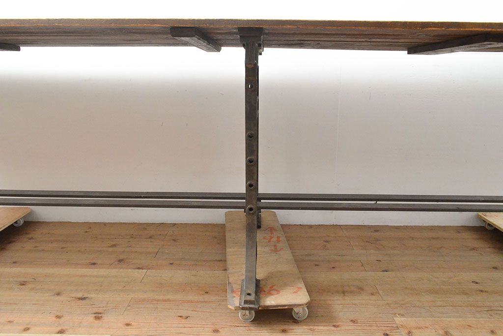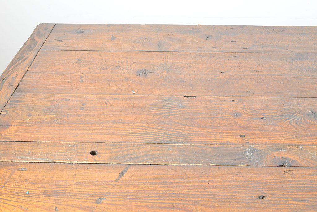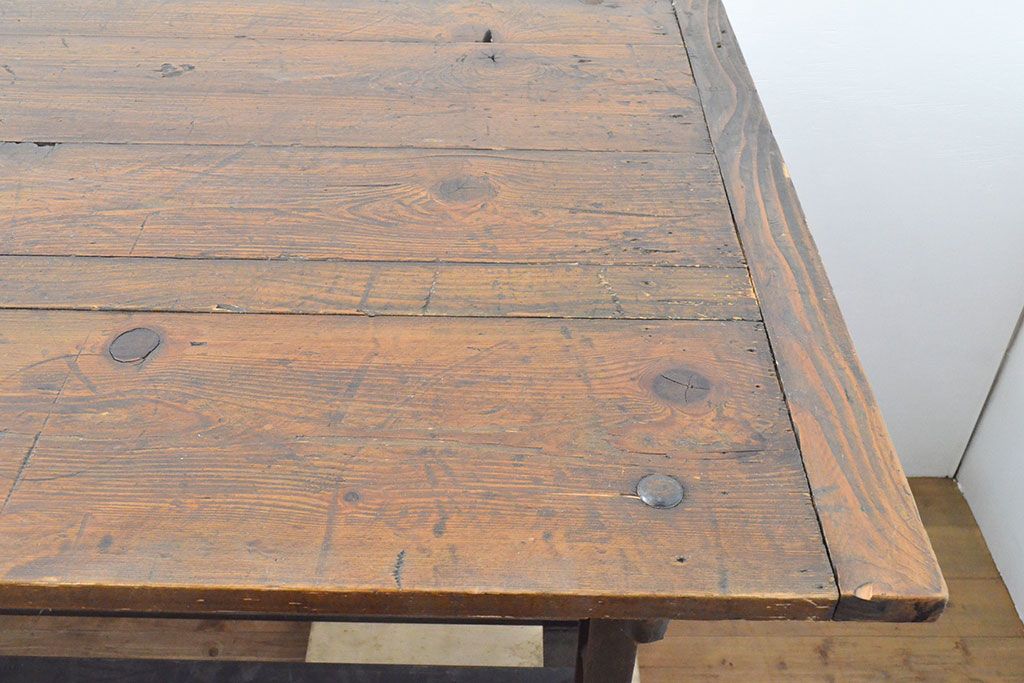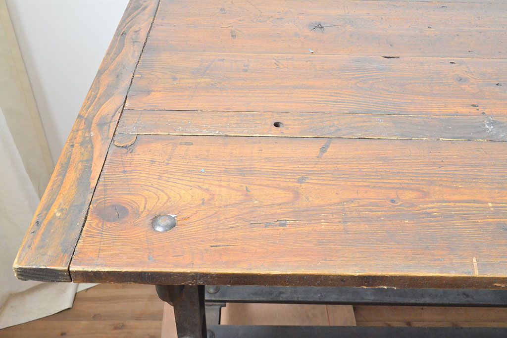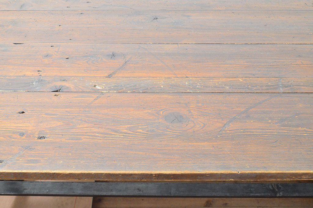 テーブル> 鉄脚テーブル > フランスアンティーク パイン材 特大!インダストリアルな空間づくりにおすすめの鉄脚テーブル(作業台、アイアンレッドワークデスク、在宅ワーク、在宅用)(R-053220)