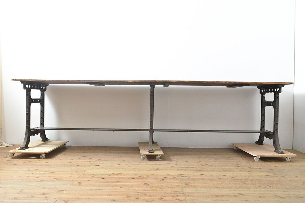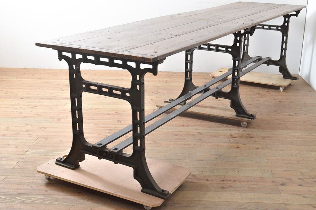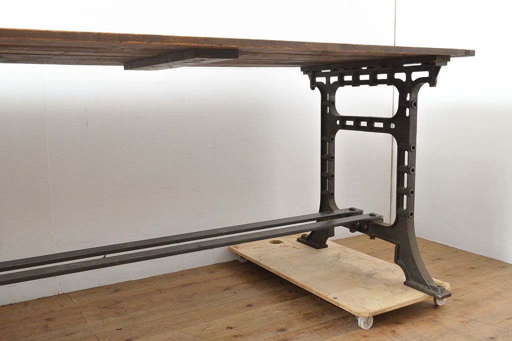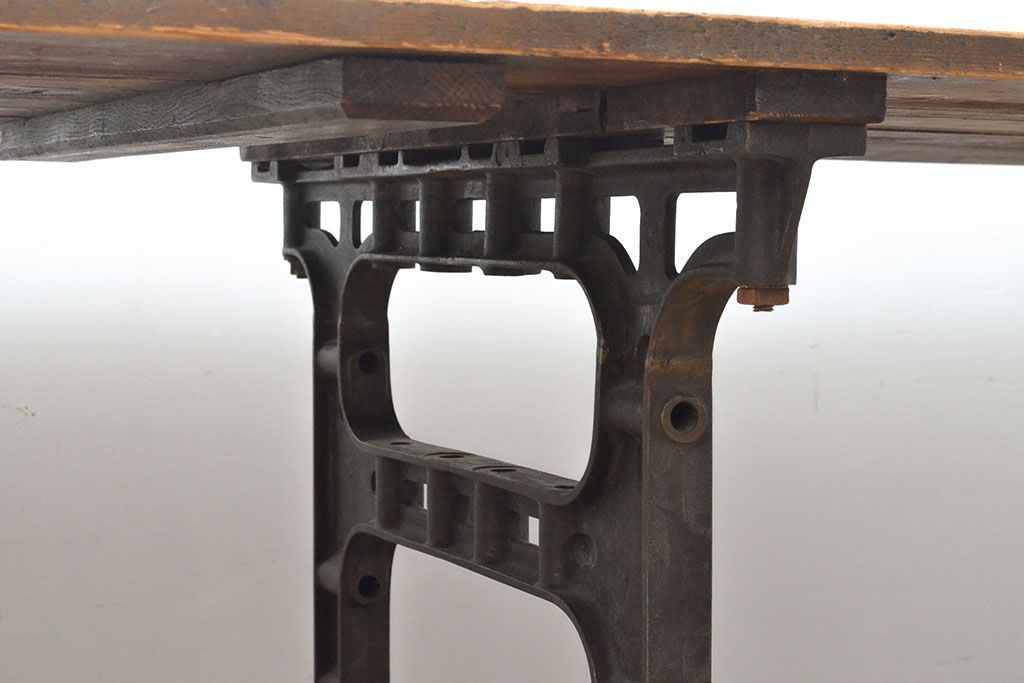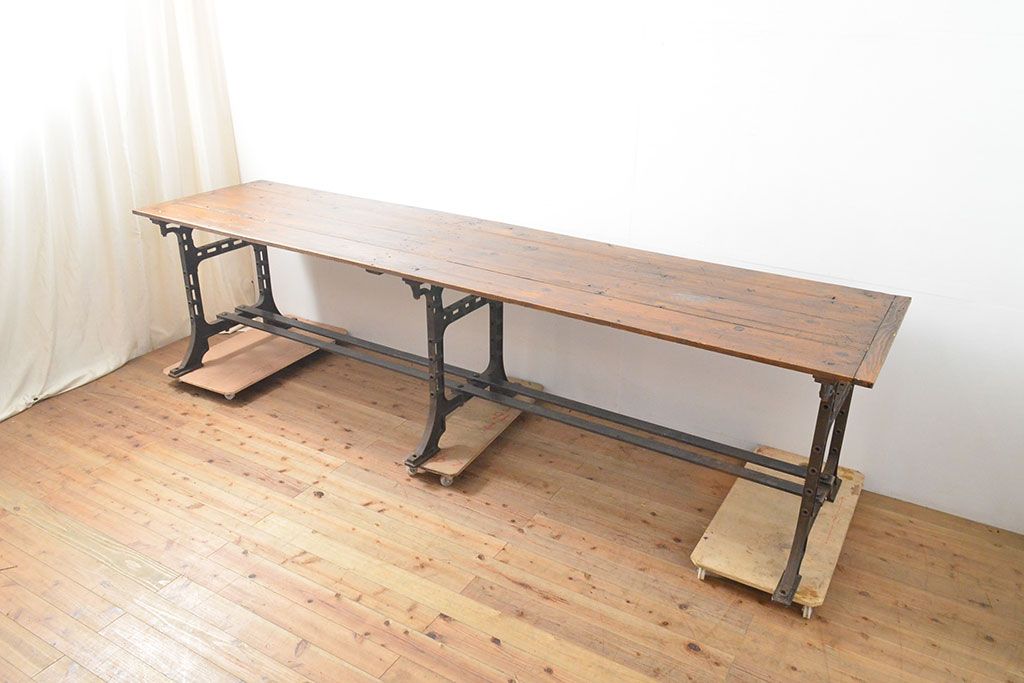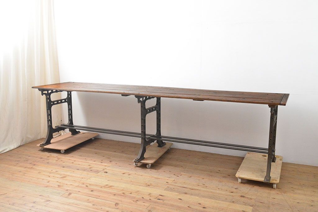 テーブル> 鉄脚テーブル > フランスアンティーク パイン材 特大!インダストリアルな空間づくりにおすすめの鉄脚テーブル(作業台、アイアンレッドワークデスク、在宅ワーク、在宅用)(R-053220)