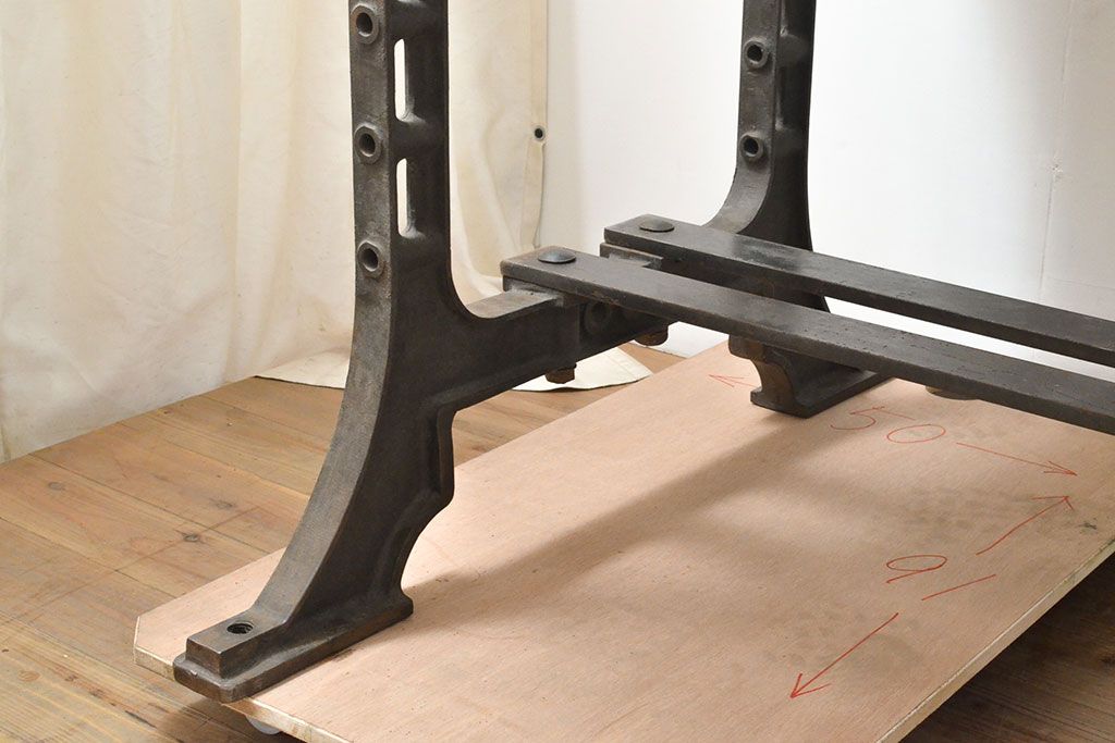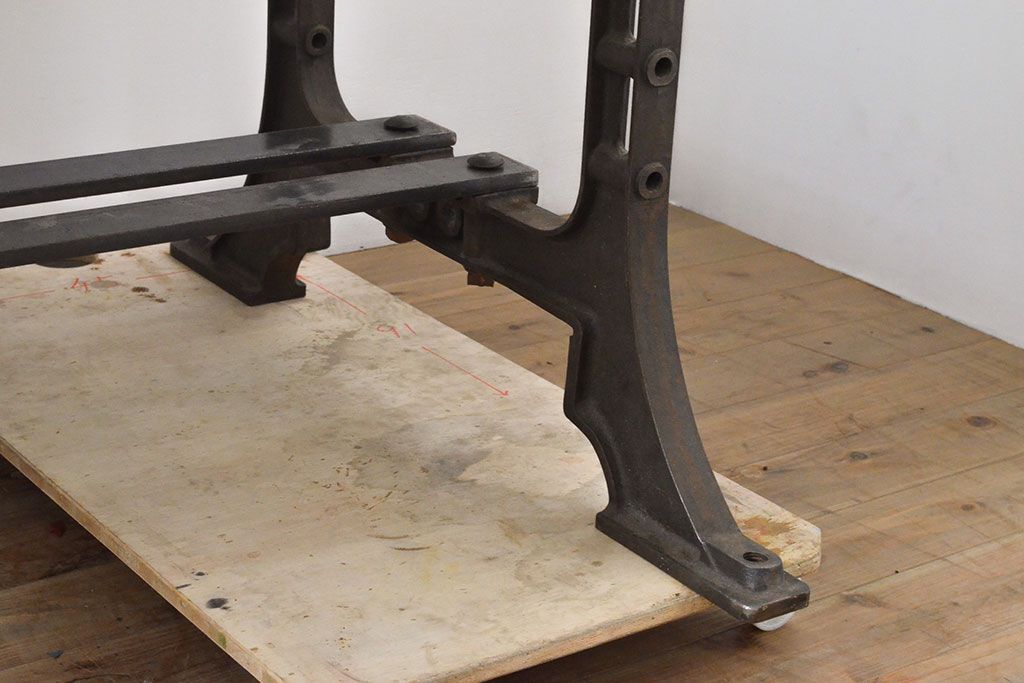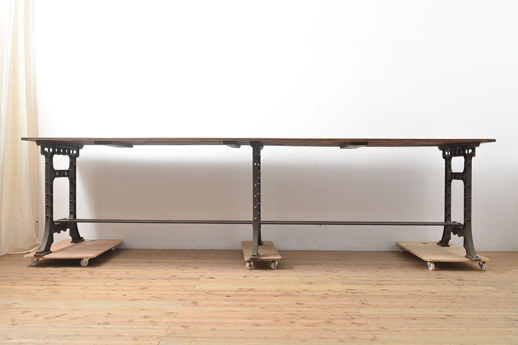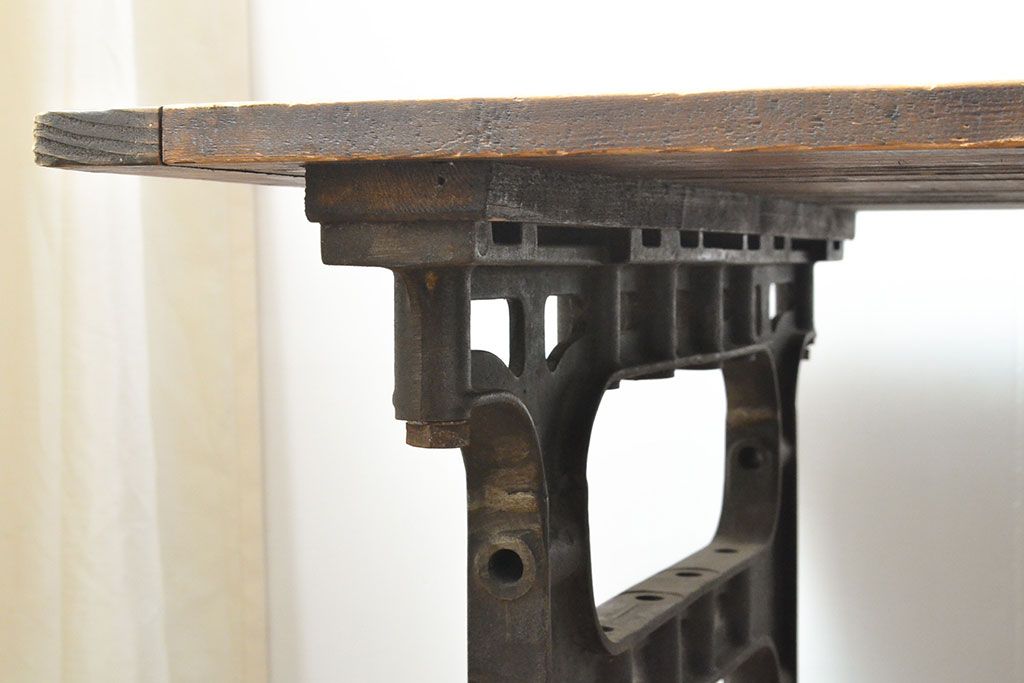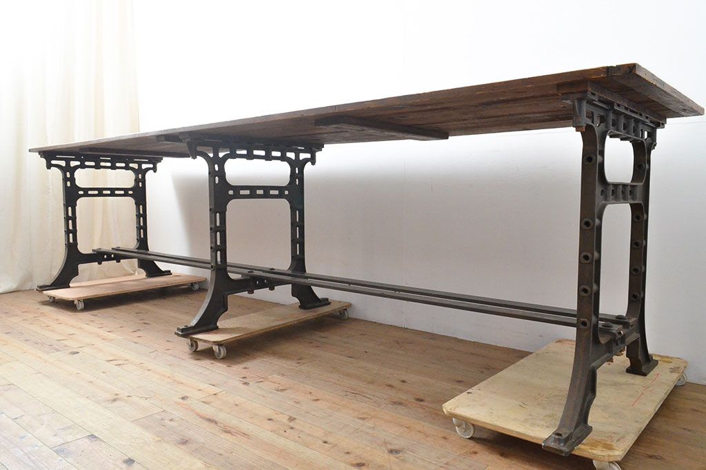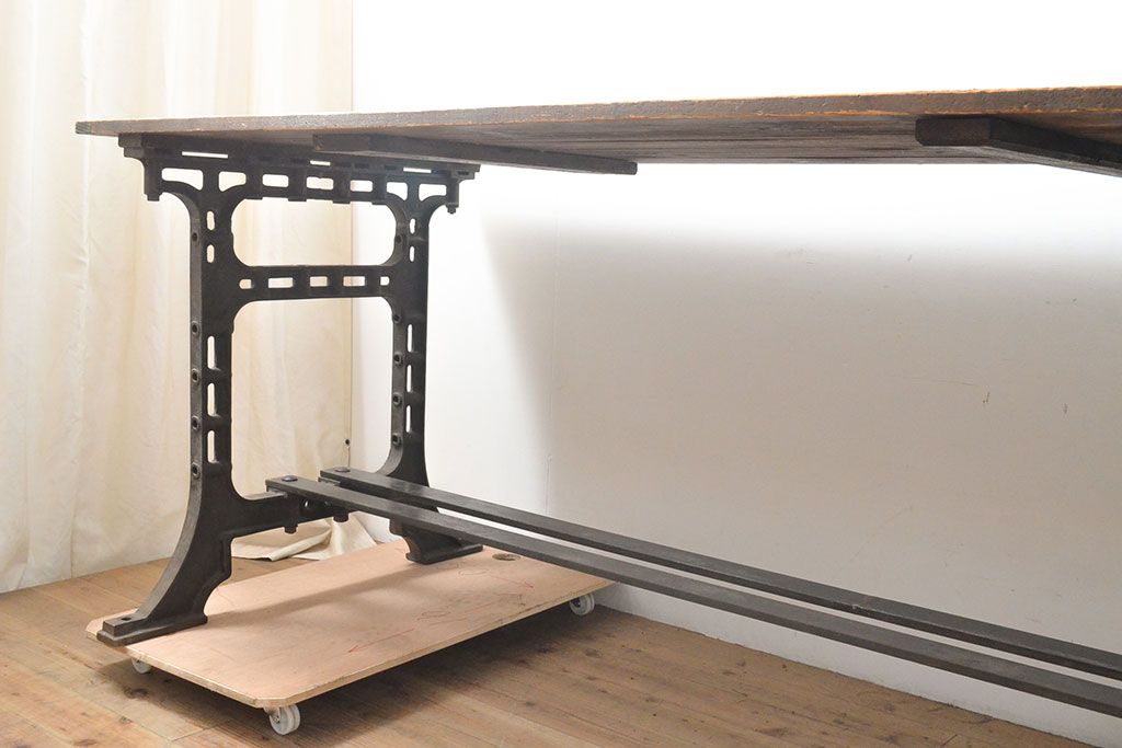 テーブル> 鉄脚テーブル > フランスアンティーク パイン材 特大!インダストリアルな空間づくりにおすすめの鉄脚テーブル(作業台、アイアンレッドワークデスク、在宅ワーク、在宅用)(R-053220)