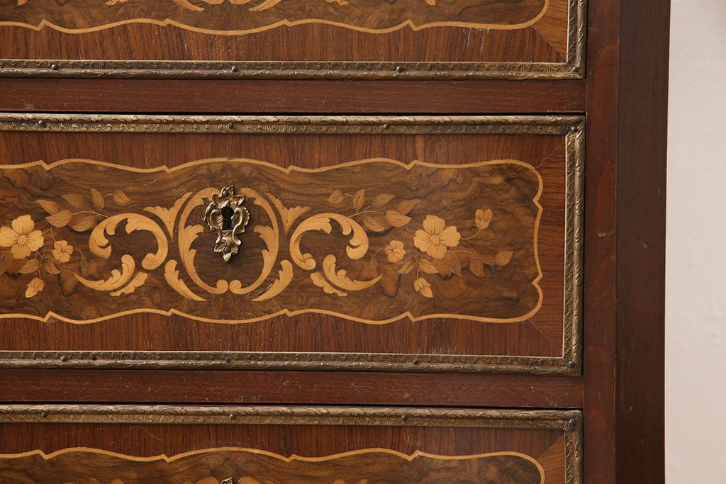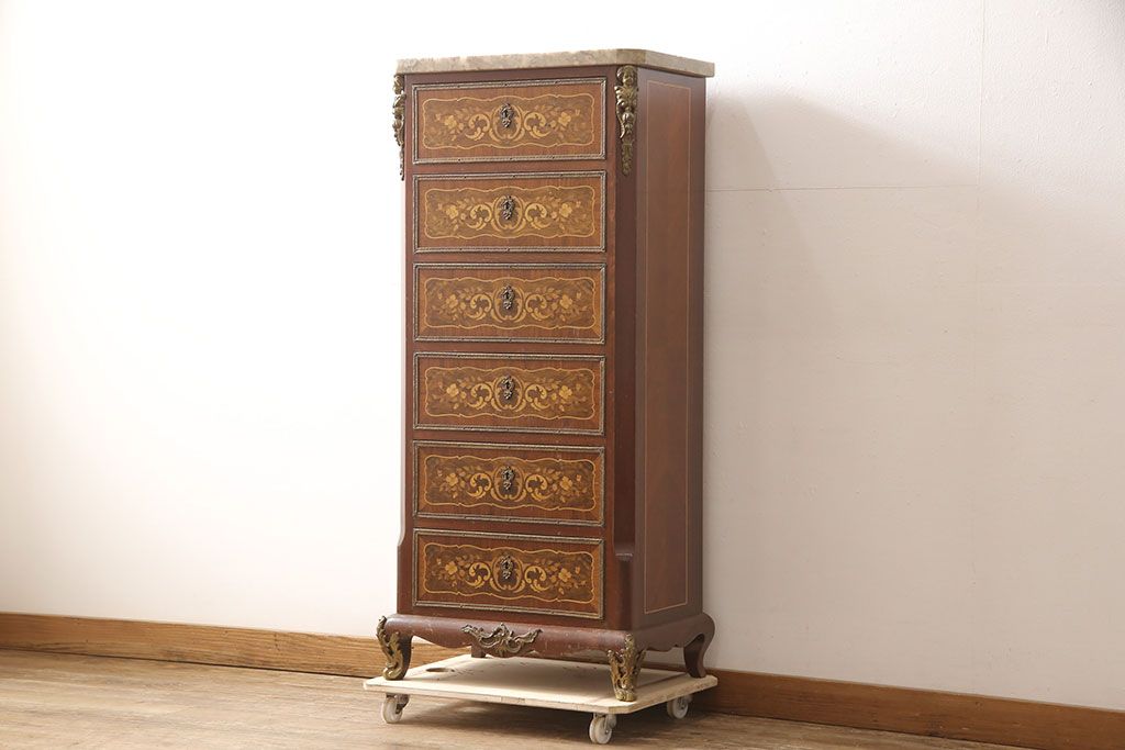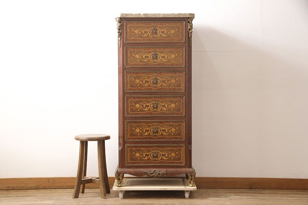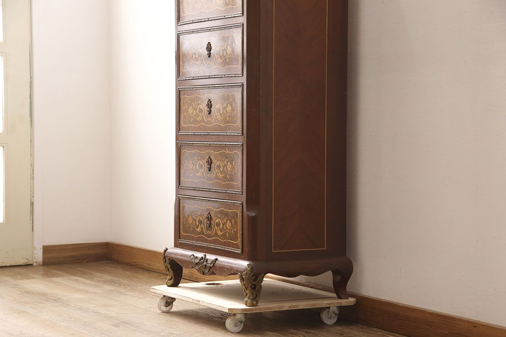 高級品 マリネール 様々な装飾が美しいスペイン製の縦型チェスト(サイドチェスト、引き出し、ヴィンテージ)(定価約70万円)(R-053486)