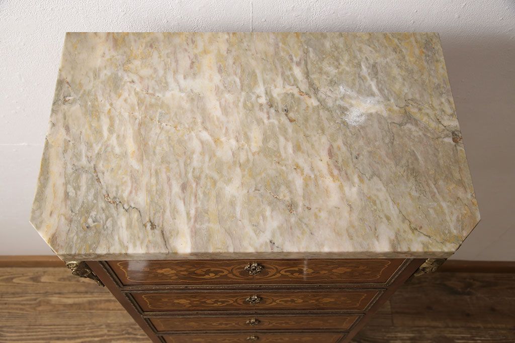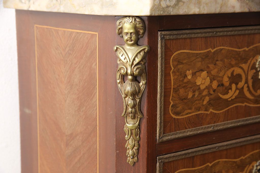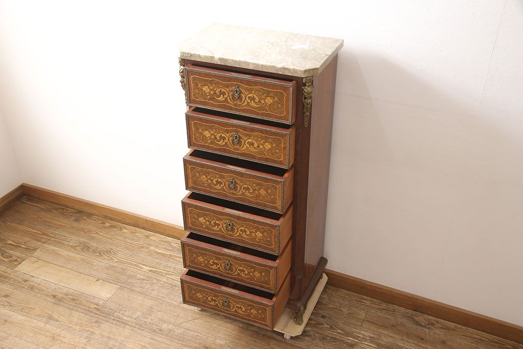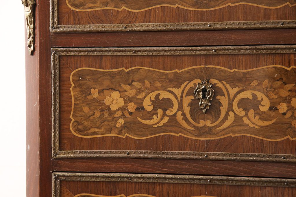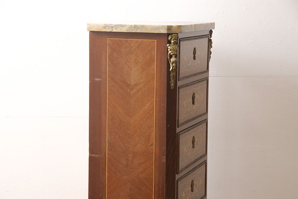 高級品 マリネール 様々な装飾が美しいスペイン製の縦型チェスト(サイドチェスト、引き出し、ヴィンテージ)(定価約70万円)(R-053486)