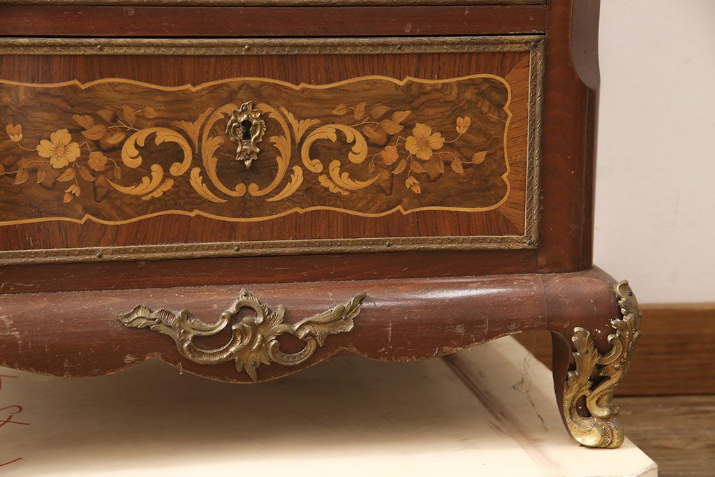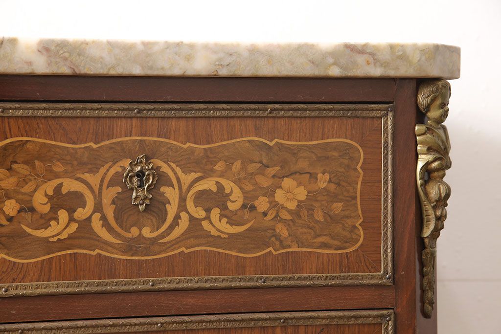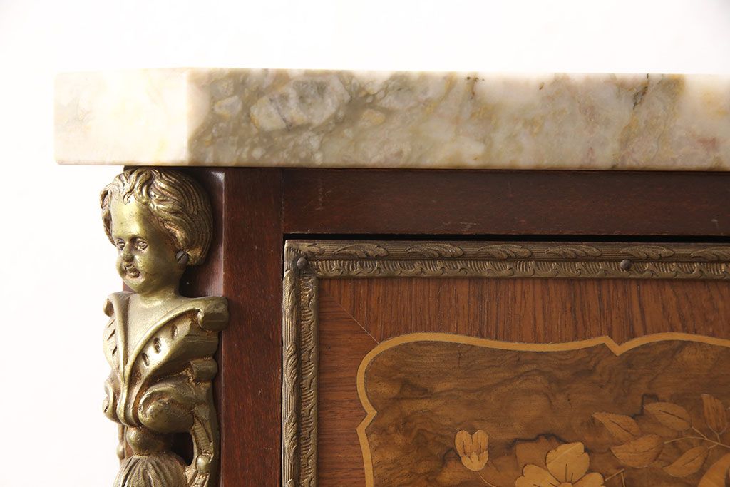 天板の大理石や美しい草花の象嵌(ぞうがん)が