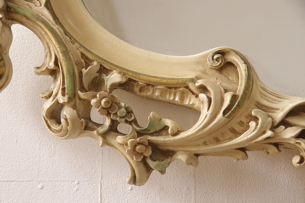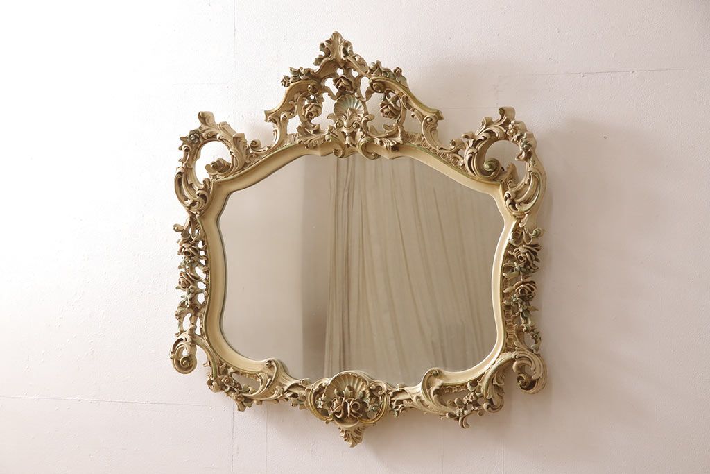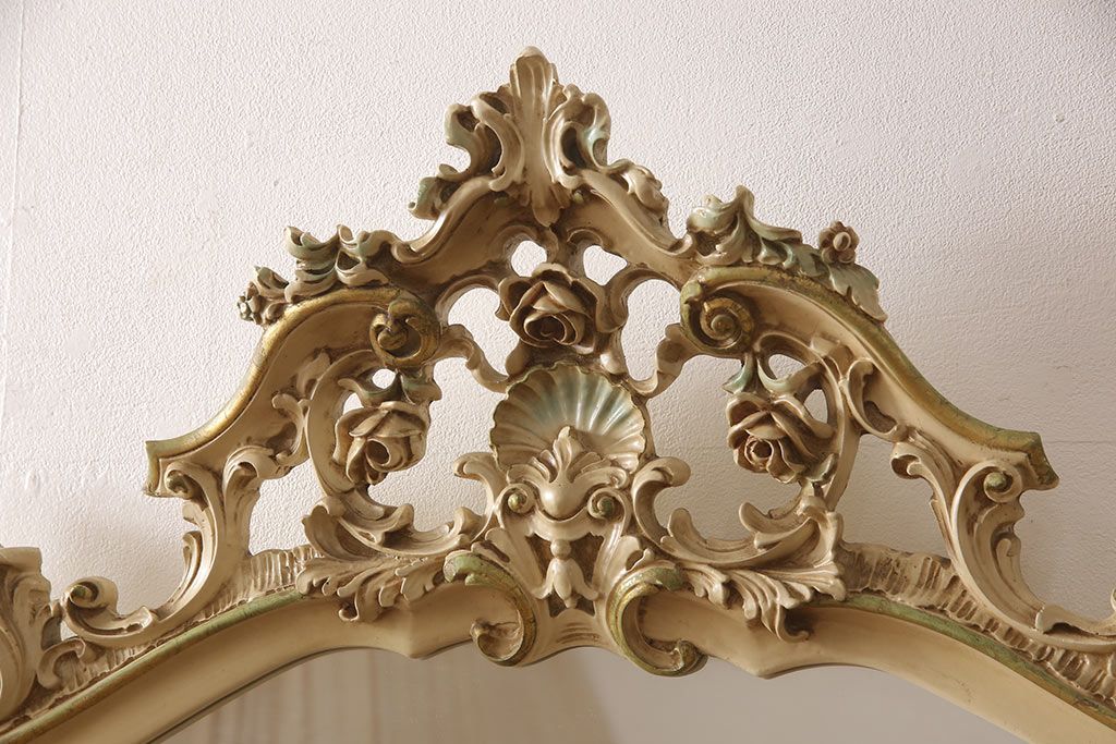 ヴィンテージ家具 イタリア SILIK(シリック) ロココ調の細やかで豪華な彫刻が見事!存在感を放つウォールミラー(壁掛け鏡、ビンテージ)(定価約35万円)(R-053407)