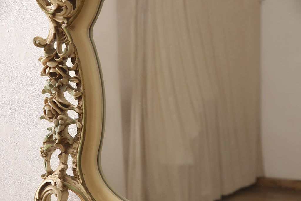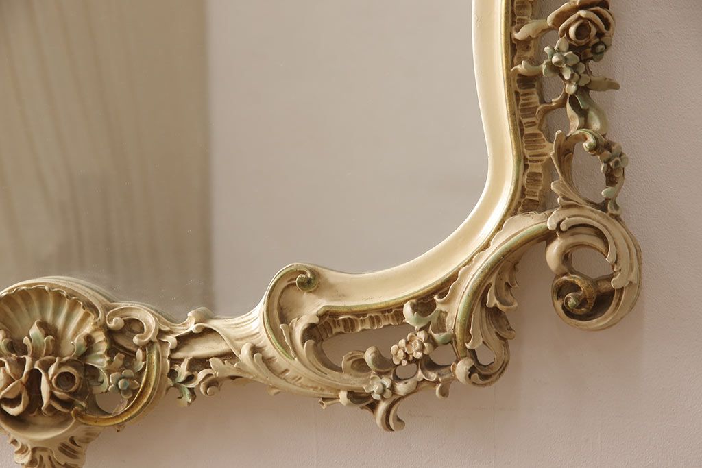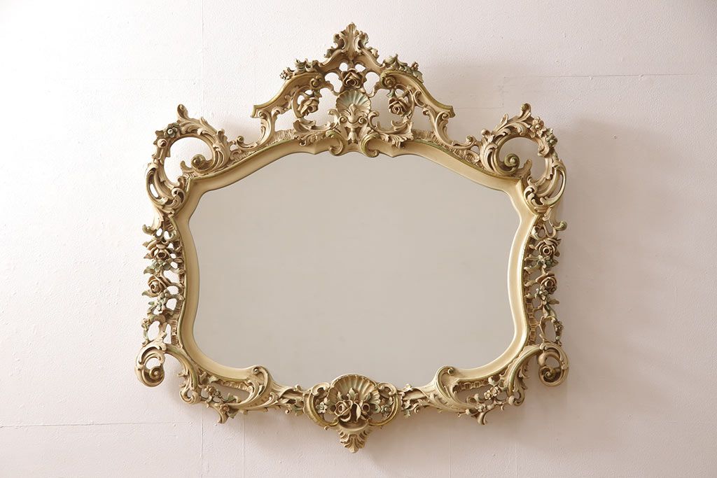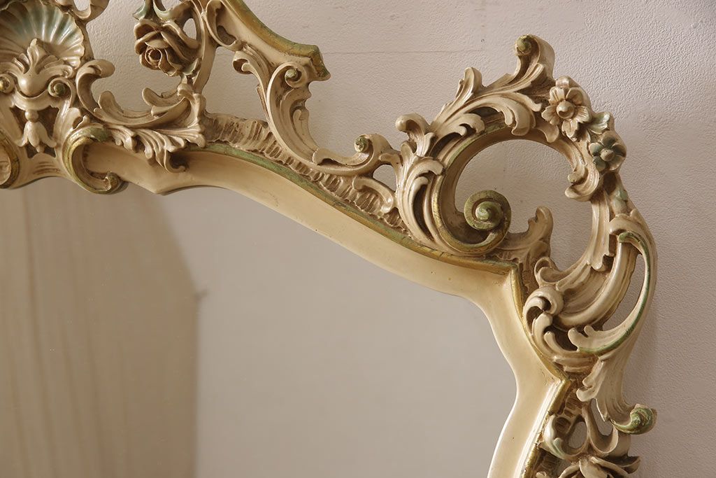 鏡 > ヴィンテージ家具 イタリア SILIK(シリック) ロココ調の細やかで豪華な彫刻が見事!存在感を放つウォールミラー(壁掛け鏡、ビンテージ)(定価約35万円)(R-053407)