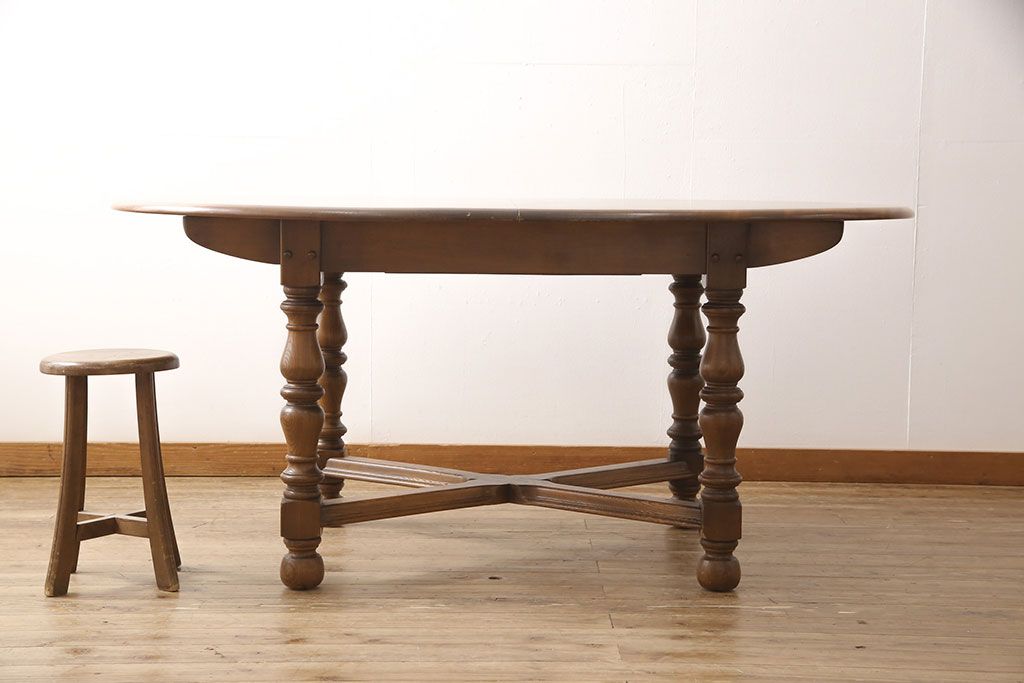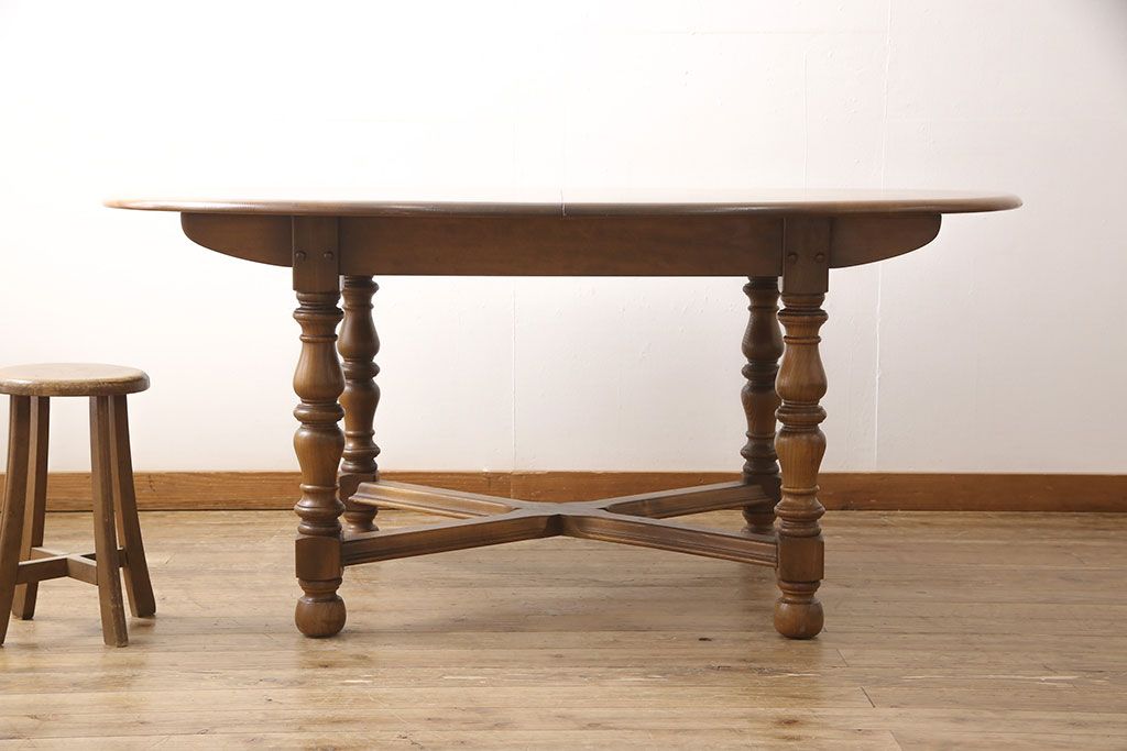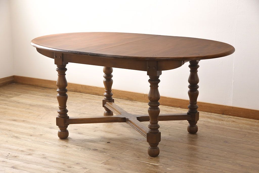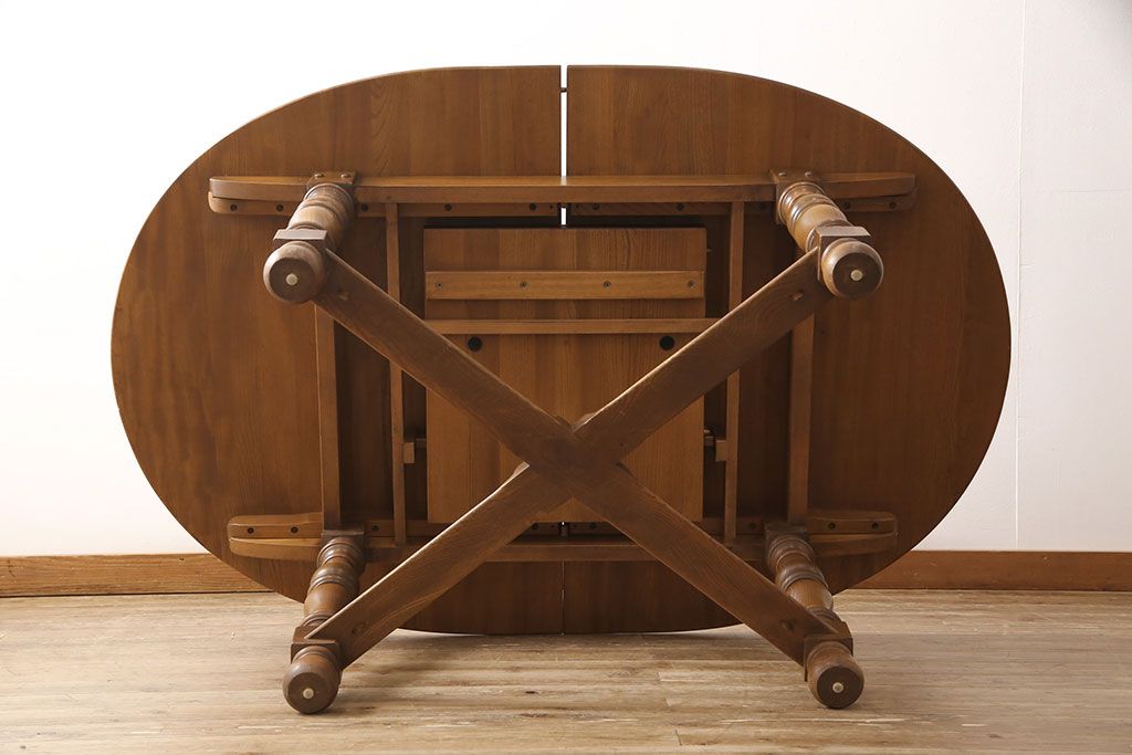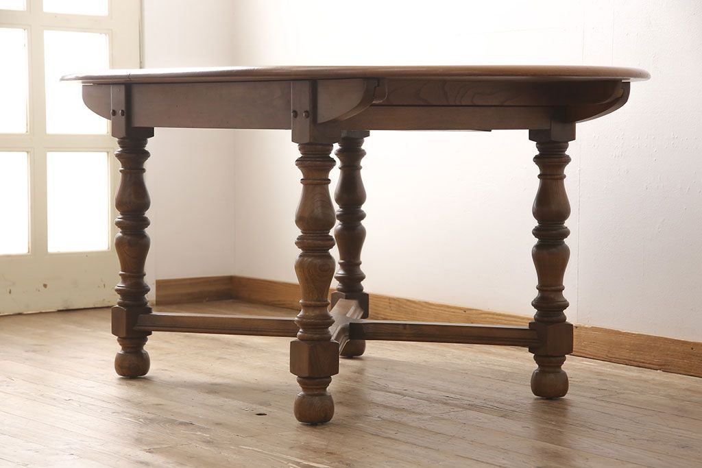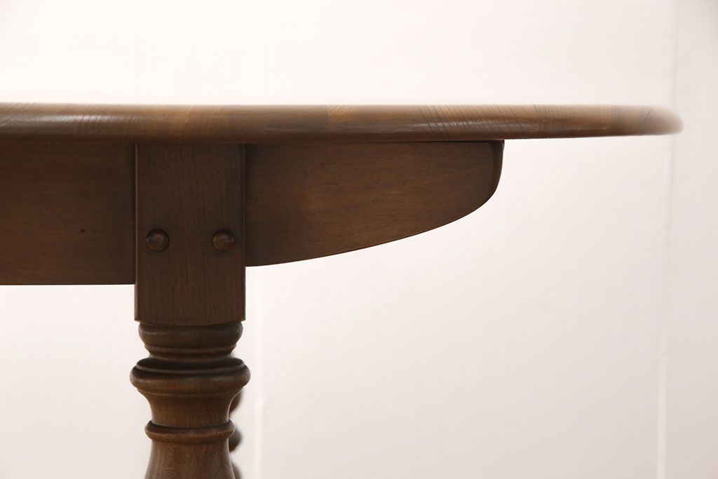 ラフジュ工房> テーブル> 丸テーブル > イギリスビンテージ 美品 ERCOL(アーコール) ニレ材 クラシカルな雰囲気漂うドローリーフテーブル(エクステンションテーブル、ダイニングテーブル、ヴィンテージ)(R-053490)