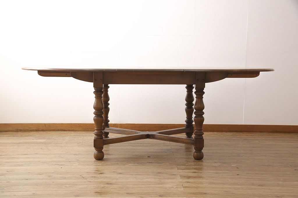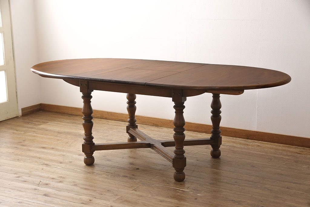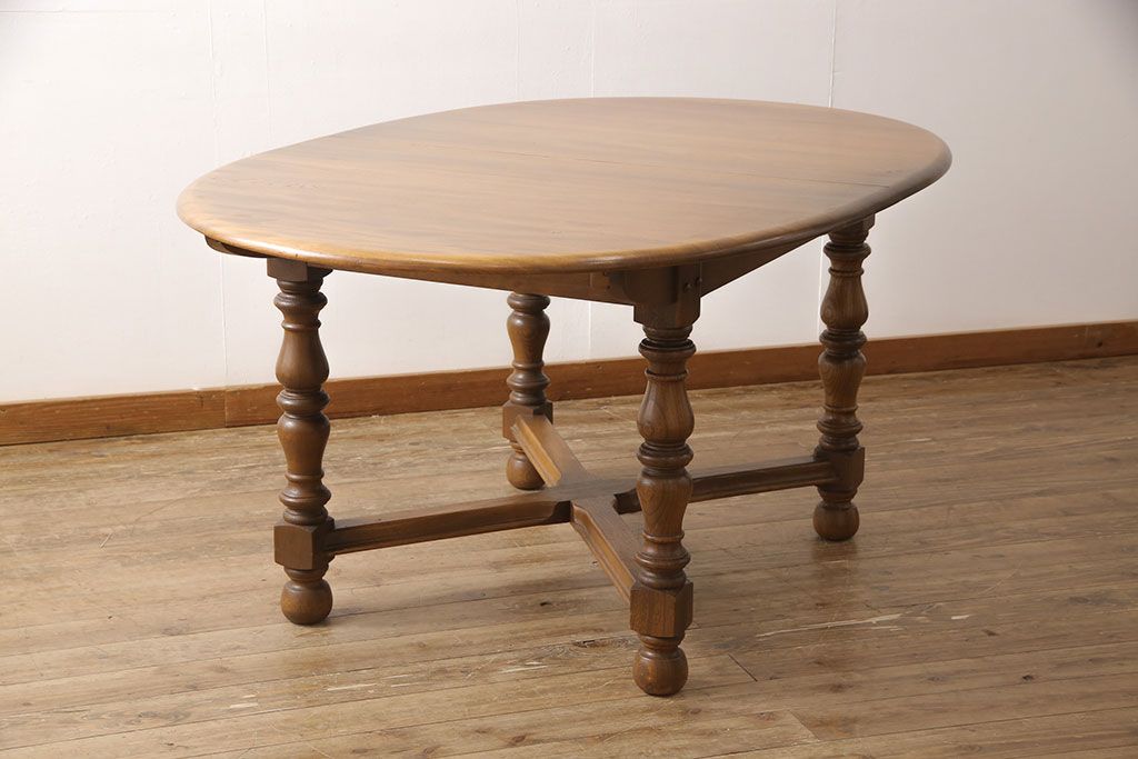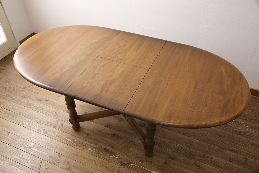 ラフジュ工房> テーブル> 6人用ダイニングテーブル > イギリスビンテージ 美品 ERCOL(アーコール) ニレ材 クラシカルな雰囲気漂うドローリーフテーブル(エクステンションテーブル、ダイニングテーブル、ヴィンテージ)(R-053490)