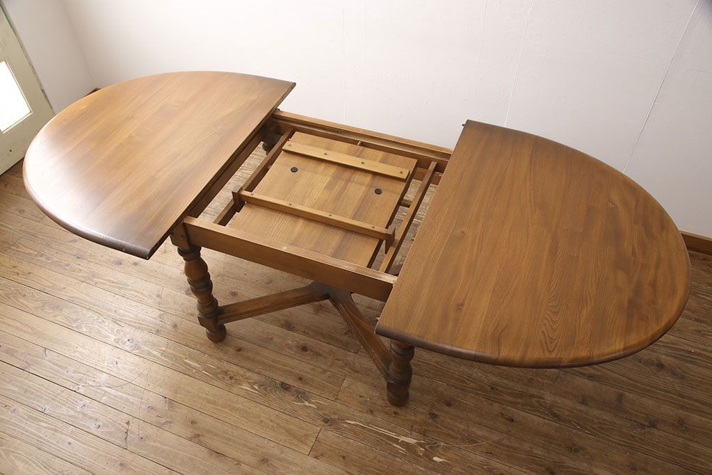 ラフジュ工房> テーブル> エクステンションテーブル > イギリスビンテージ 美品 ERCOL(アーコール) ニレ材 クラシカルな雰囲気漂うドローリーフテーブル(エクステンションテーブル、ダイニングテーブル、ヴィンテージ)(R-053490)