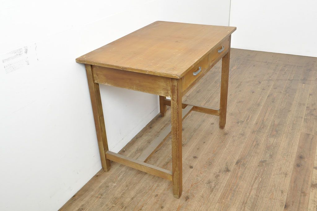 テーブル> 作業台 > 昭和レトロ ラワン材 シンプルな造りとレトロな佇まいが魅力的なデスク(ワークデスク、在宅ワーク、在宅用、作業台)(R-053032)