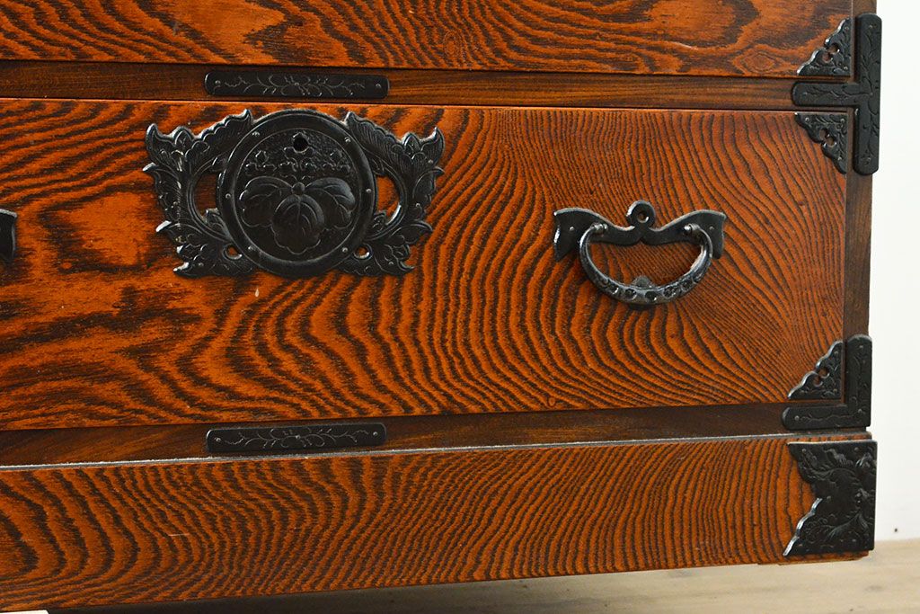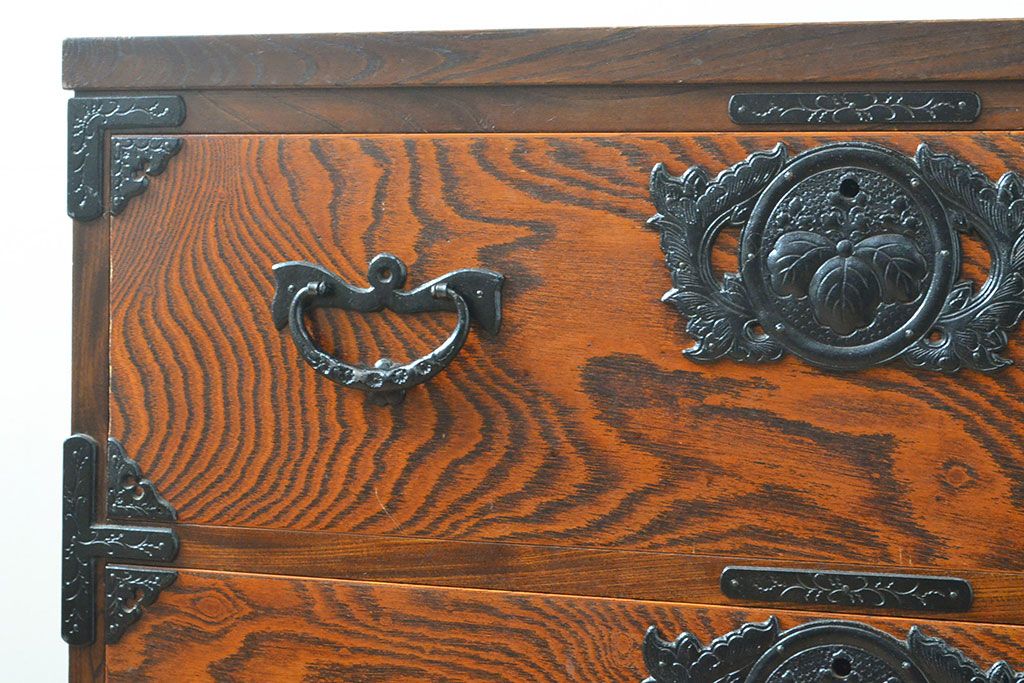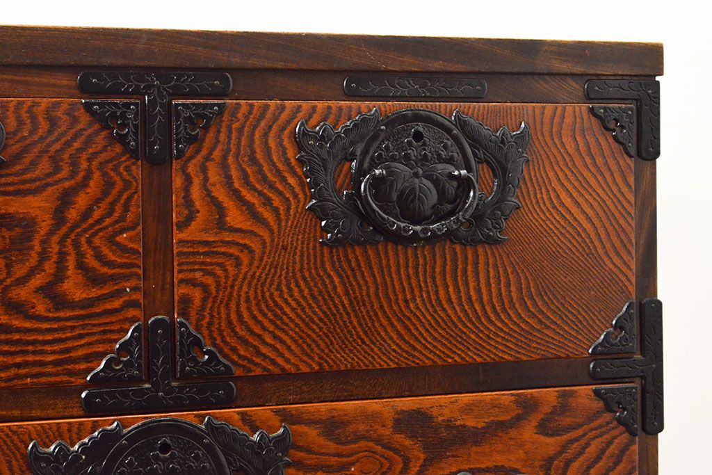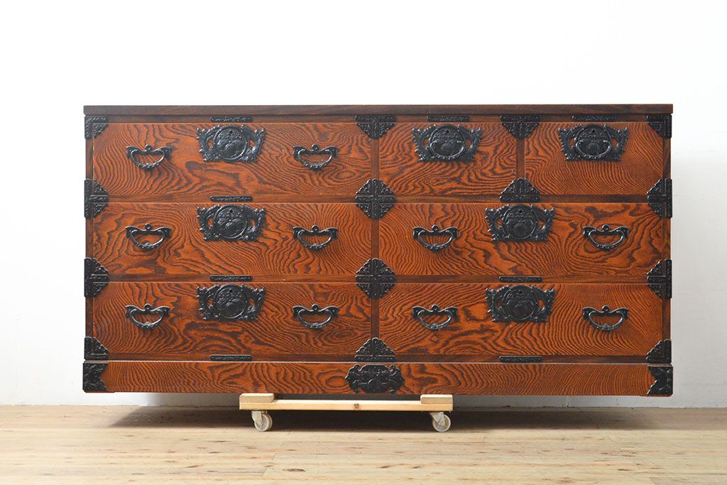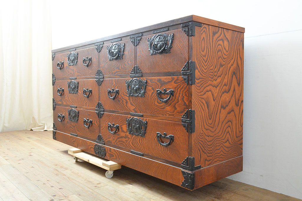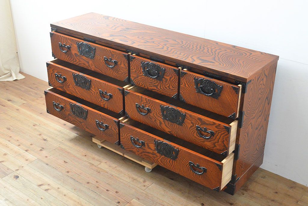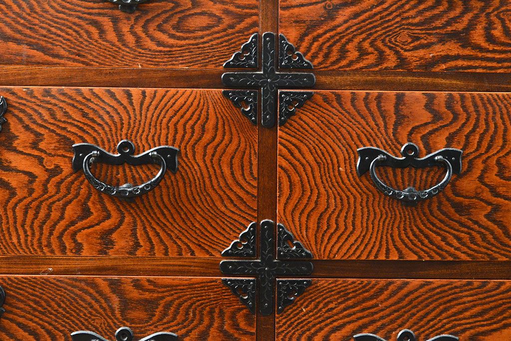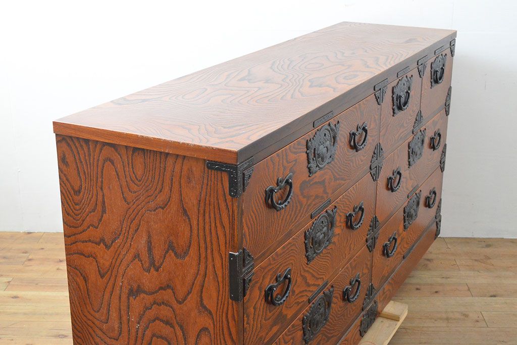 和箪笥 > 中古 岩谷堂箪笥 くっきりとした杢目が存在感を際立たせるサイドボード(チェスト、和たんす、整理箪笥、収納タンス)(R-053287)