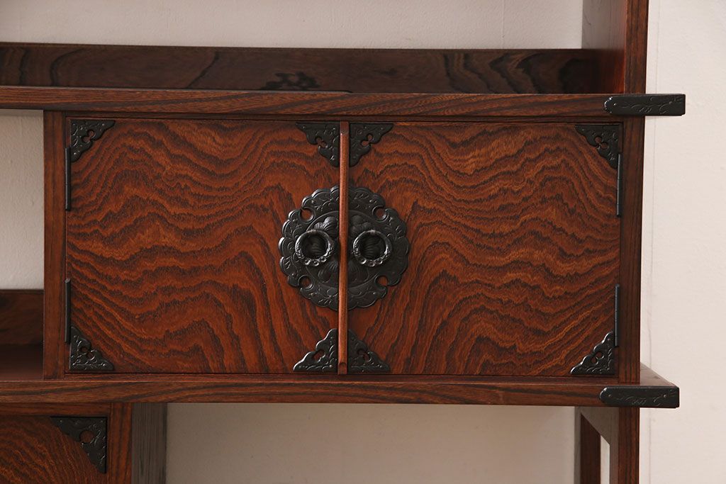 和箪笥> 茶箪笥・茶棚 > 中古 美品 岩谷堂箪笥 力強い杢目が上質な和を演出する北斗3号飾り棚(茶棚、収納棚、戸棚、サイドボード)(R-053536)