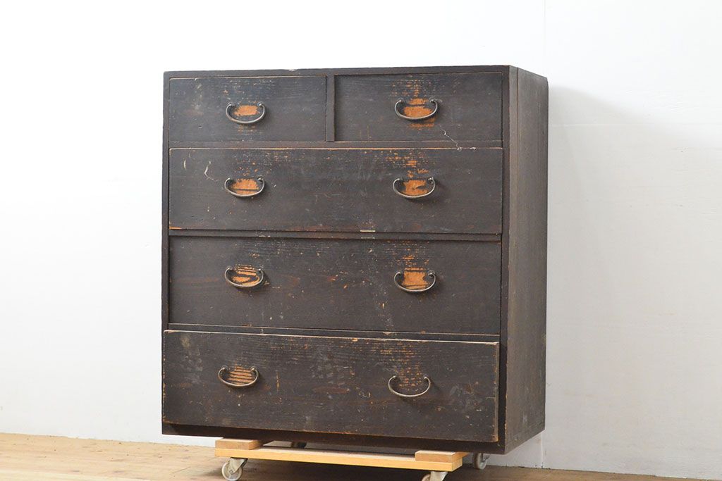 和製アンティーク 歴史を感じさせる佇まいが魅力的な時代箪笥(チェスト、引き出し、和タンス、収納箪笥)(R-053217)