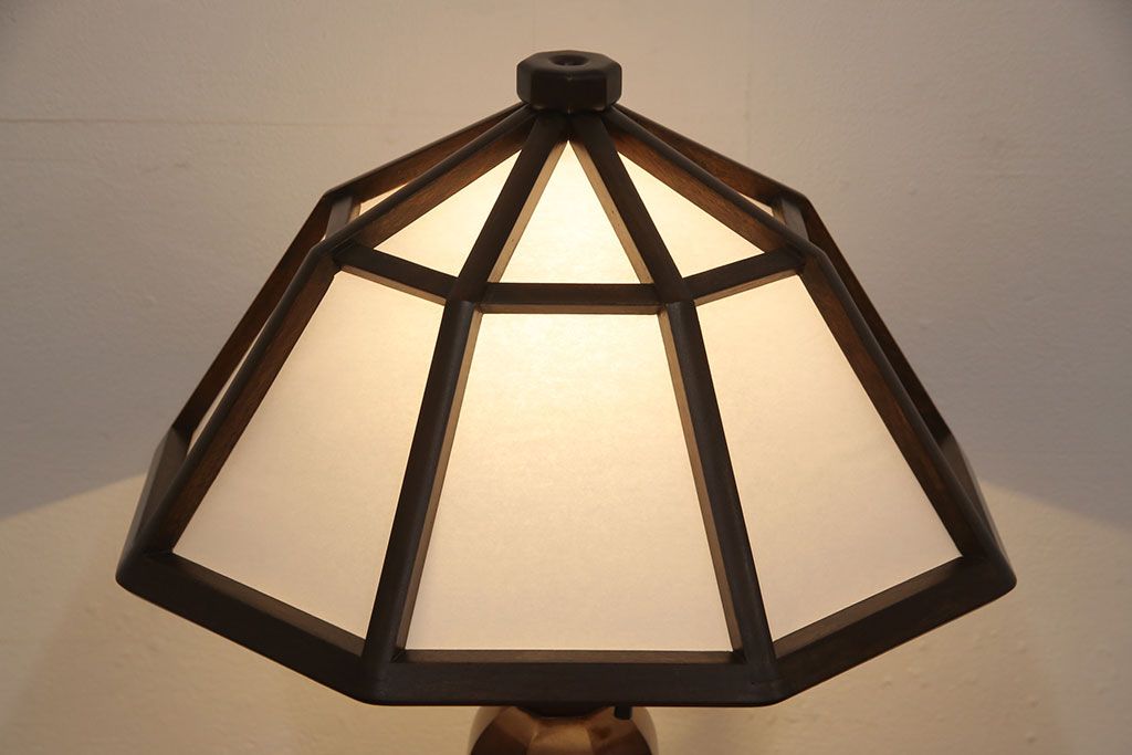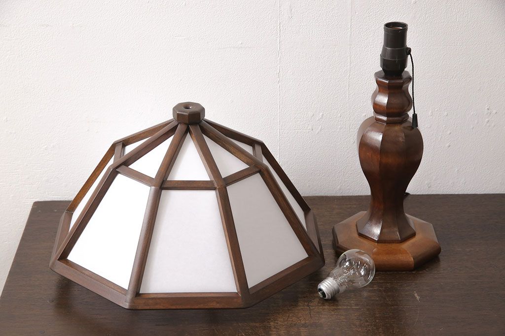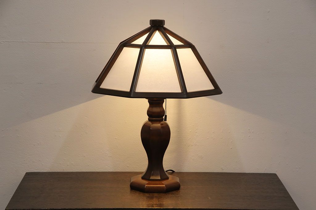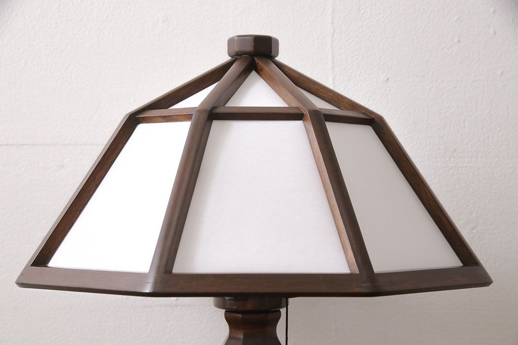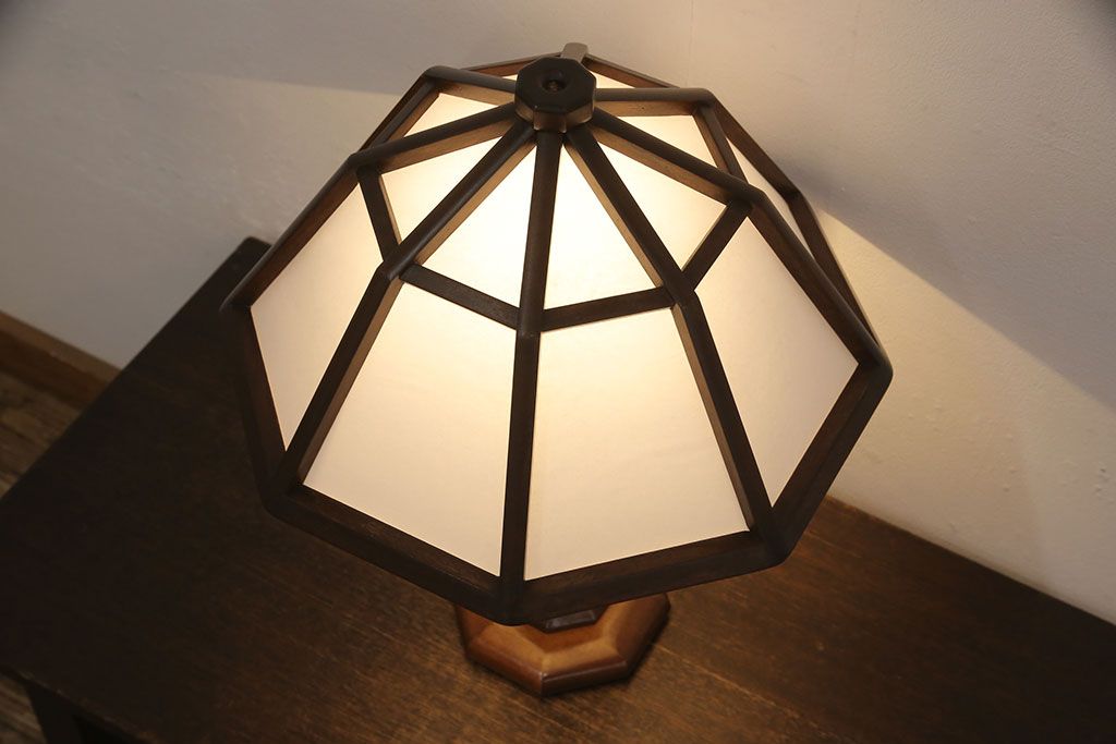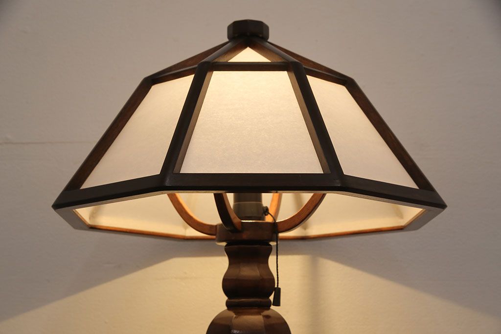 照明・ランプ> デスクライト・テーブルライト > ヴィンテージ家具 松本民芸家具 絶版品 希少!障子の笠が温かみのある明かりを灯す九角面取りスタンド(スタンドライト、卓上照明、シェード、ビンテージ)(R-053575)