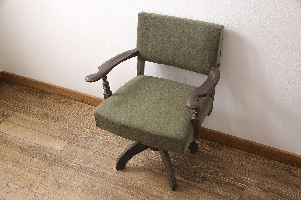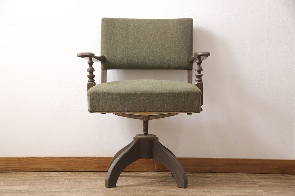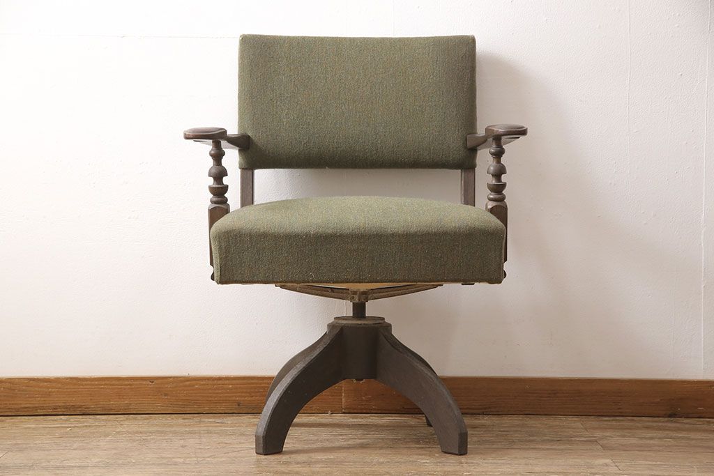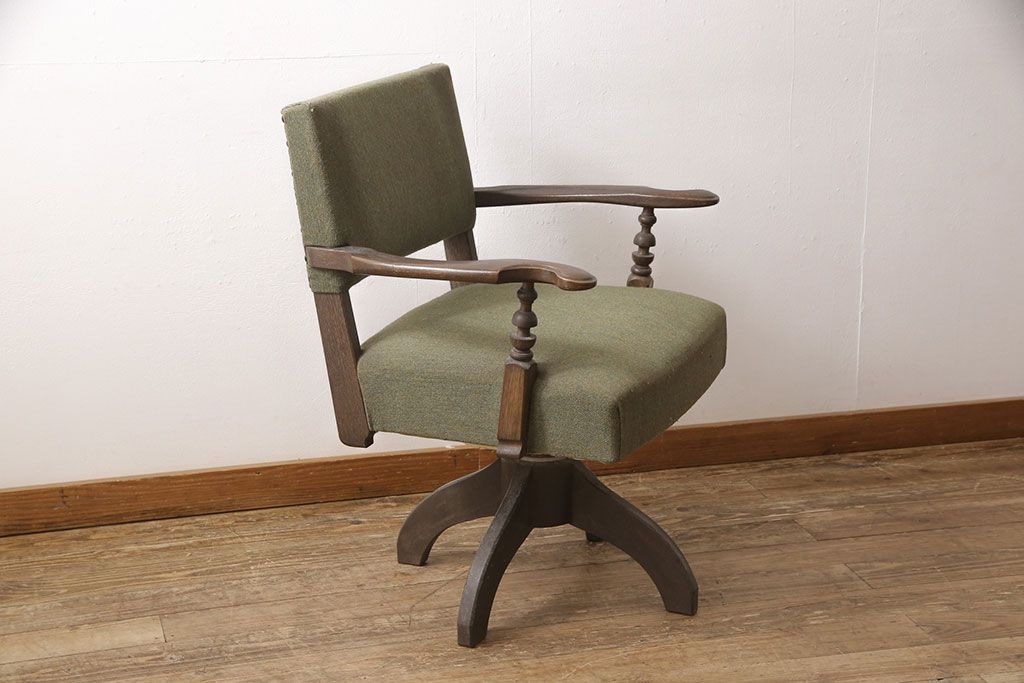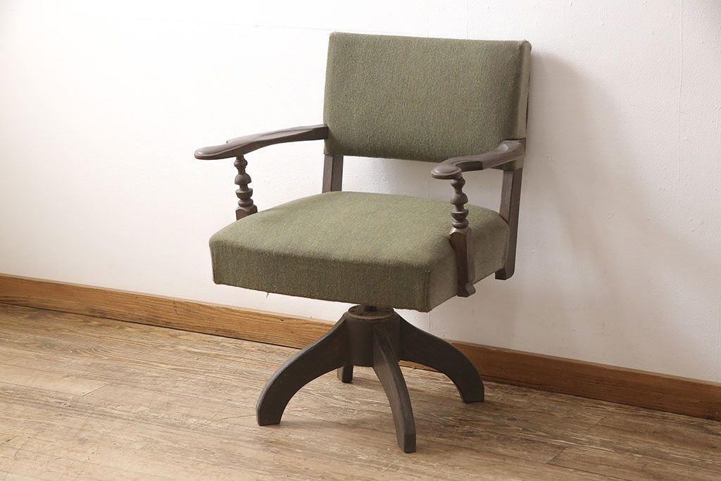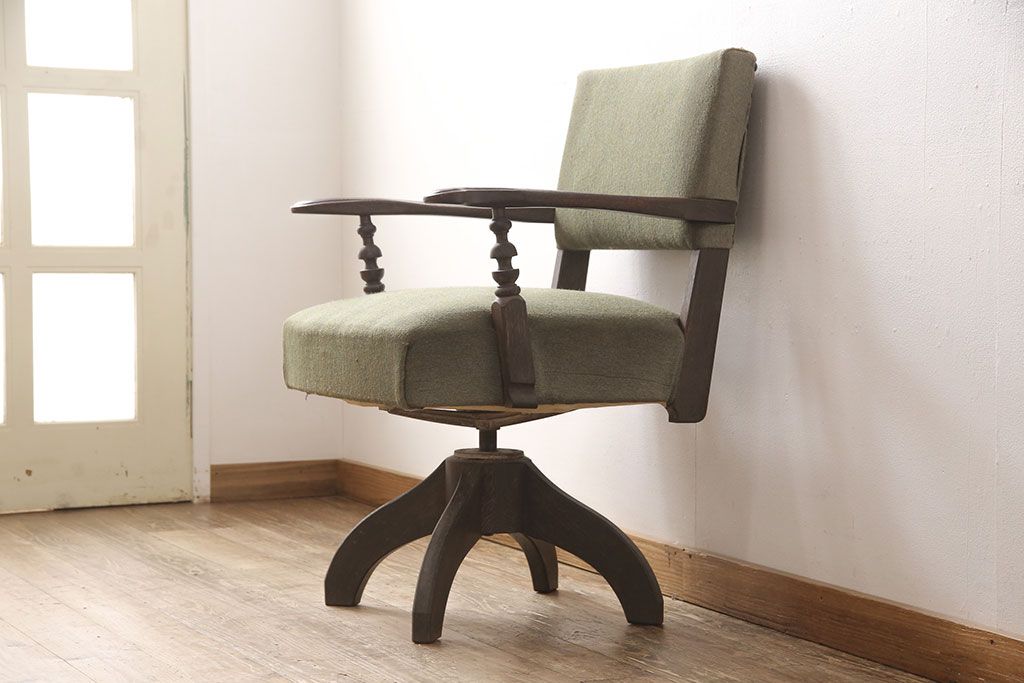 状態が気になる方には現状販売はおすすめできませんので、慎重なご検討をお願いいたします。和製ビンテージ 神戸洋家具 永田良介商店 レトロな佇まいがお洒落な回転椅子(ドクターチェア、イス、チェア、アームチェア、ヴィンテージ)(R-053523)です。
