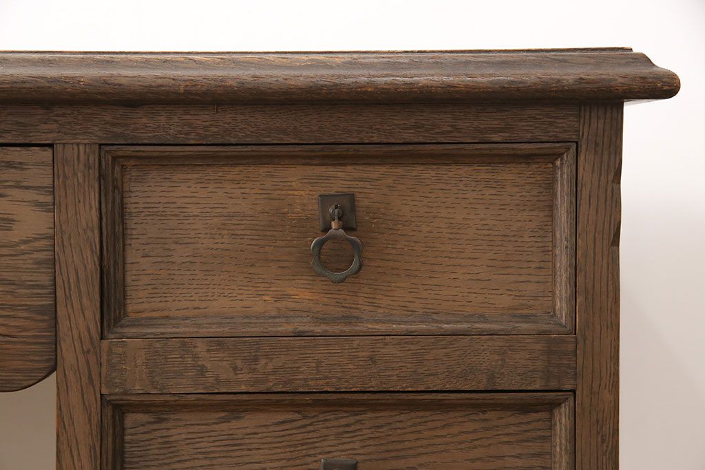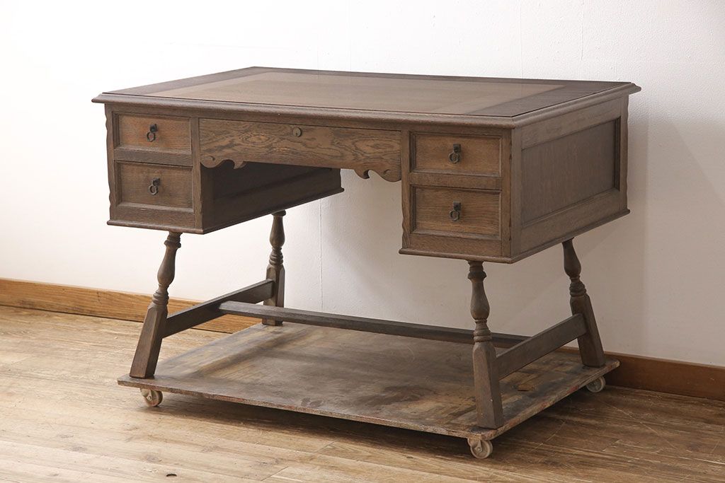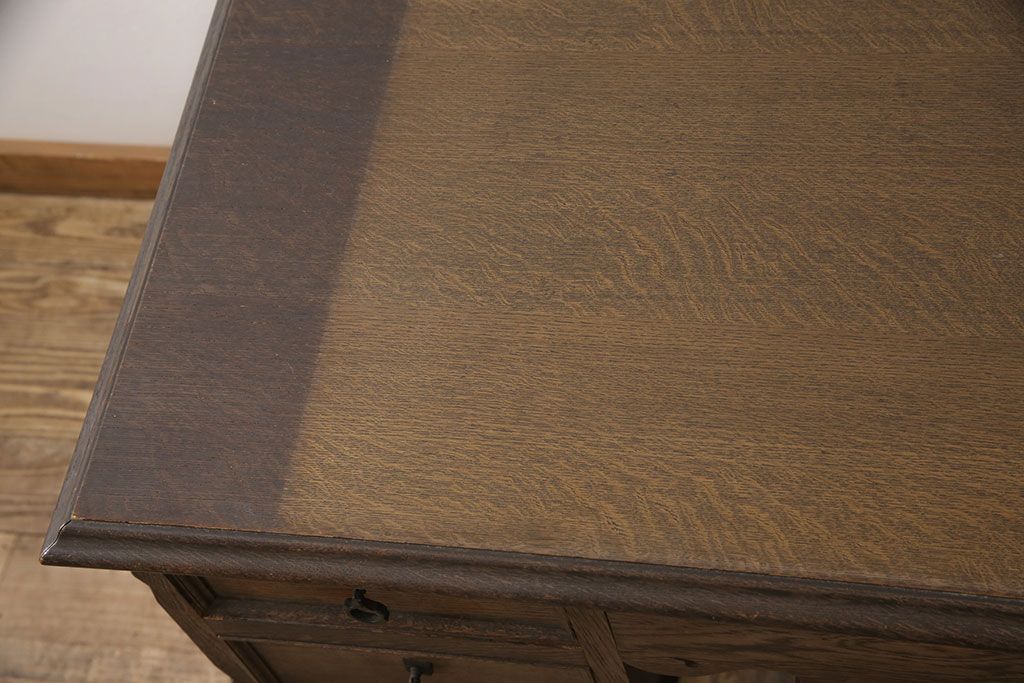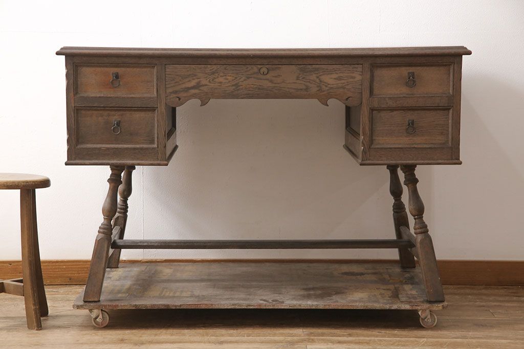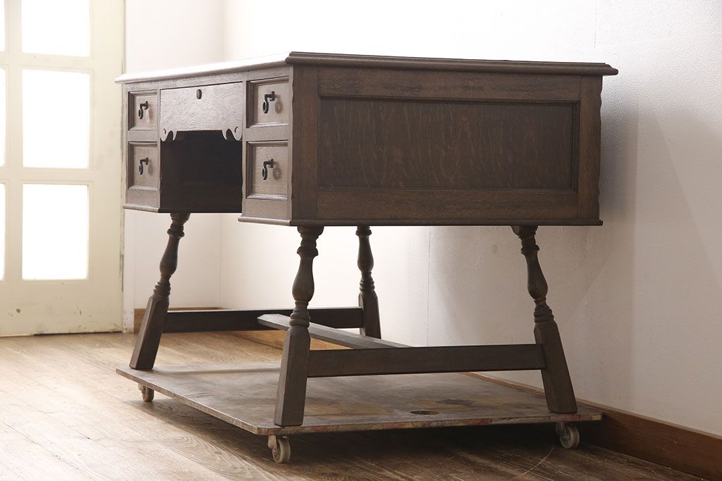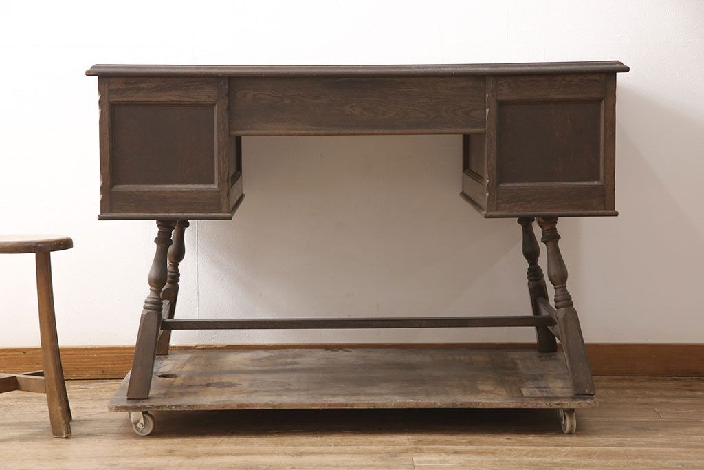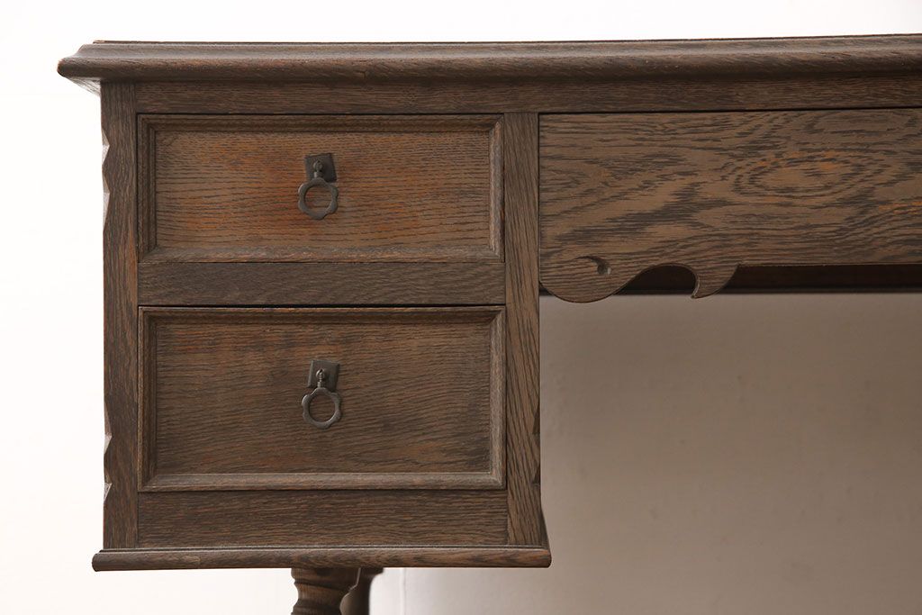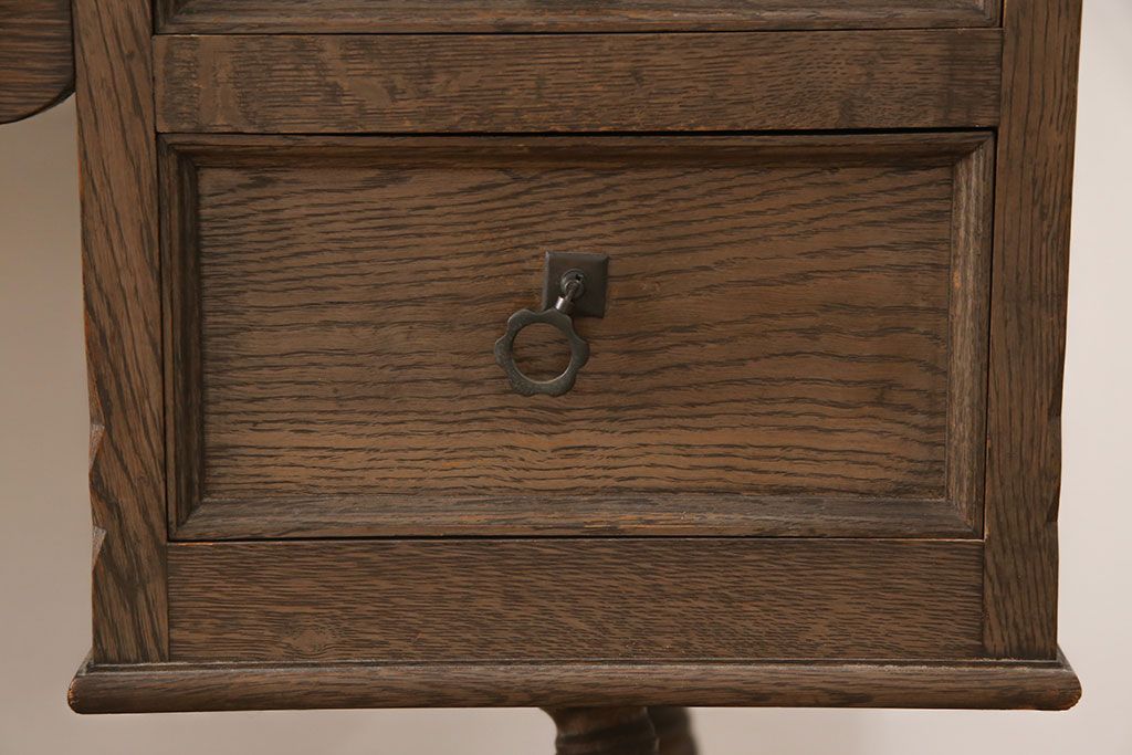 デスク> ワークデスク > 和製ビンテージ 神戸洋家具 永田良介商店 凝ったデザインがお部屋の雰囲気を高める両袖デスク(ワークデスク、机、在宅ワーク、在宅用)(R-053524)