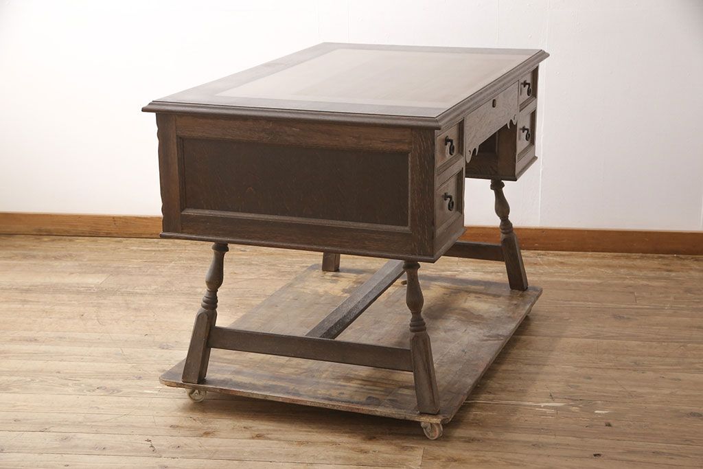 和製ビンテージ 神戸洋家具 永田良介商店 凝ったデザインがお部屋の雰囲気を高める両袖デスク(ワークデスク、机)(R-053524)です。