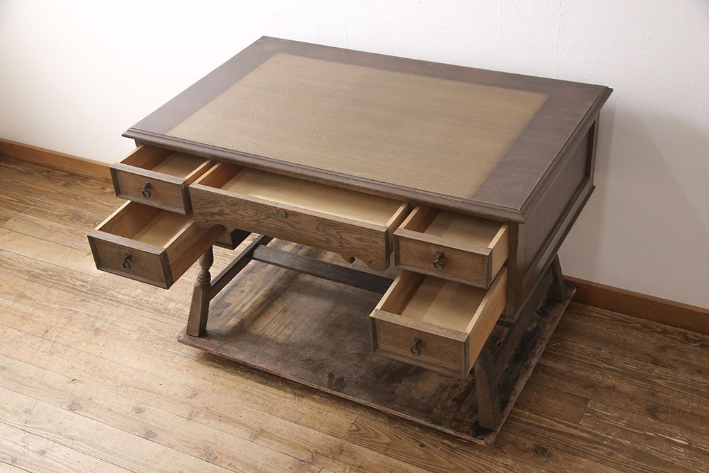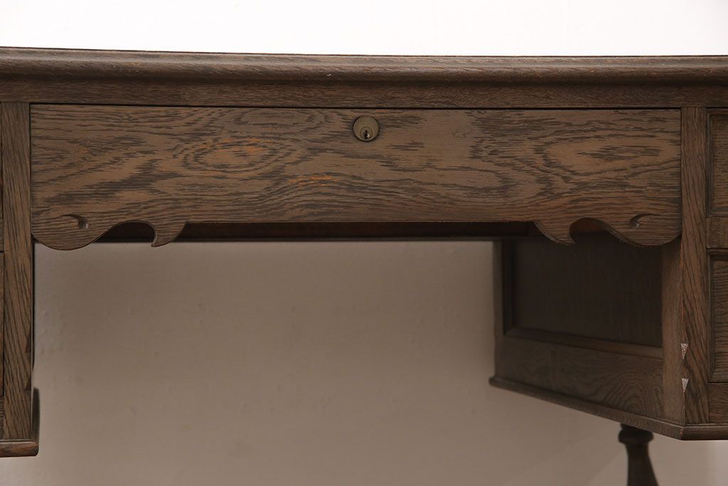 デスク> 片袖机・両袖机 > 和製ビンテージ 神戸洋家具 永田良介商店 凝ったデザインがお部屋の雰囲気を高める両袖デスク(ワークデスク、机、在宅ワーク、在宅用)(R-053524)
