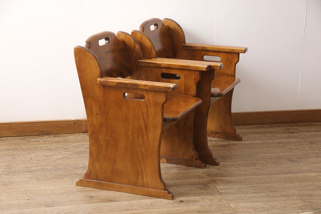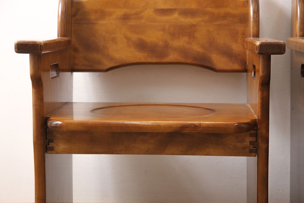 椅子・ベンチ> アームチェア > 中古 民芸家具 カバ材(樺材) 木の優しいぬくもりを感じる引き出し付きチェア2脚セット(アームチェア、板座チェア、椅子、イス)(R-053534)
