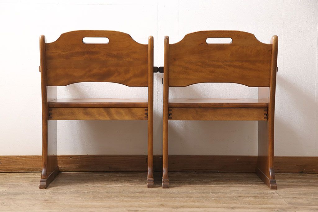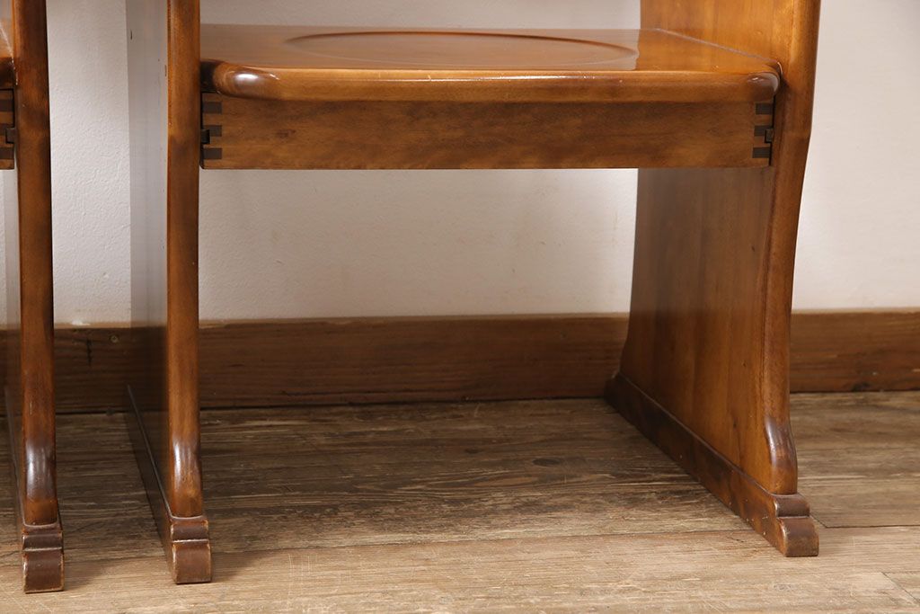 中古 民芸家具 カバ材(樺材) 木の優しいぬくもりを感じる引き出し付きチェア2脚セット(アームチェア、板座チェア、椅子、イス)(R-053534)です。