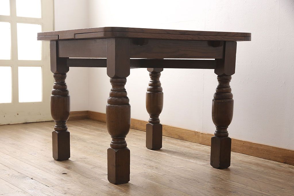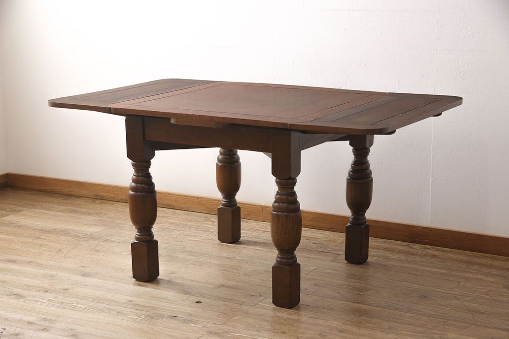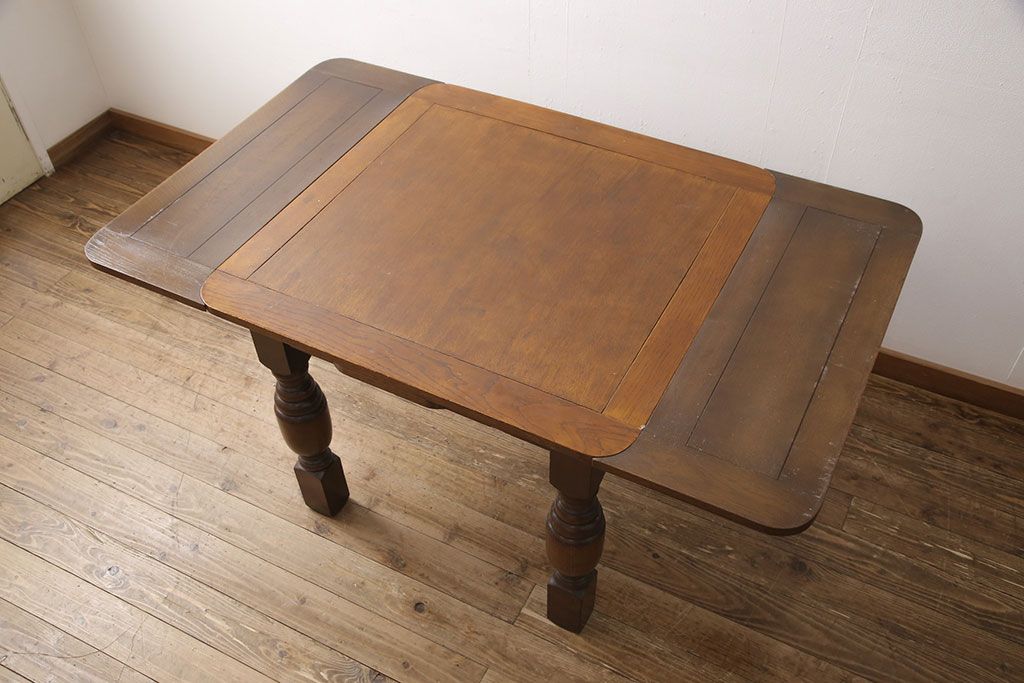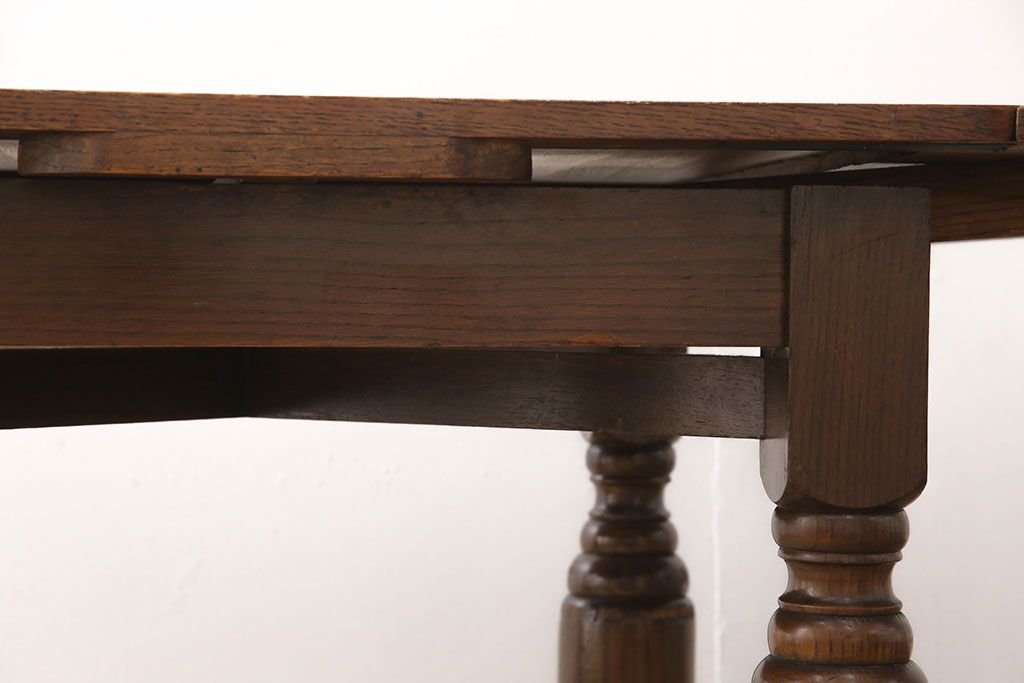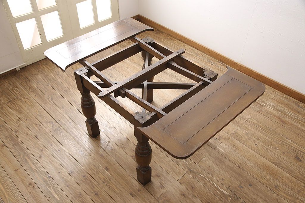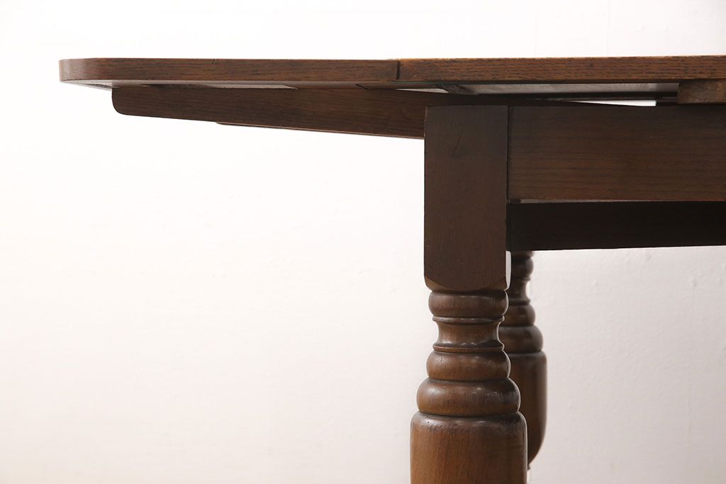 イギリスアンティーク オーク材製 挽き物の脚が存在感を際立たせるドローリーフテーブル(ダイニングテーブル、食卓、エクステンションテーブル、拡張式テーブル)(R-053571)