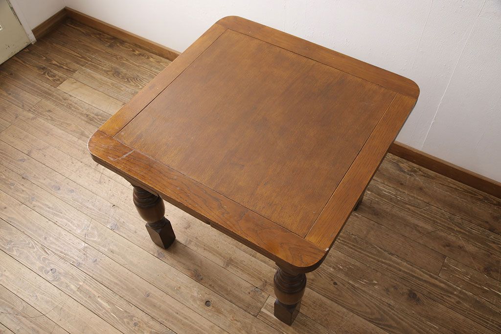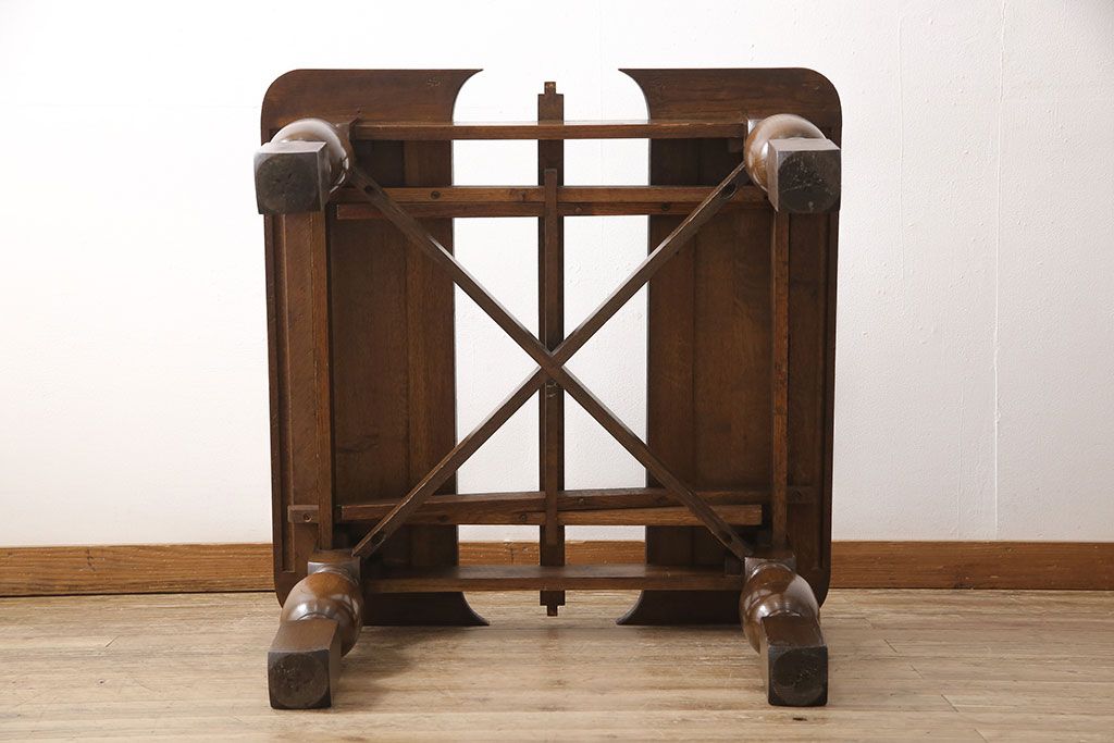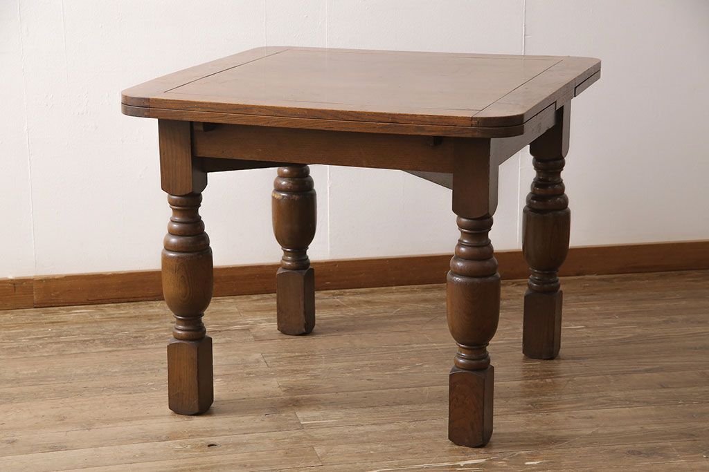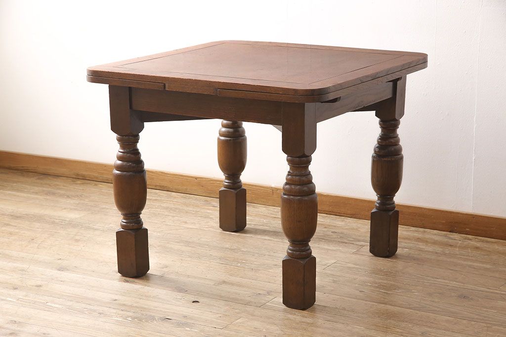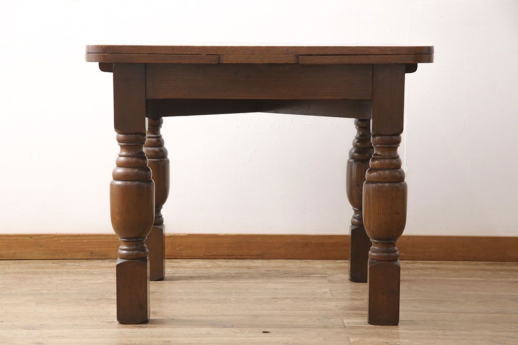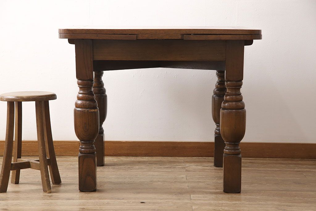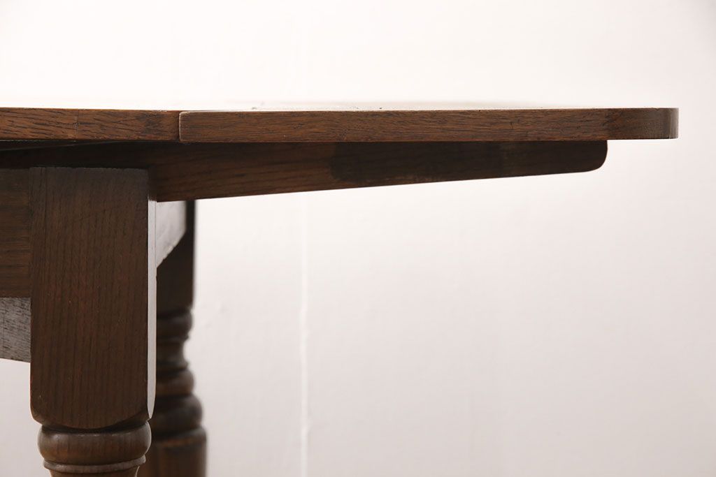 ラフジュ工房> テーブル> 2人用ダイニングテーブル > イギリスアンティーク オーク材製 挽き物の脚が存在感を際立たせるドローリーフテーブル(ダイニングテーブル、食卓、エクステンションテーブル、拡張式テーブル)(R-053571)