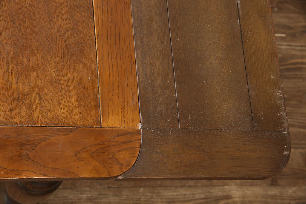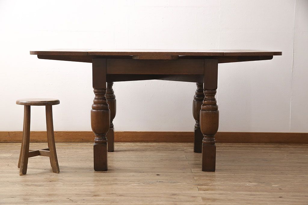ラフジュ工房> テーブル> 4人用ダイニングテーブル > イギリスアンティーク オーク材製 挽き物の脚が存在感を際立たせるドローリーフテーブル(ダイニングテーブル、食卓、エクステンションテーブル、拡張式テーブル)(R-053571)