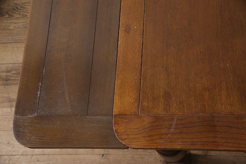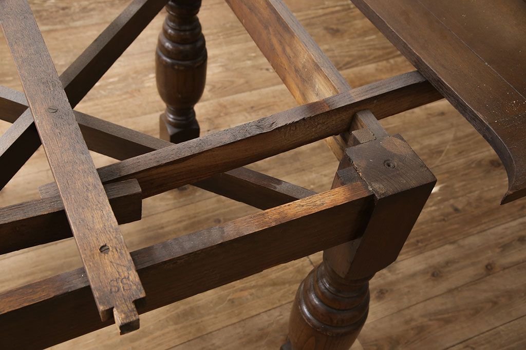 ラフジュ工房> テーブル> エクステンションテーブル > イギリスアンティーク オーク材製 挽き物の脚が存在感を際立たせるドローリーフテーブル(ダイニングテーブル、食卓、エクステンションテーブル、拡張式テーブル)(R-053571)