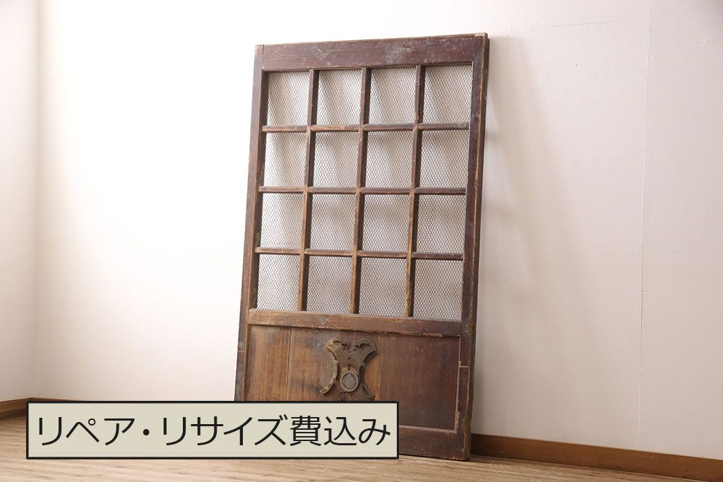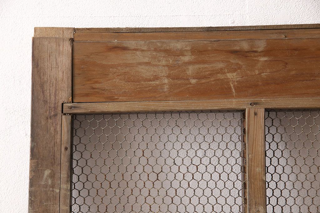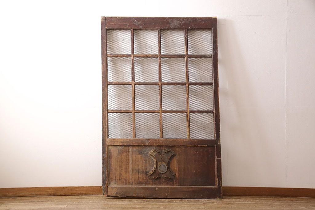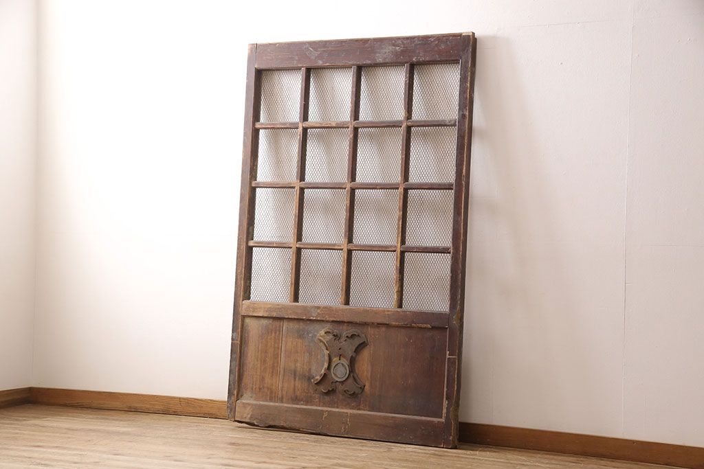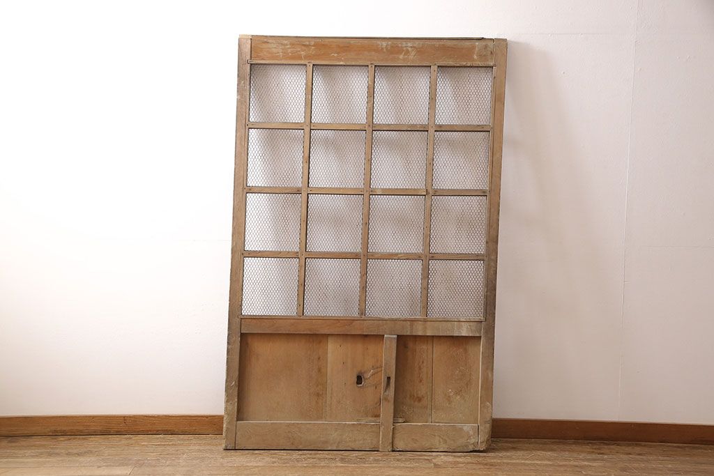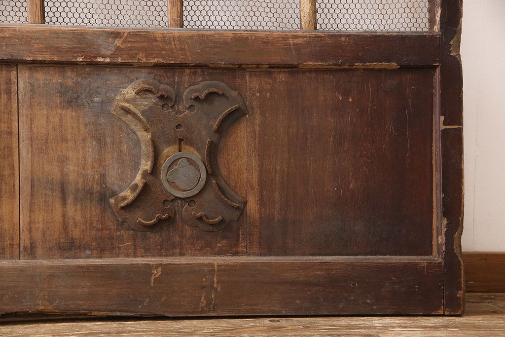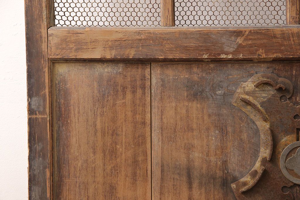 ドア・建具> 蔵戸 > アンティーク建具 明治期 ヒノキ材 亀甲金網付き 経年を感じる風合いが魅力!貫禄を感じる蔵戸(きつね格子、狐格子、玄関戸、玄関ドア、引き戸、格子戸、マス目、升目)(R-053269)