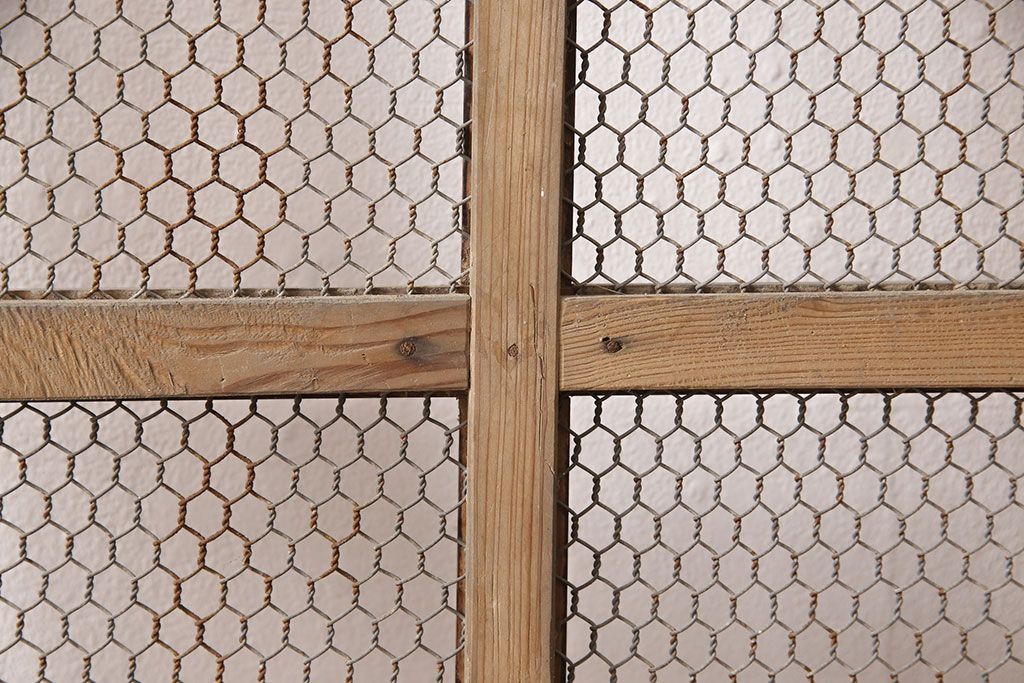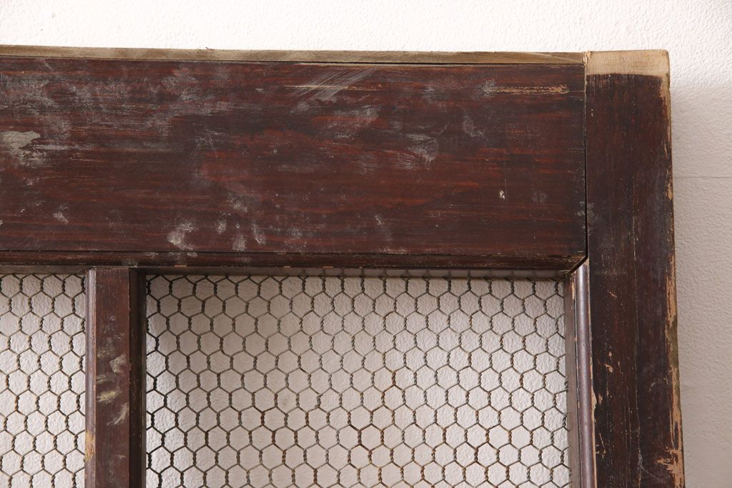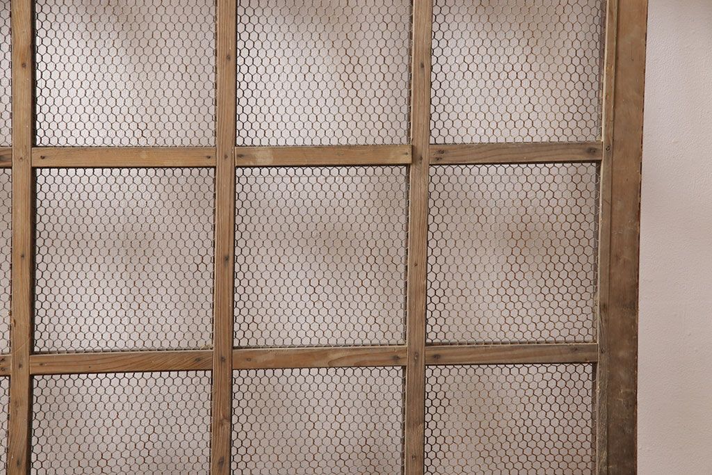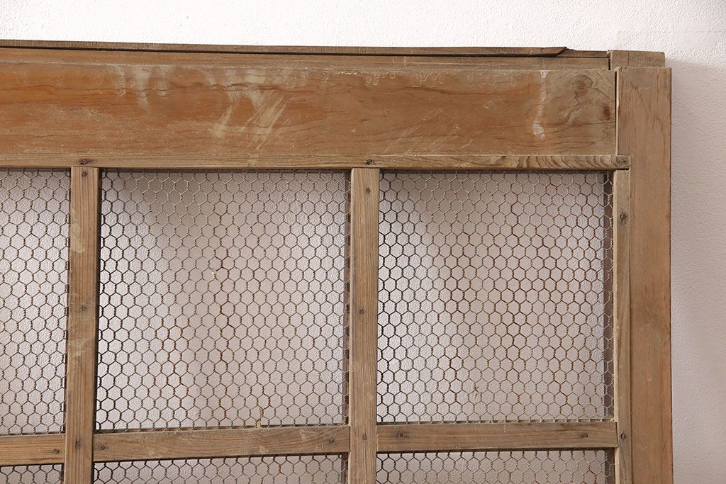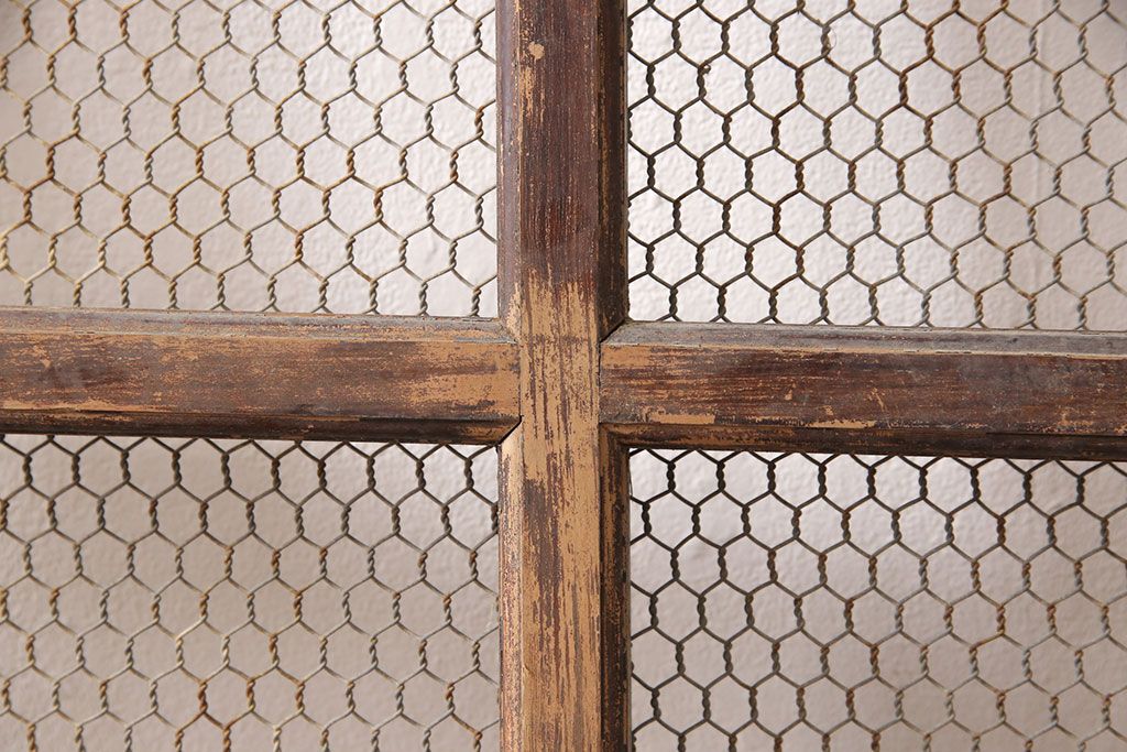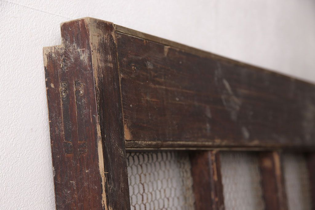 ドア・建具> 格子戸 > アンティーク建具 明治期 ヒノキ材 亀甲金網付き 経年を感じる風合いが魅力!貫禄を感じる蔵戸(きつね格子、狐格子、玄関戸、玄関ドア、引き戸、格子戸、マス目、升目)(R-053269)