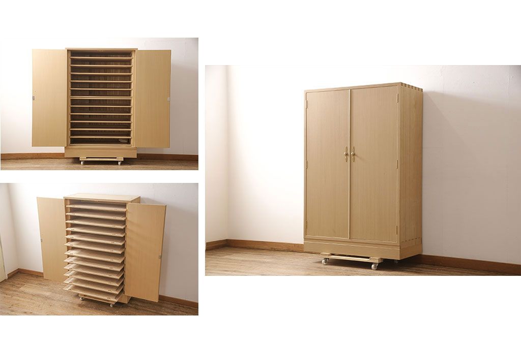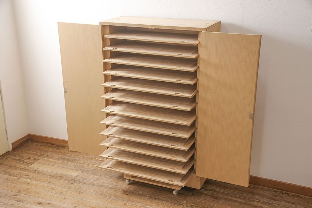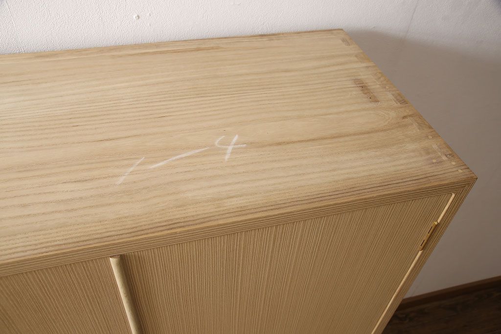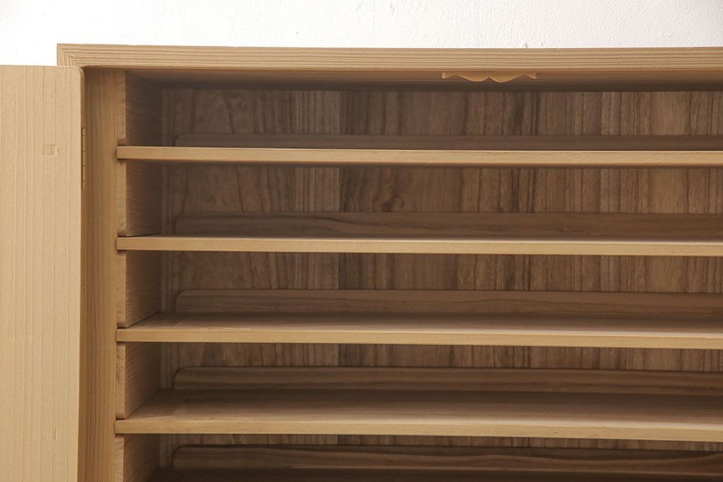 和箪笥> 着物箪笥 > 中古 美品 伝統工芸士・吉沢昭次作 小振りなサイズがお部屋に取り入れやすい加茂総桐帯箪笥(板盆付き、胴厚、桐たんす、洋服タンス、着物箪笥、和タンス)(R-053495)