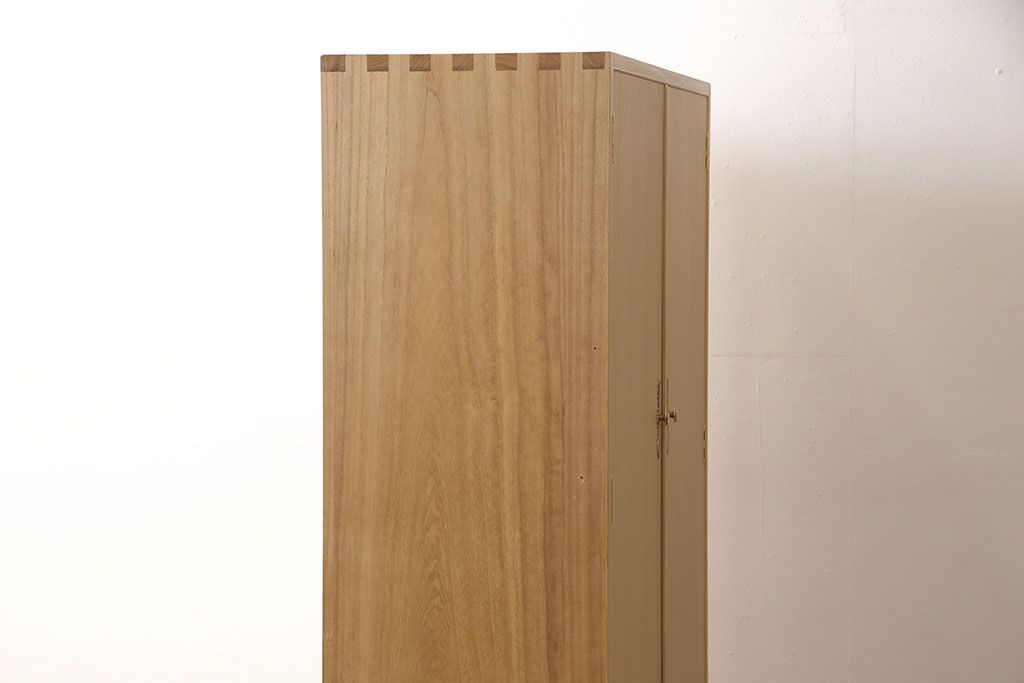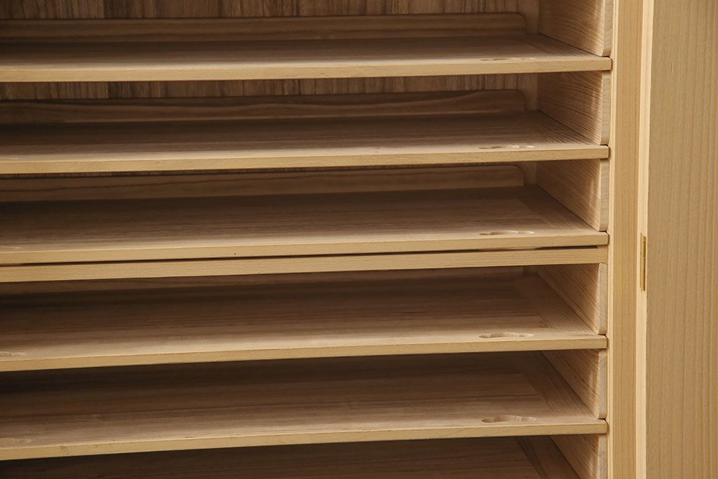 和箪笥> 衣装箪笥 > 中古 美品 伝統工芸士・吉沢昭次作 小振りなサイズがお部屋に取り入れやすい加茂総桐帯箪笥(板盆付き、胴厚、桐たんす、洋服タンス、着物箪笥、和タンス)(R-053495)