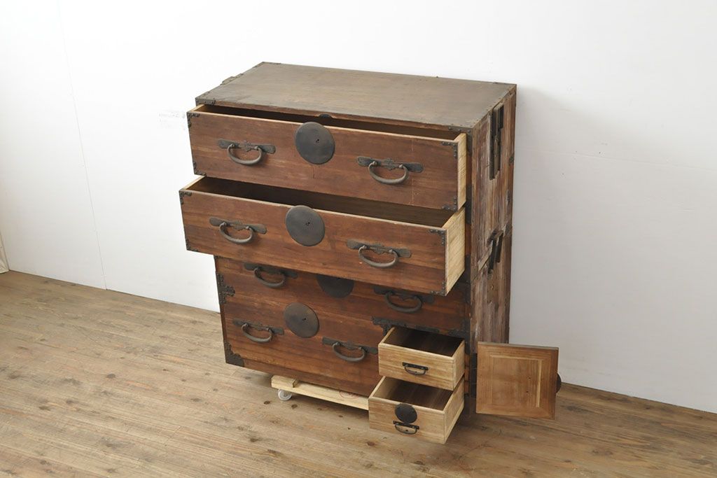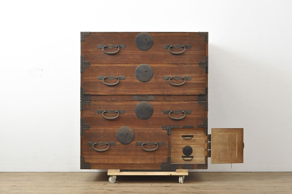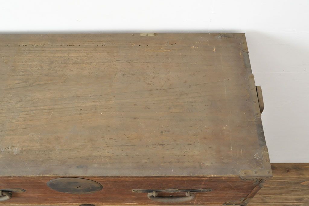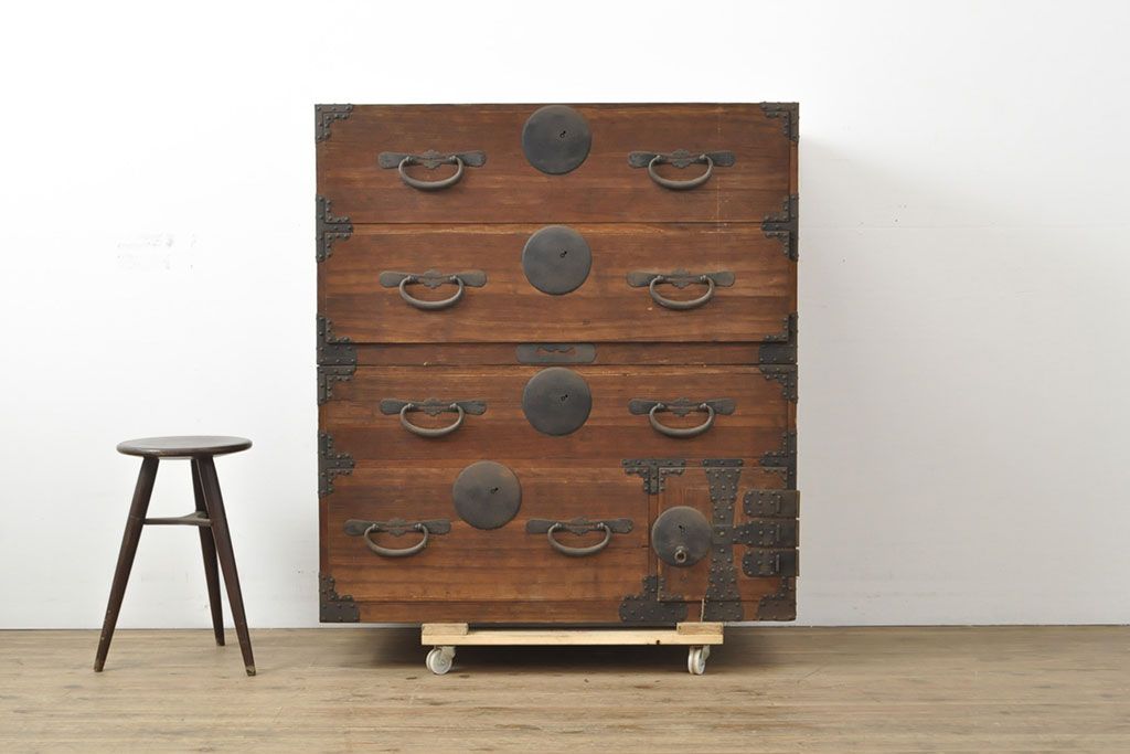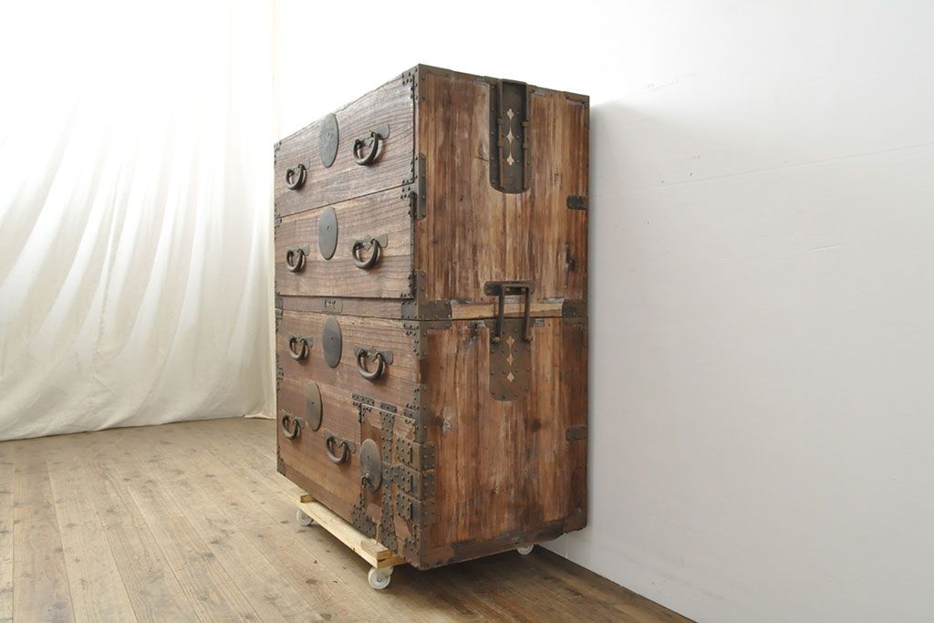和箪笥 > 和製アンティーク 落ち着いた和の空間づくりに取り入れたい2段重ね総桐たんす(時代箪笥、和タンス、収納箪笥、引き出し、チェスト)(R-053034)